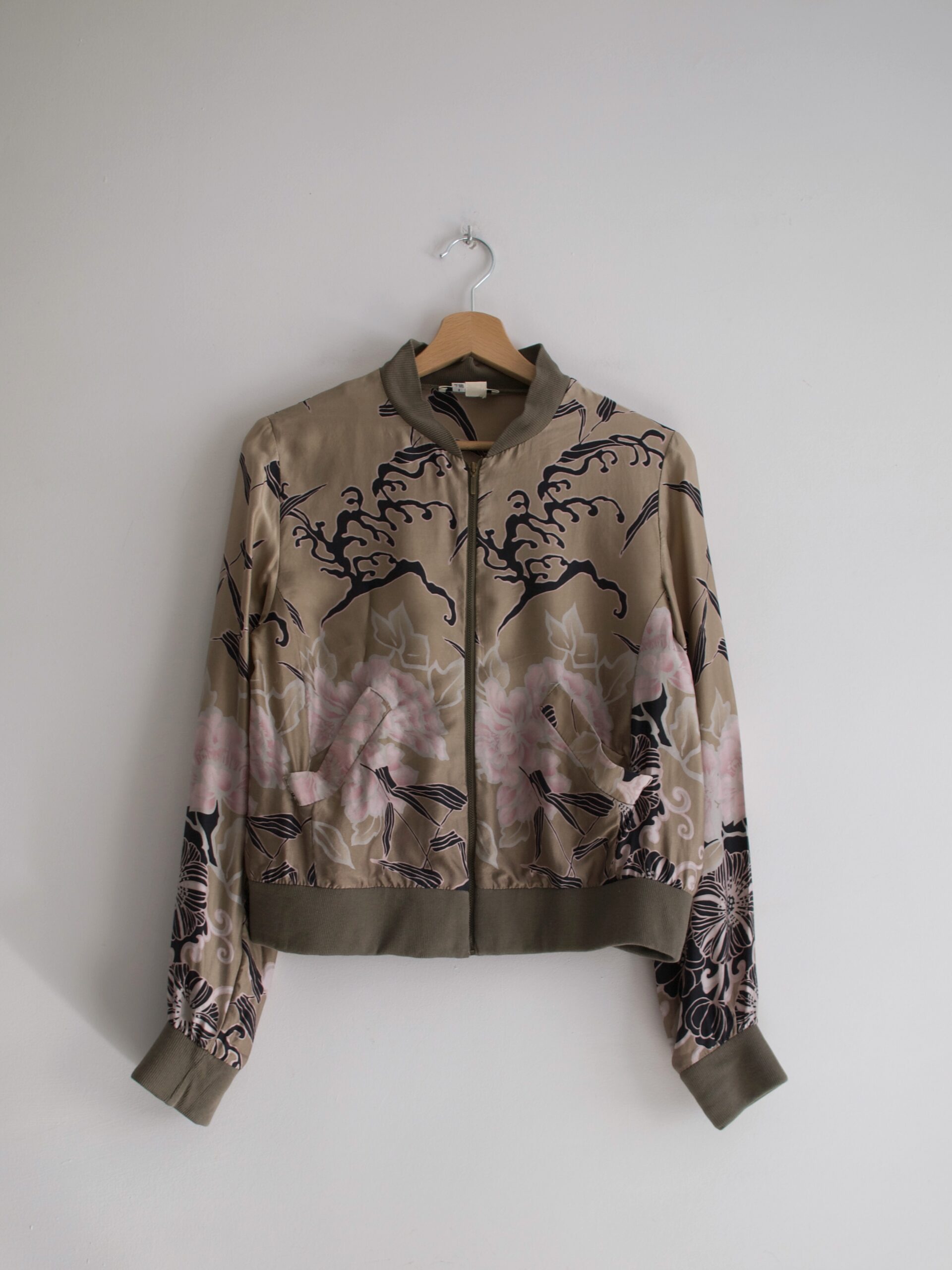 Rozmiar: polecam na S-M Skład: 100% jedwab Stan: bez wad Szerokość w klatce 47 cm Długość całkowita 53 cm