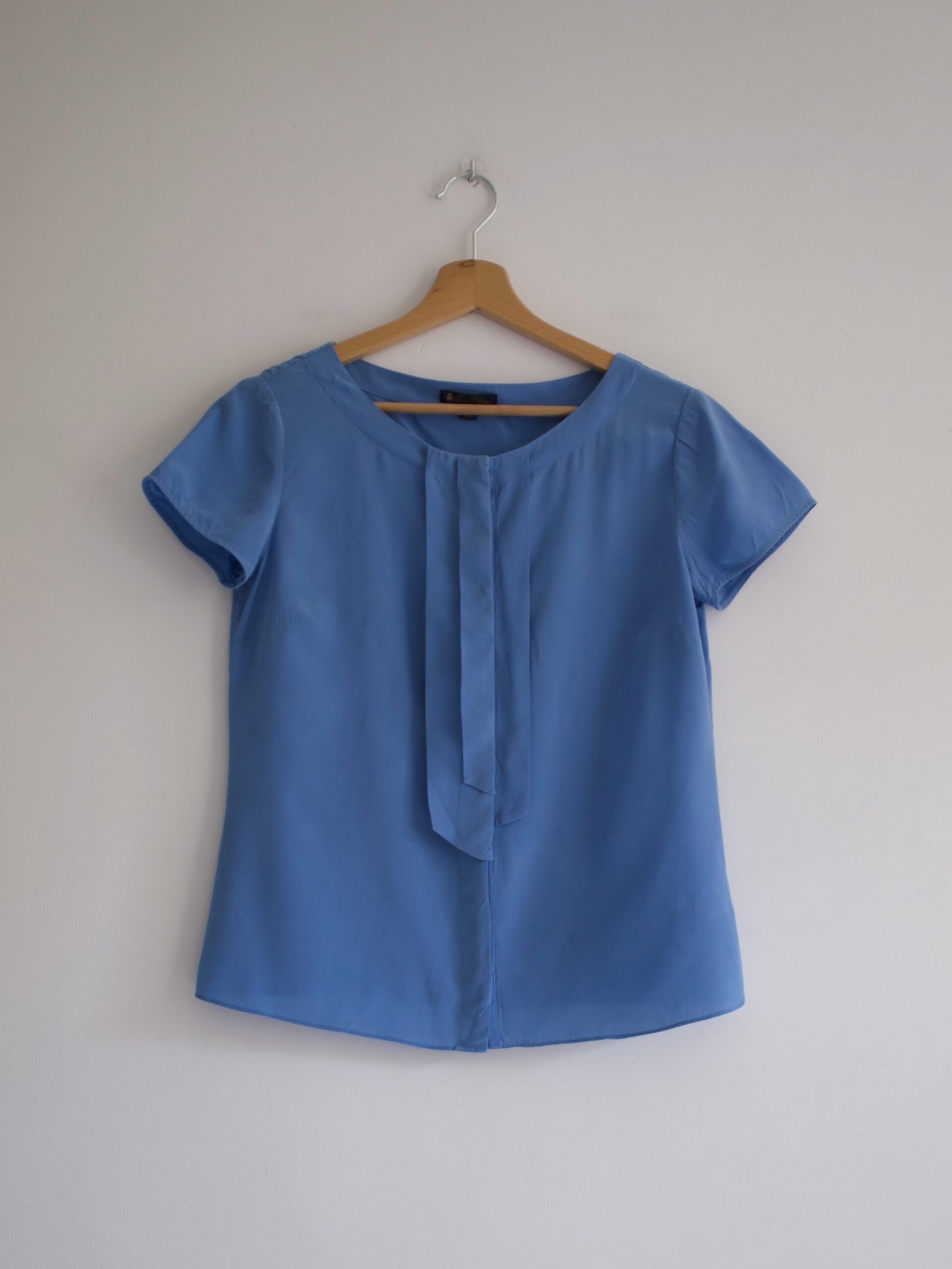 Rozmiar: 2 Skład: 100% jedwab Stan: bez wad Szerokość w klatce 45 cm Długość całkowita 57 cm
