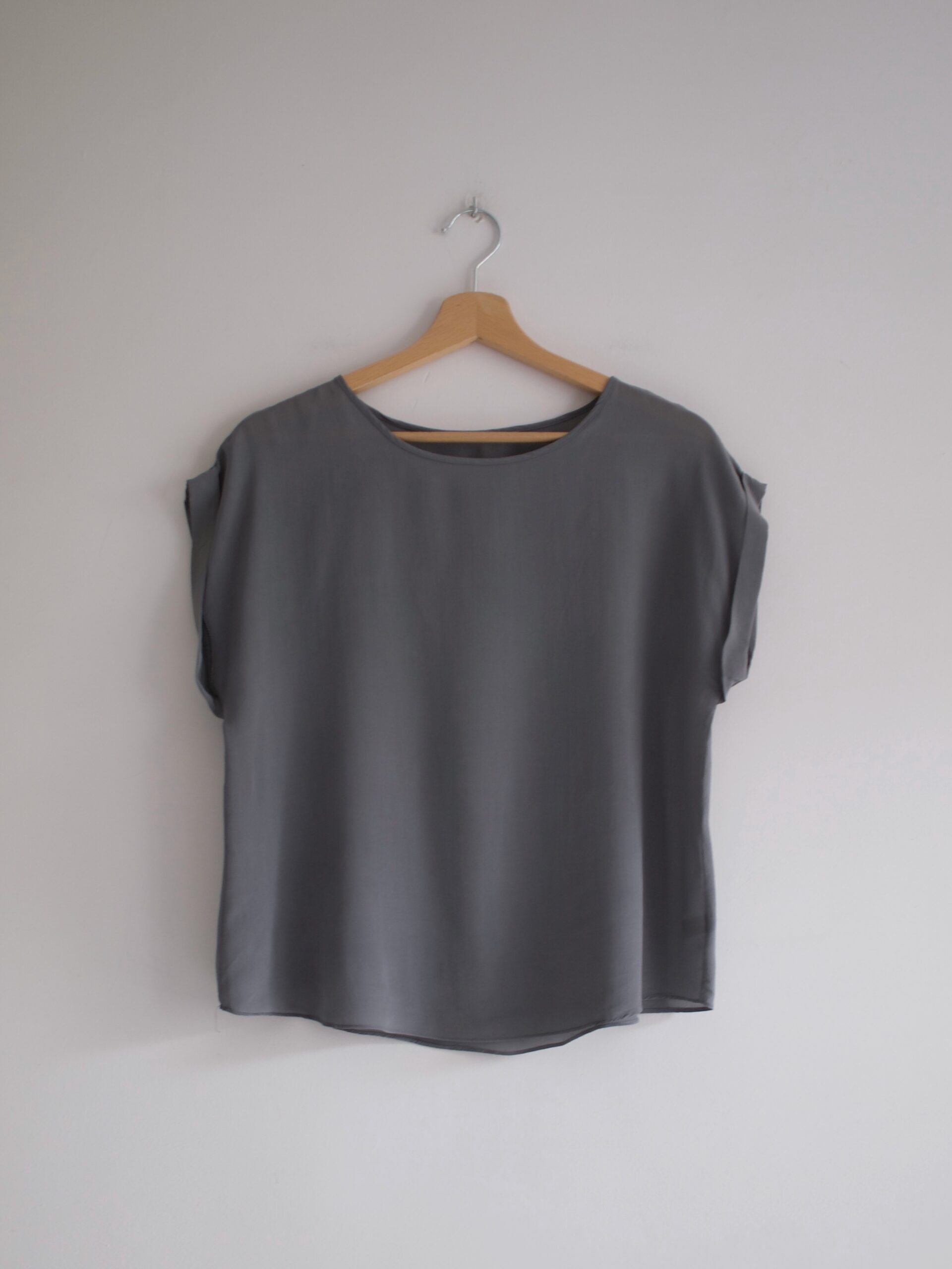 Jedwabna bluzka o pudełkowym fasonie.