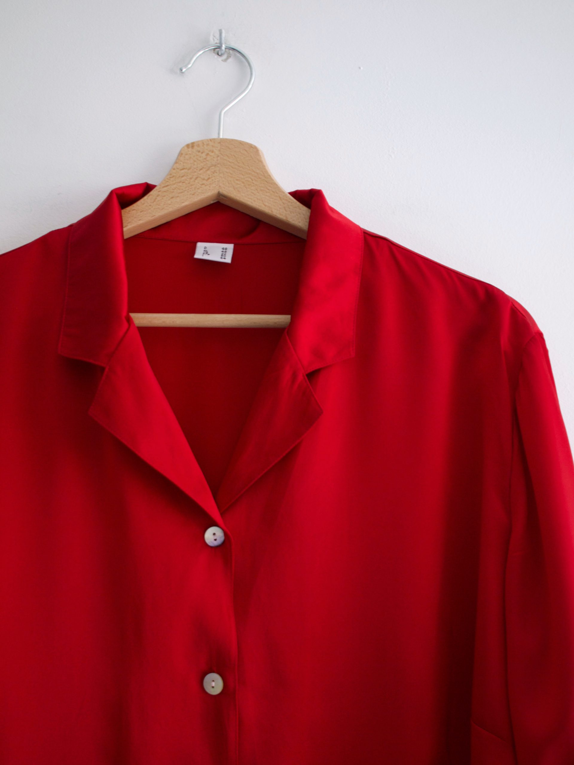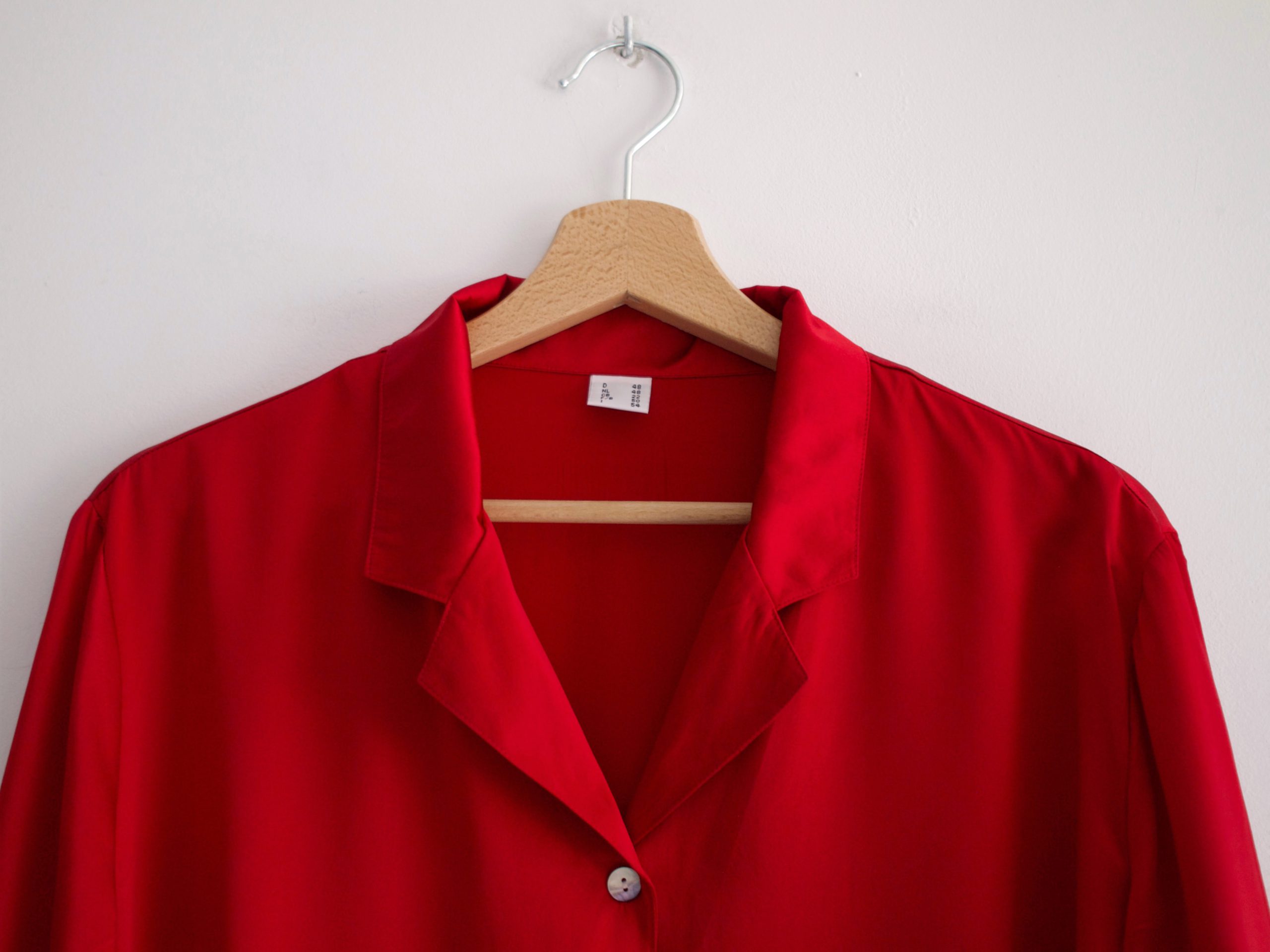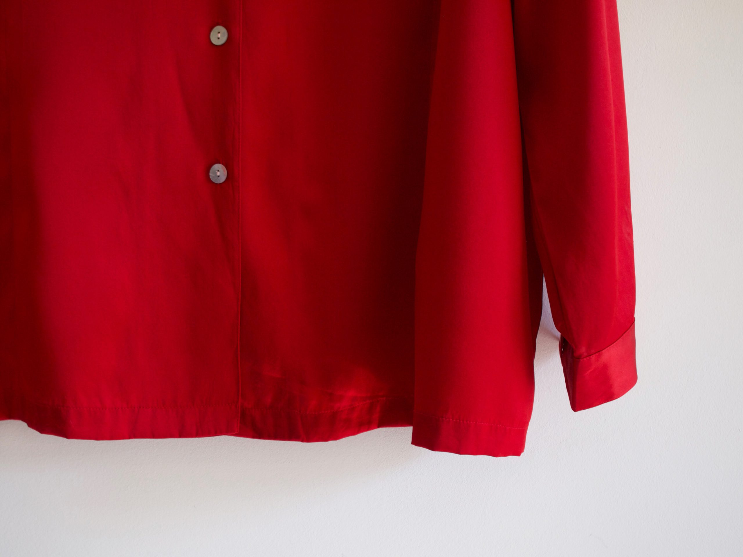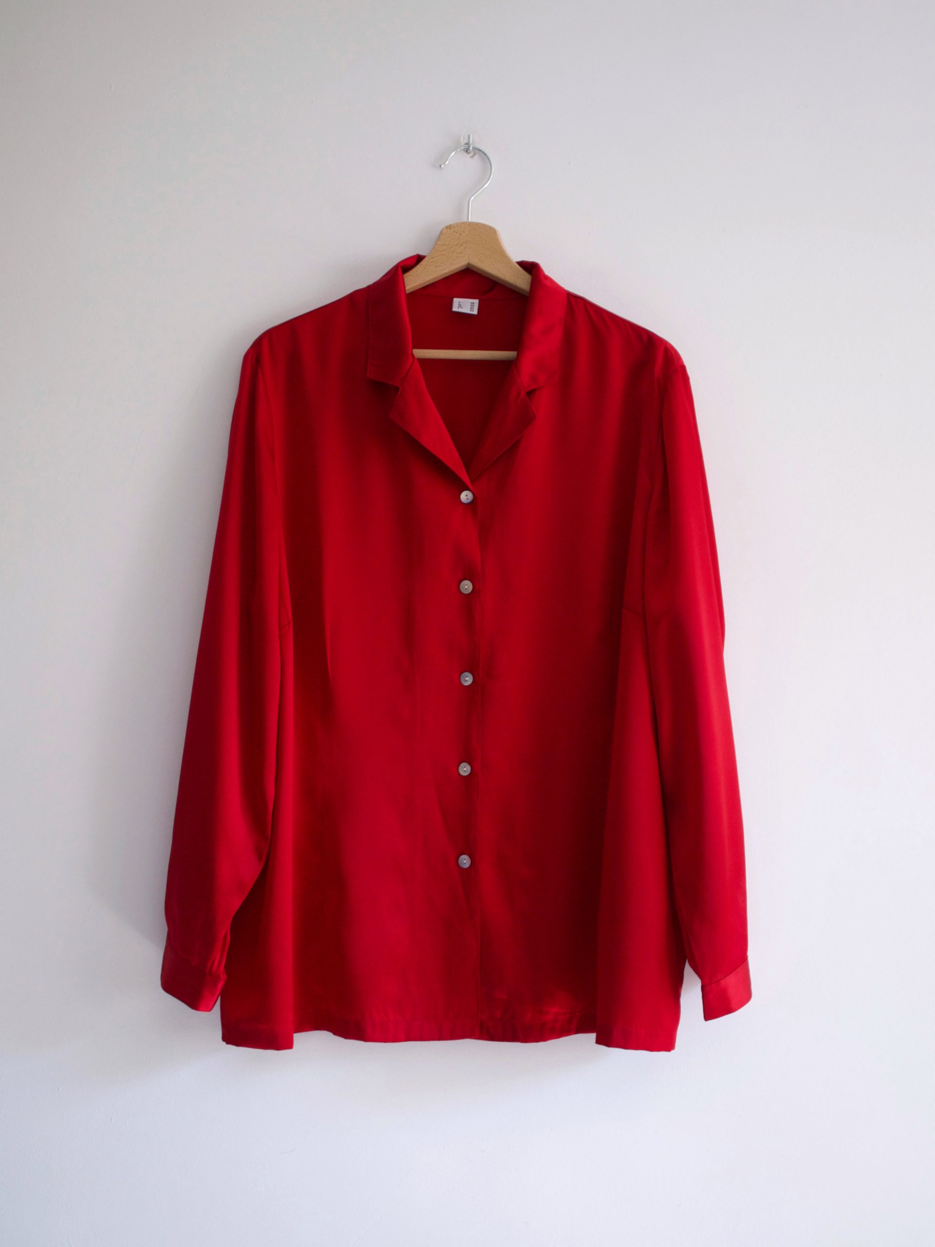 Satynowa koszula vintage. W 100% wykonana z jedwabiu, gładka i bardzo miła w dotyku. Rozmiar z metki 48, polecam na XL lub jako oversize. Idealny stan.
