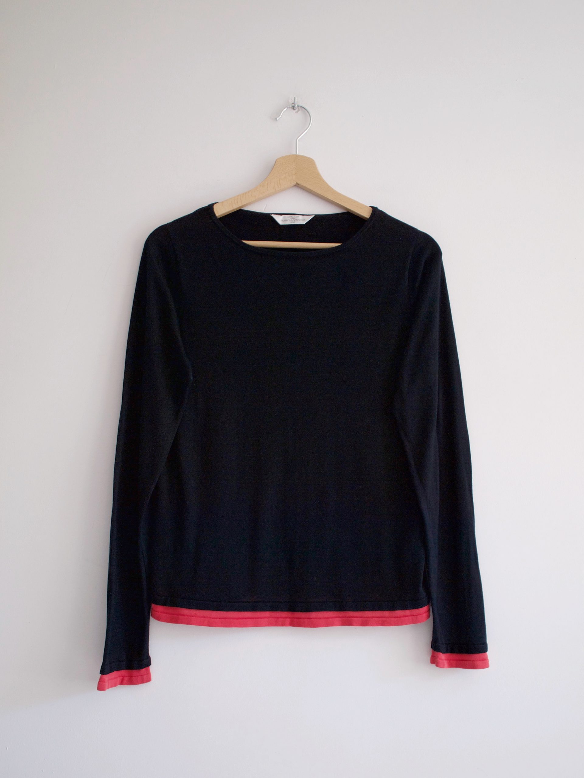 Minimalistyczny kaszmirowy sweter o pudełkowym kroju. Sweter bardzo miękki i przyjemny, ma dwie małe zacerowane dziurki, nie widoczne w noszeniu, poza tym brak mankamentów. Wymiary poniżej.