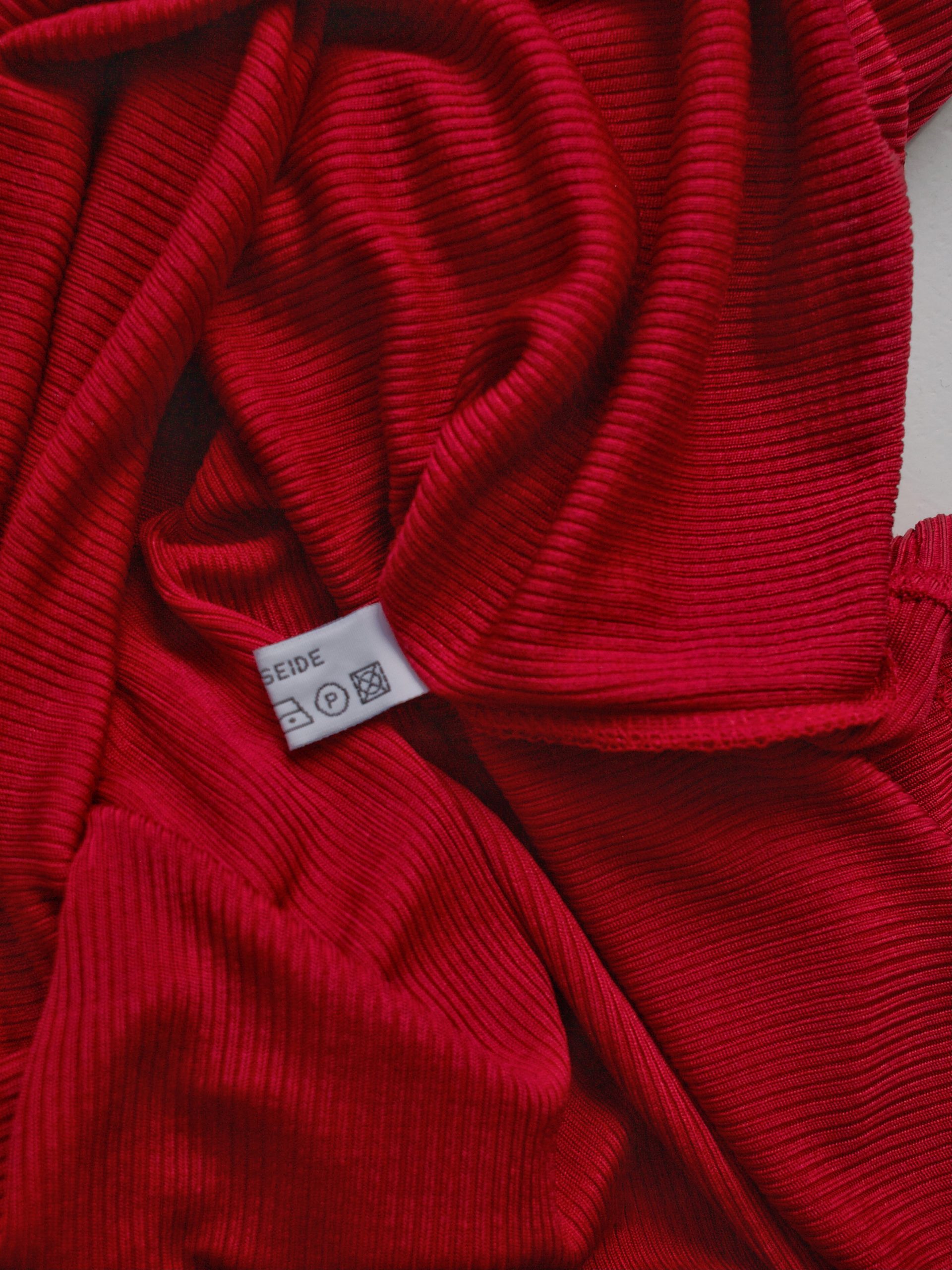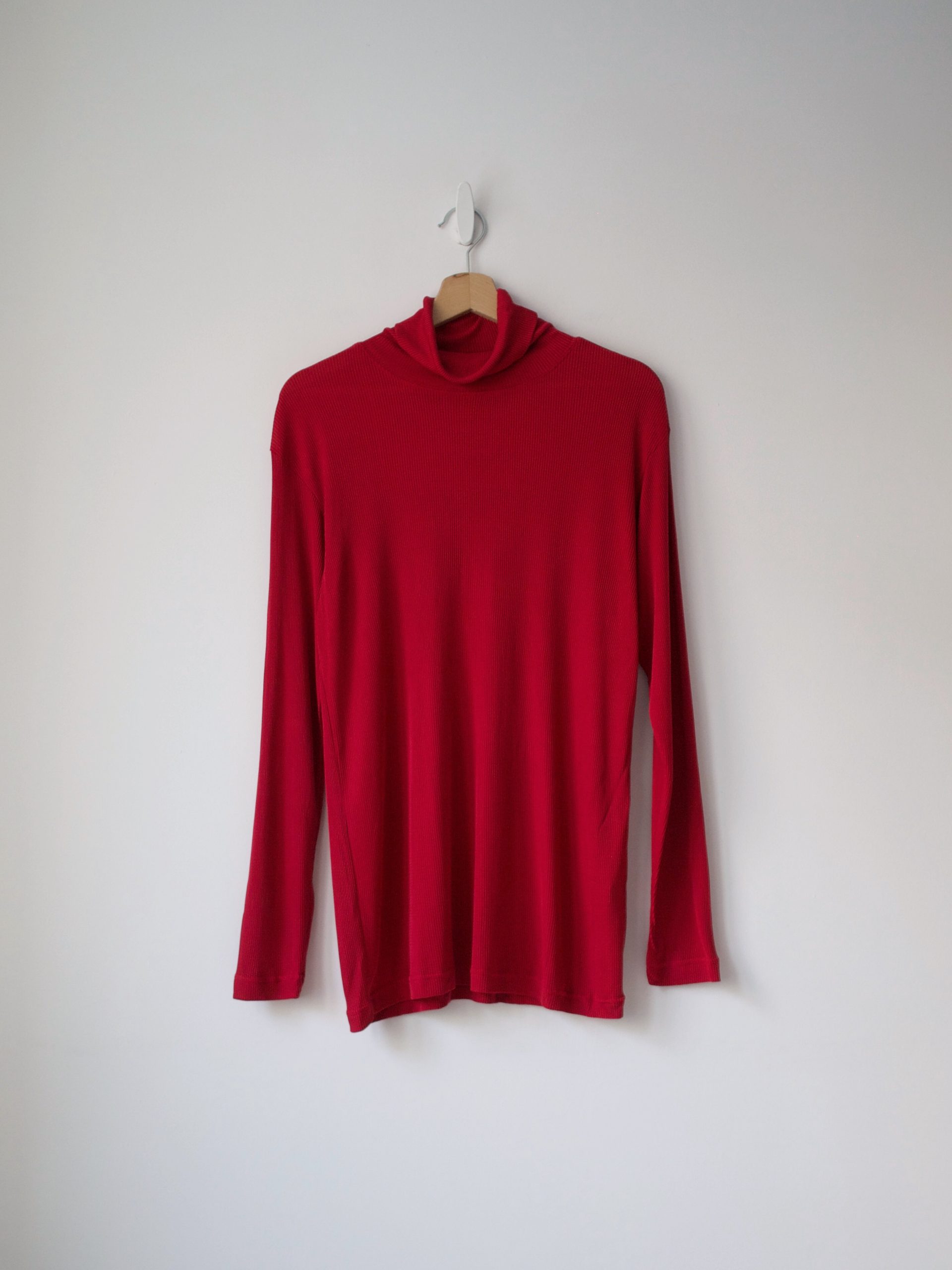 Cienki jedwabny golf w prążki. Idealny jako pierwsza warstwa pod gryzące swetry. Rozmiar z metki: L Skład: 100% jedwab Stan: bez wad Szerokość w klatce 46 cm Długośćcałkowita 73 cm
