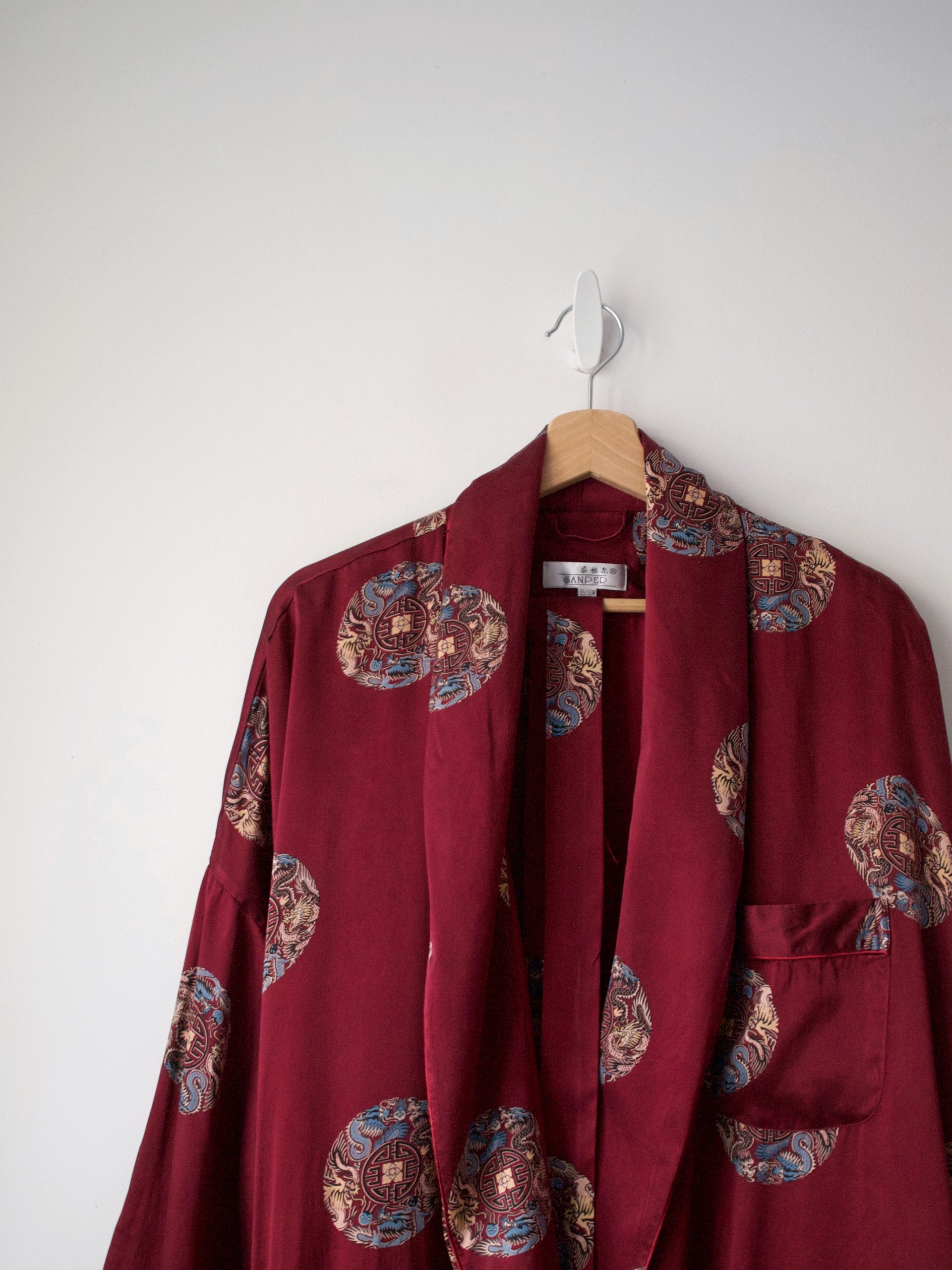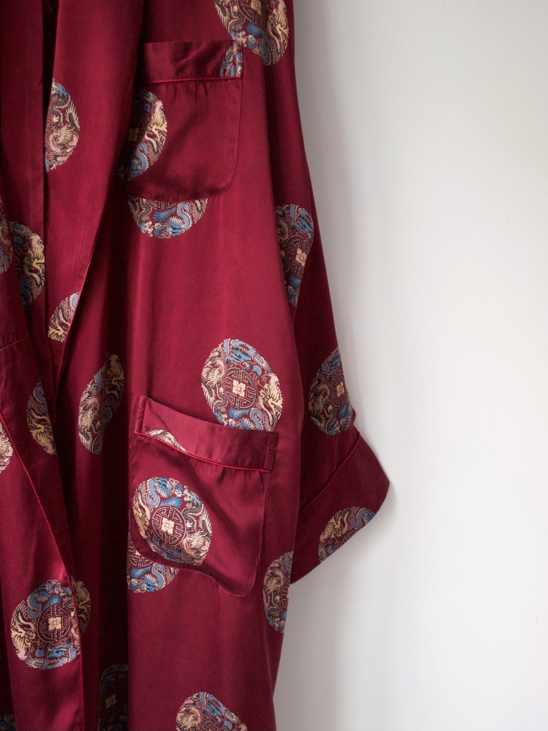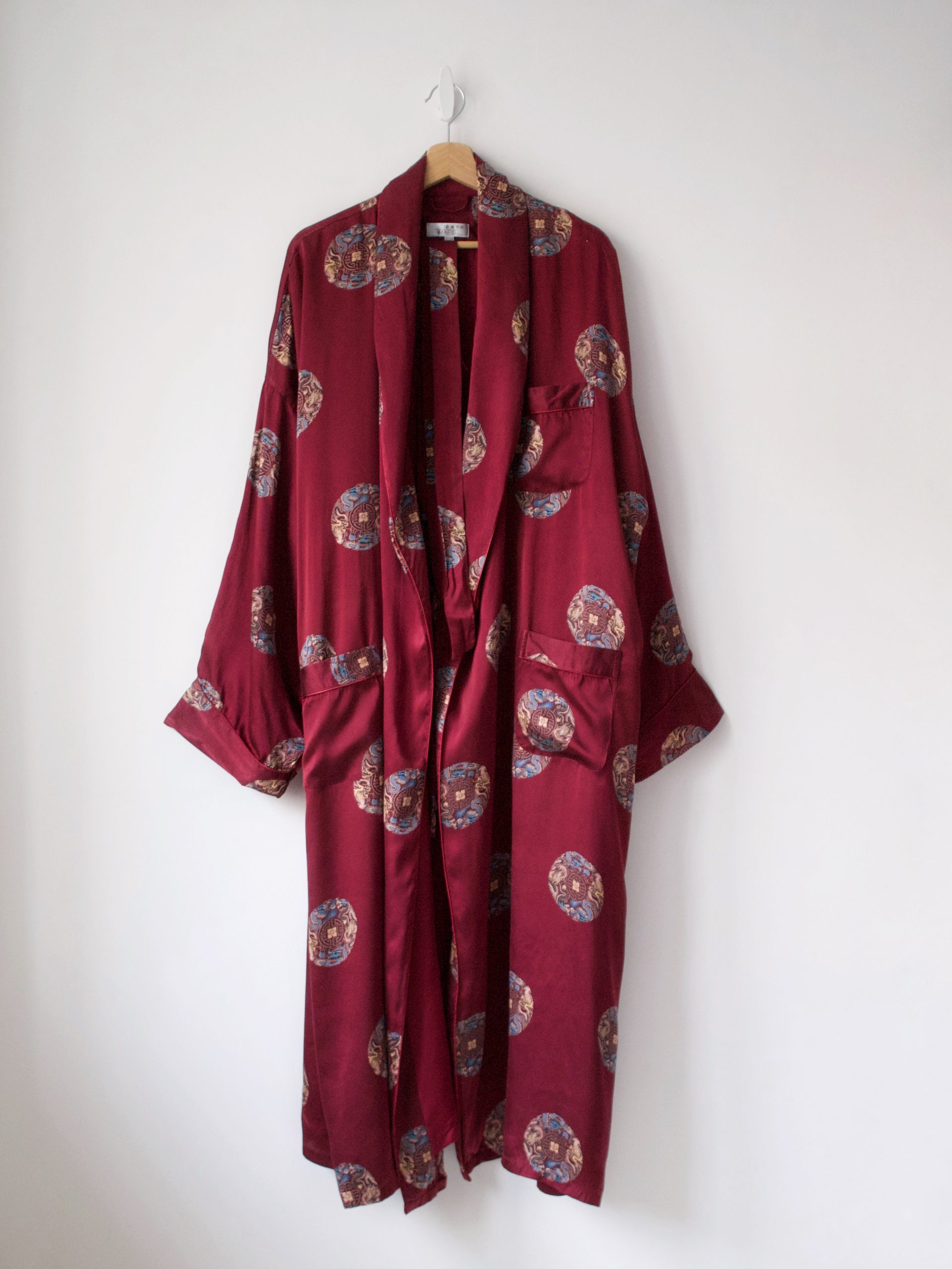 Jedwabny szlafrok vintage w orientalne wzory. Z paskiem oraz podszewką