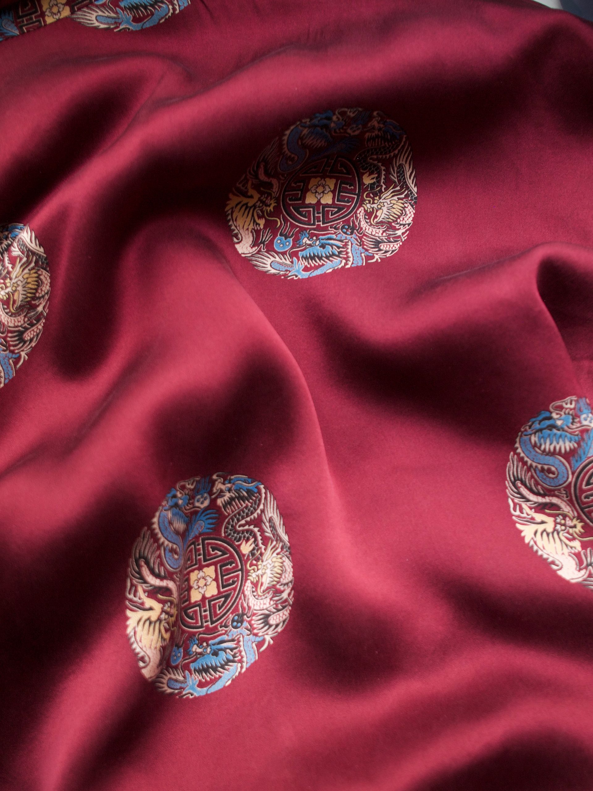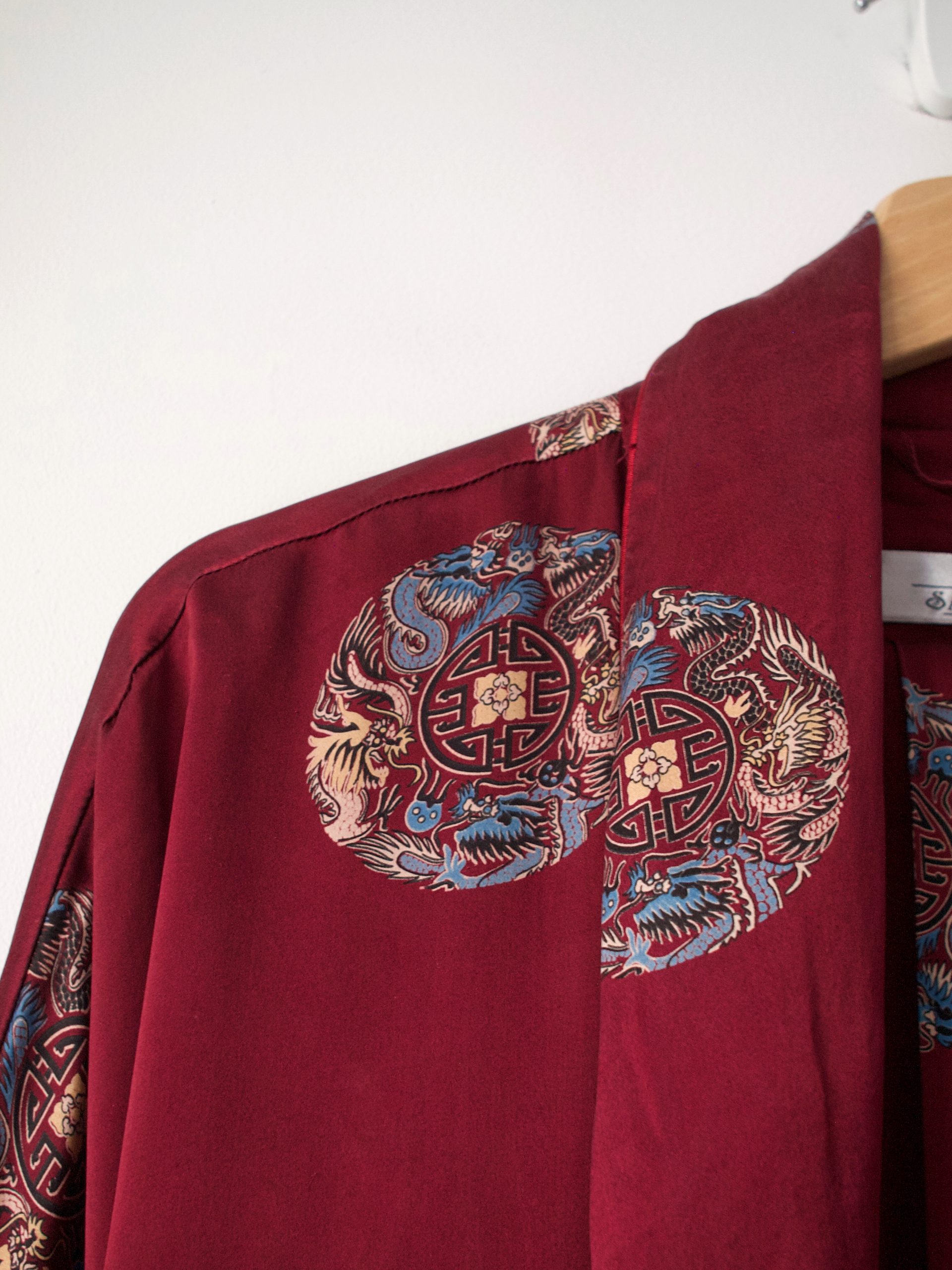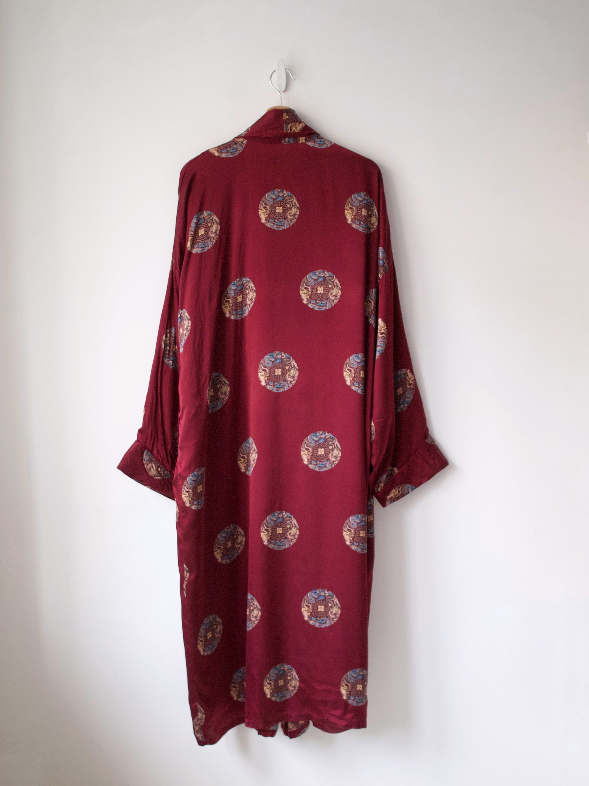 Jedwabny szlafrok vintage w orientalne wzory. Z paskiem oraz podszewką