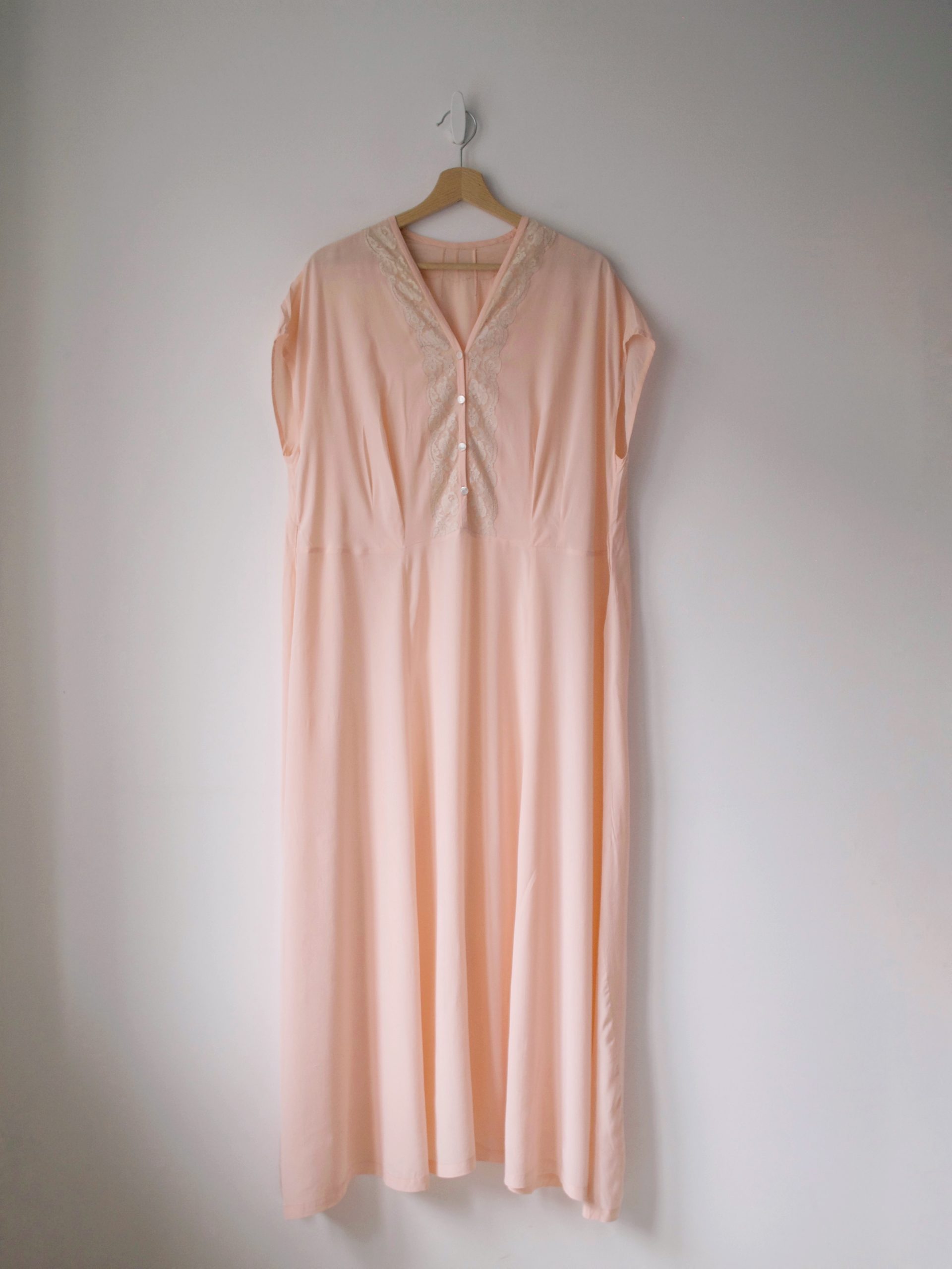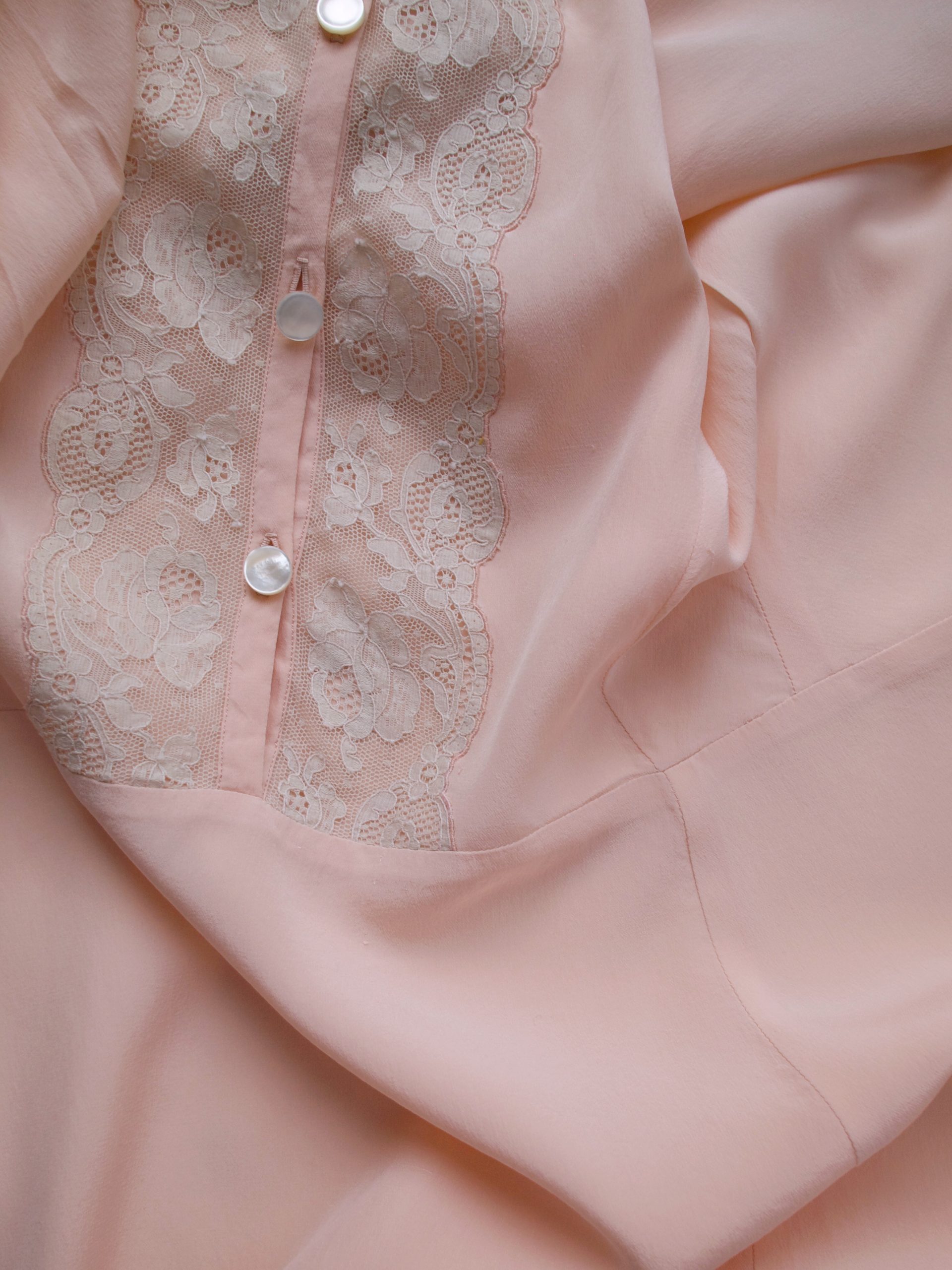 Unikatowa koszula nocna/sukienka, ręcznie uszyta z jedwabiu. W pasie szlufki na pasek. Bez podszewki.