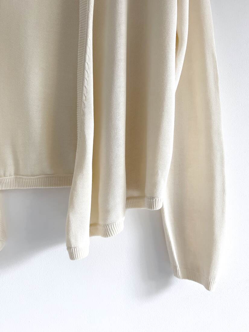 Kremowa koszula vintage z ozdobnymi guzikami i plisami na rękawach. Brak metki ze składem (prawdopodobnie poliester), materiał prawie nie gniecie się. Brak metki z rozmiarem, proszę sprawdzać wymiary. Bez wad.