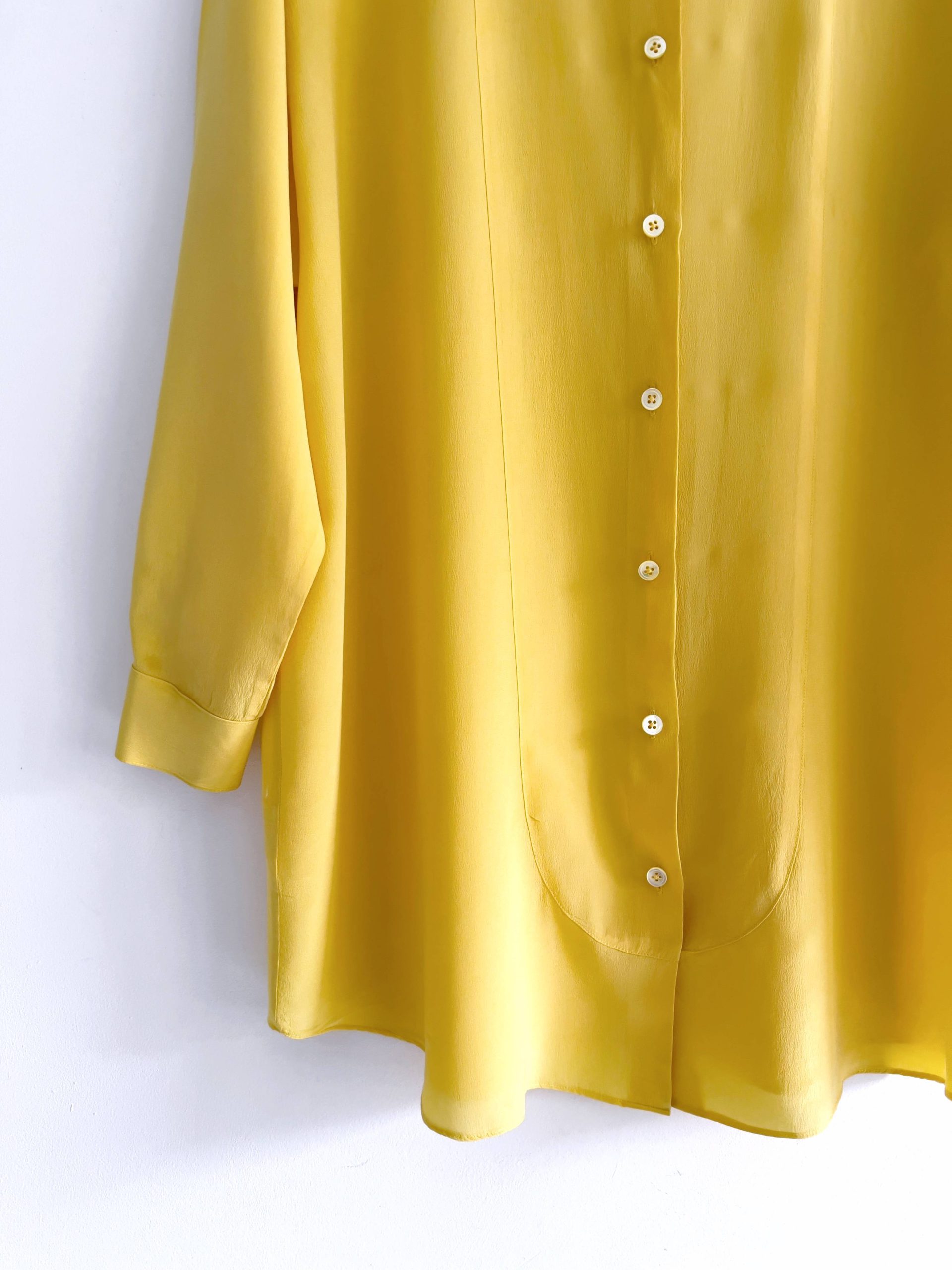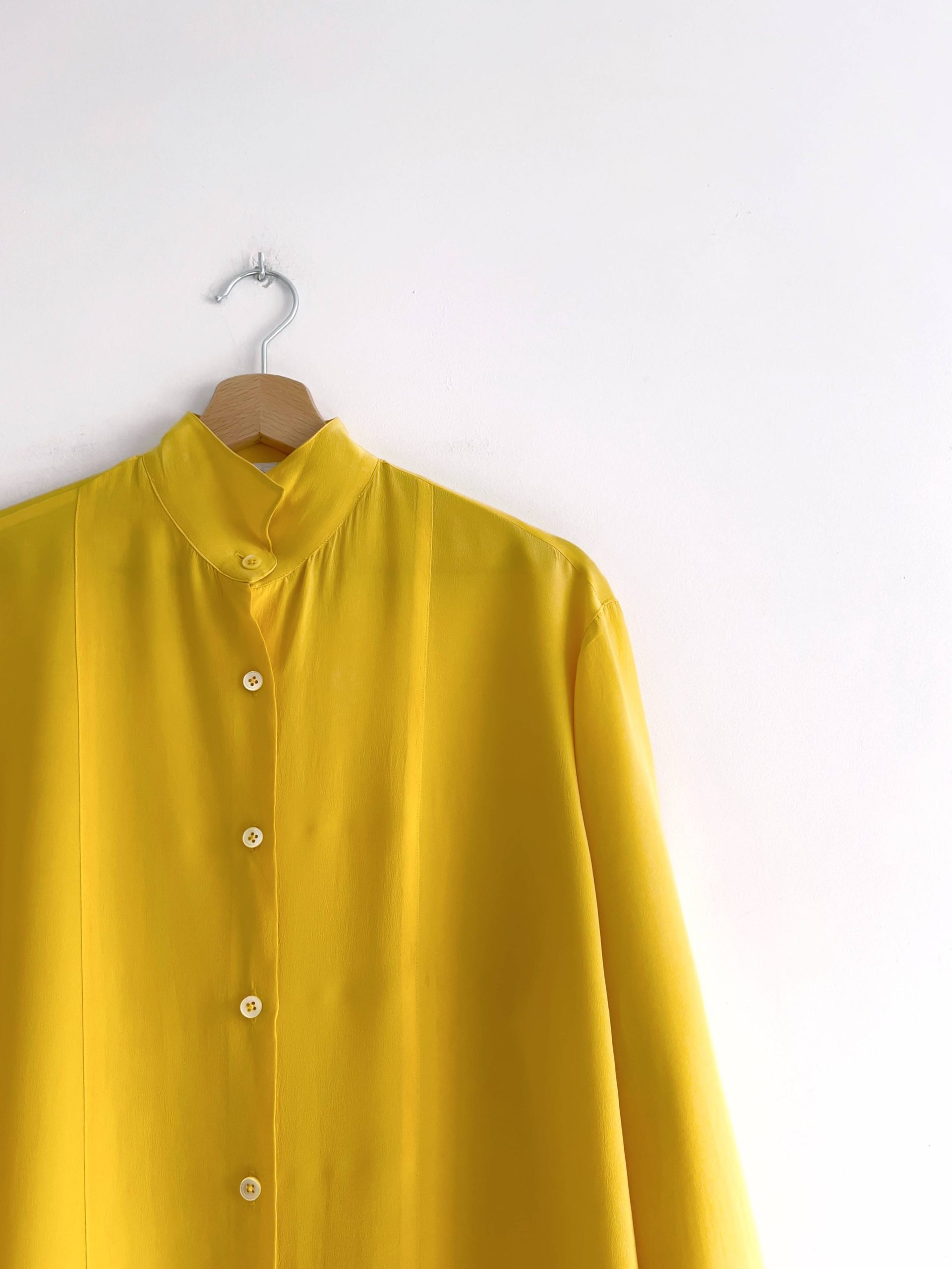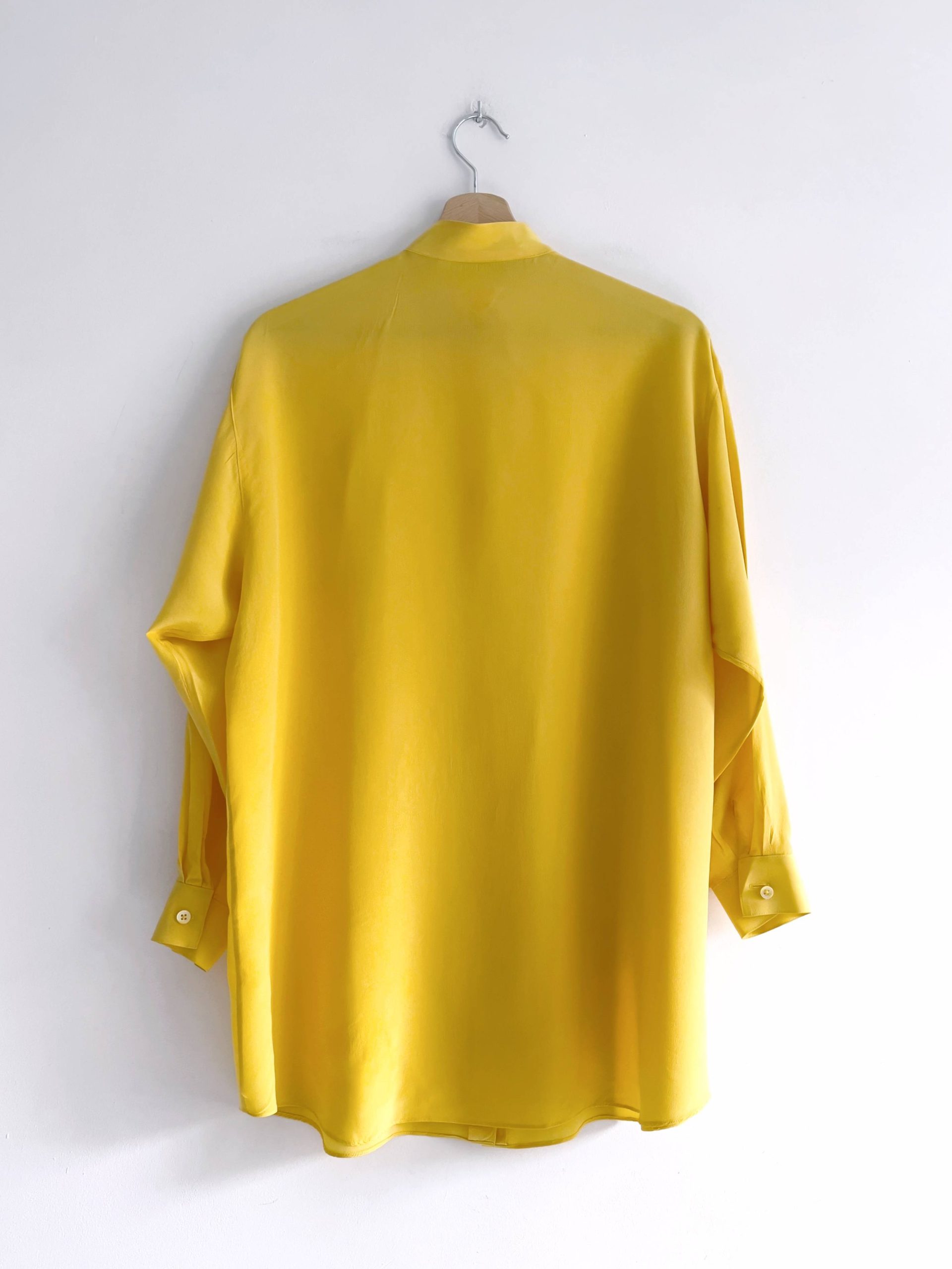 Jedwabna koszula vintage w słonecznym kolorze. Rozmiar z metki M, fason dość luźny, więc będzie pasować również na L. Bez wad.