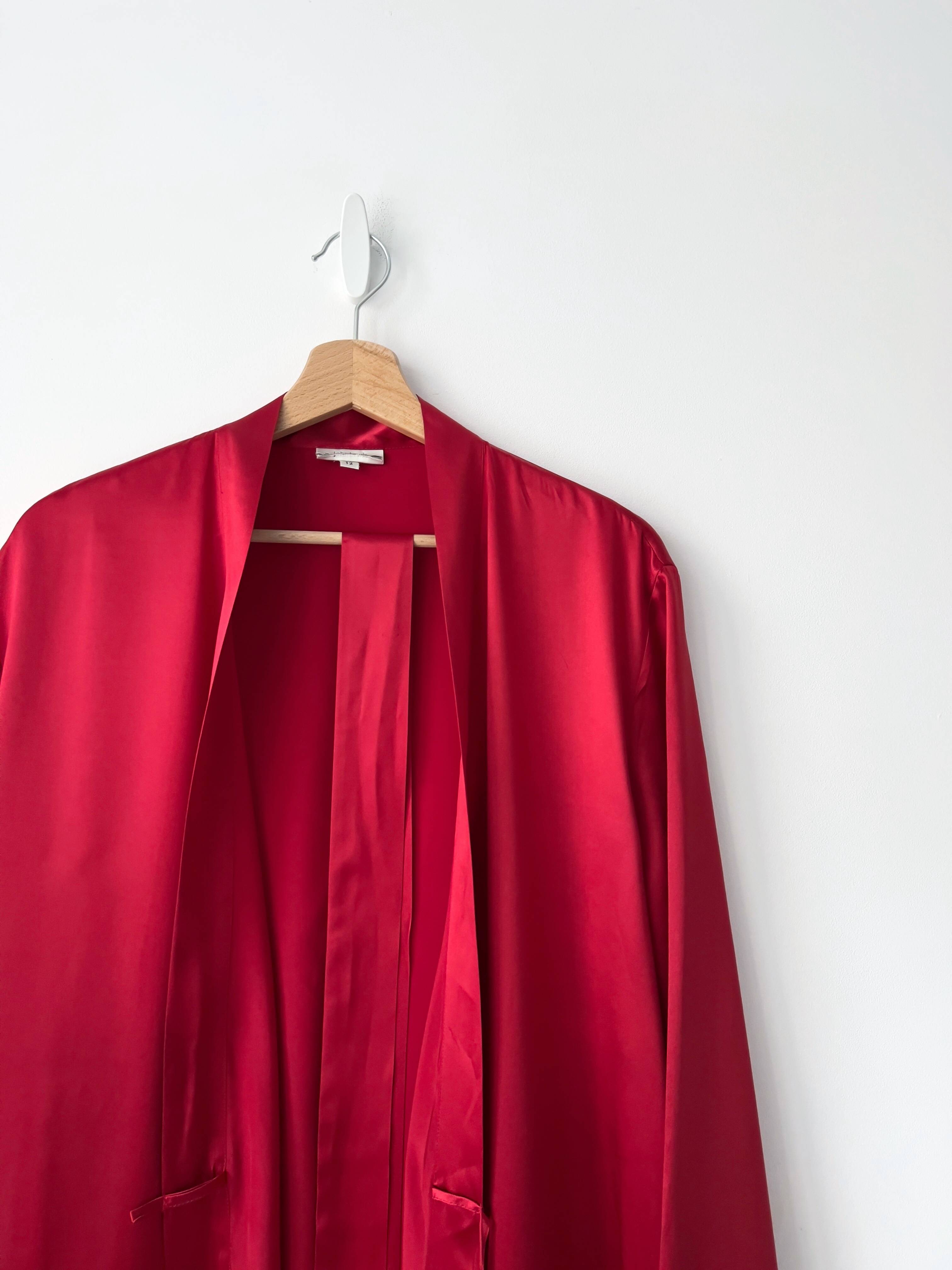Skórzana marynarka vintage w pięknym karmelowym kolorze. Prosty krój, z podszewką, ma guziki zapasowe. Rozmiar z metki 42, dla mniejszych idealna jako oversize. Bardzo dobry stan, jest wyczyszczona specjalistycznymi środkami dla skóry oraz ozonowana. Modelka nosi rozmiar XS-S