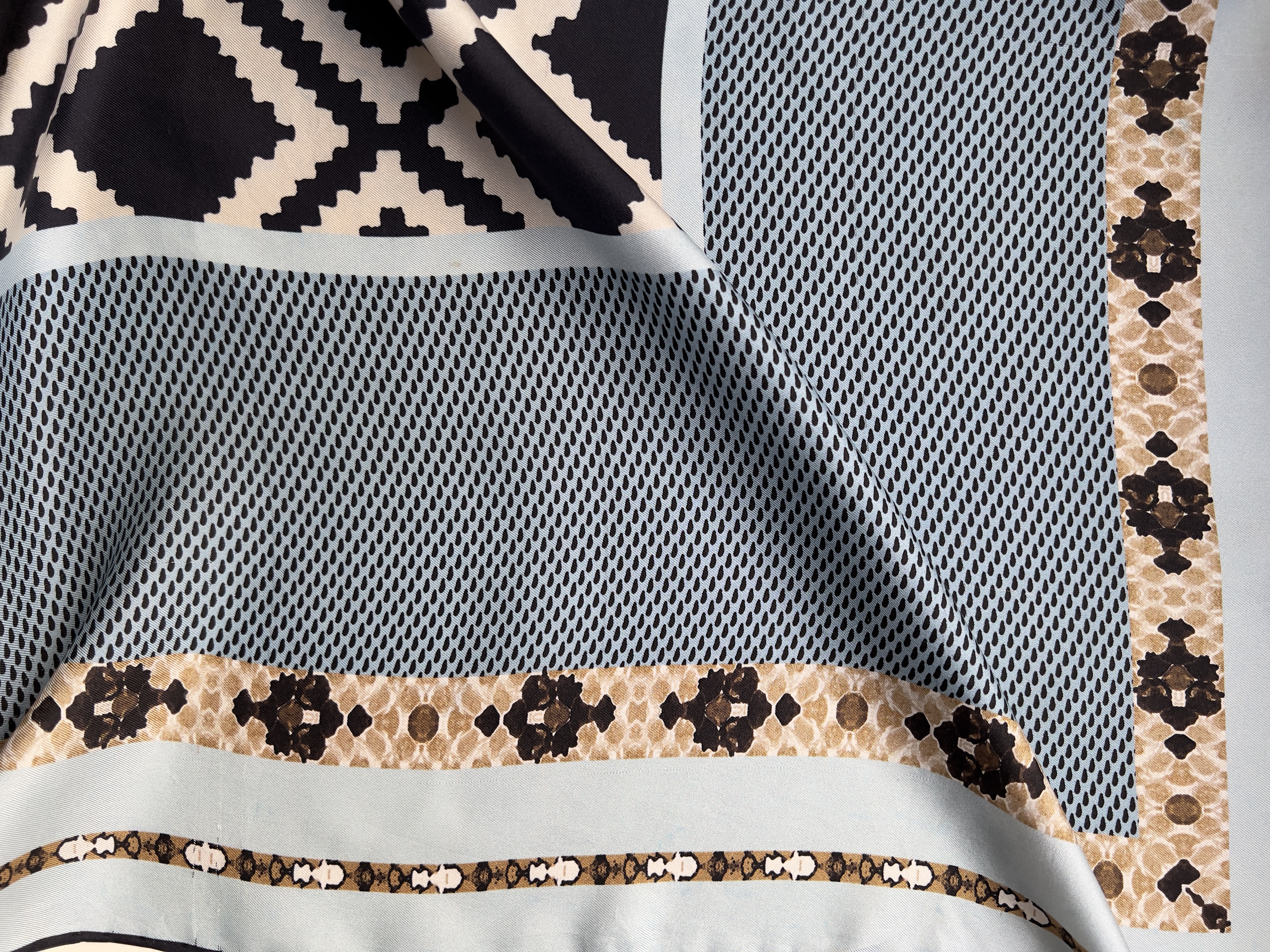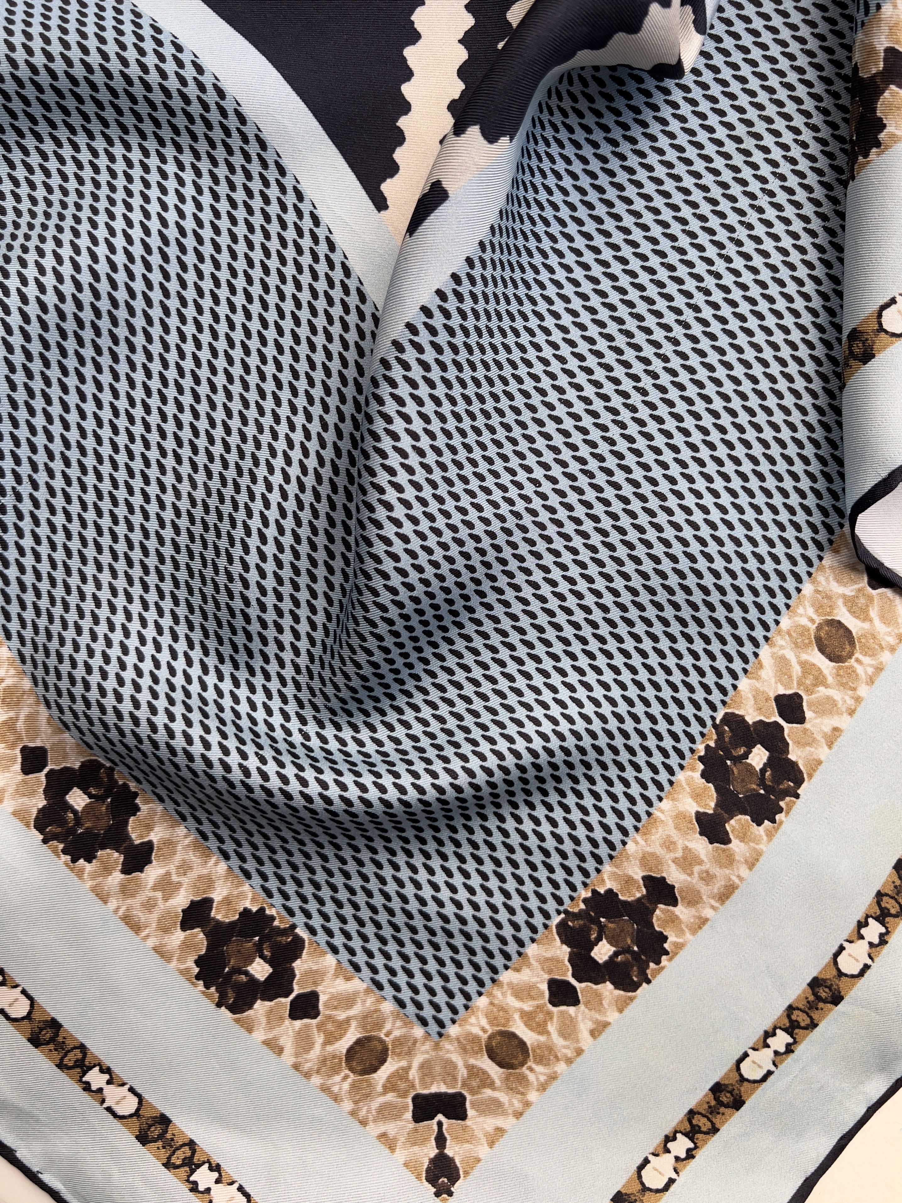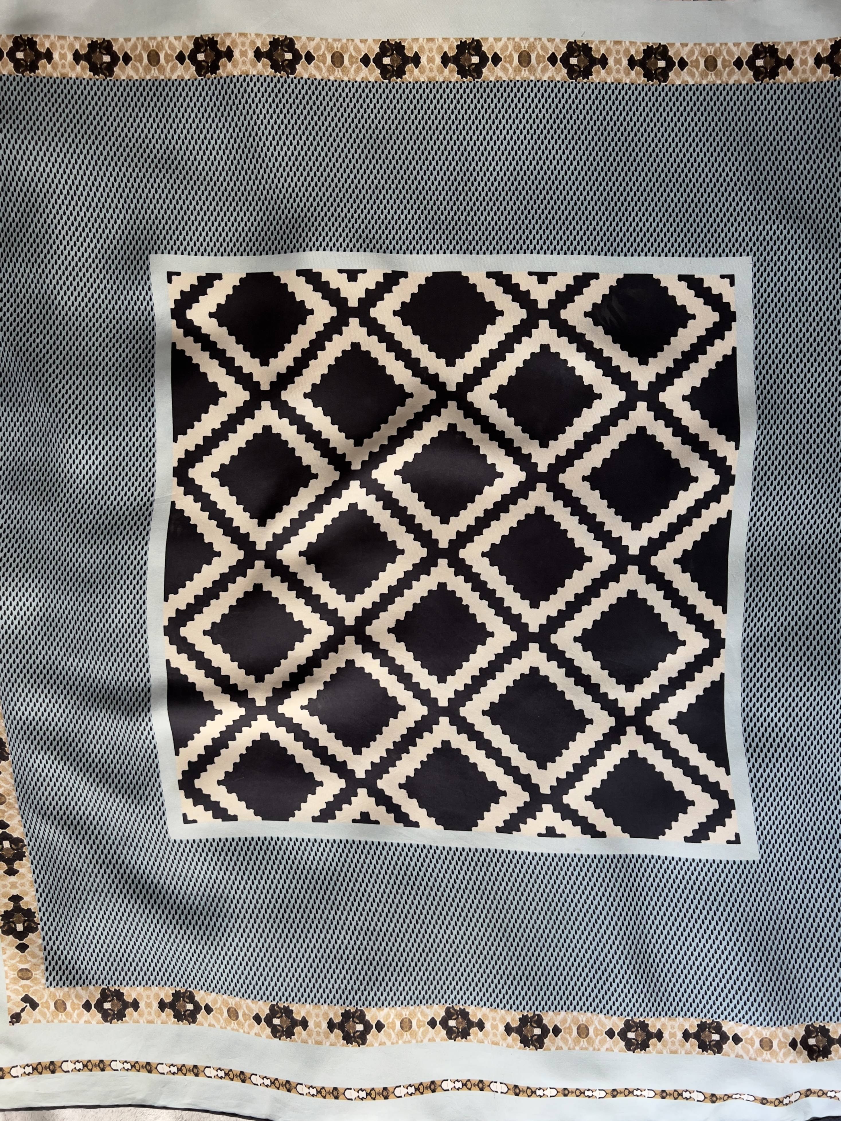 Jedwabna chusta we wzory. Bardzo dobry stan. Wymiary: 87*88 cm
