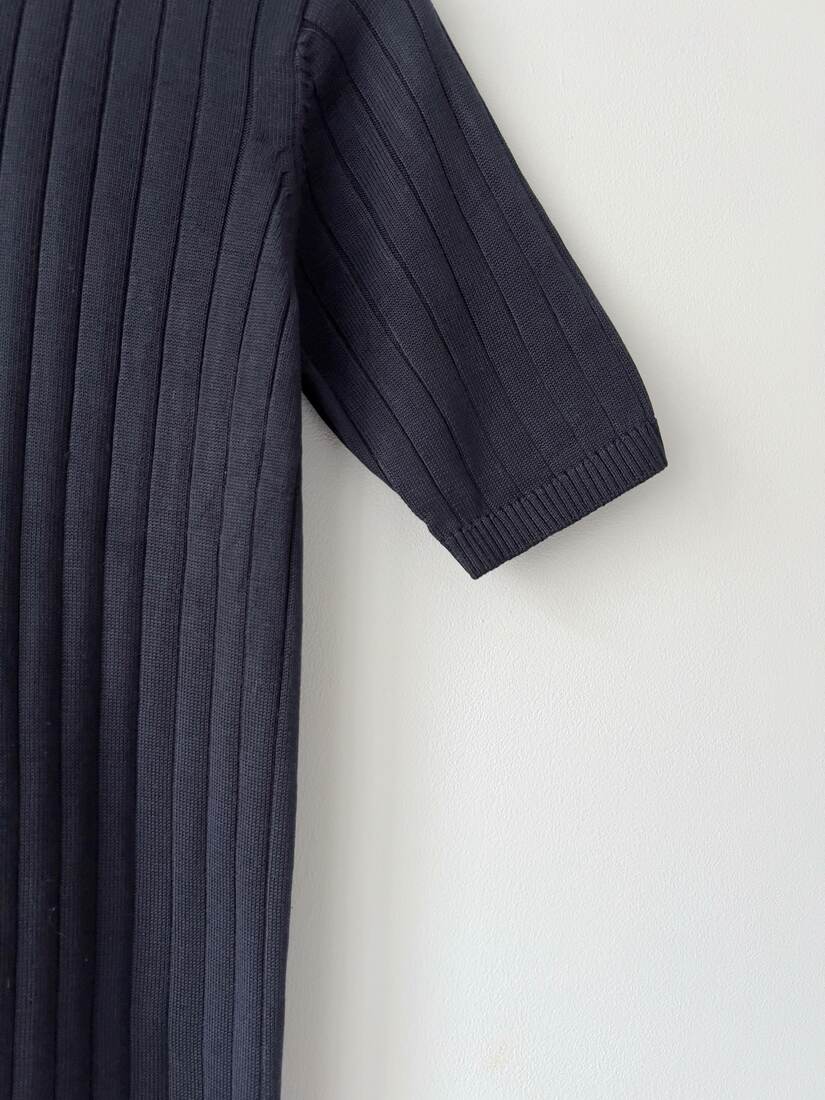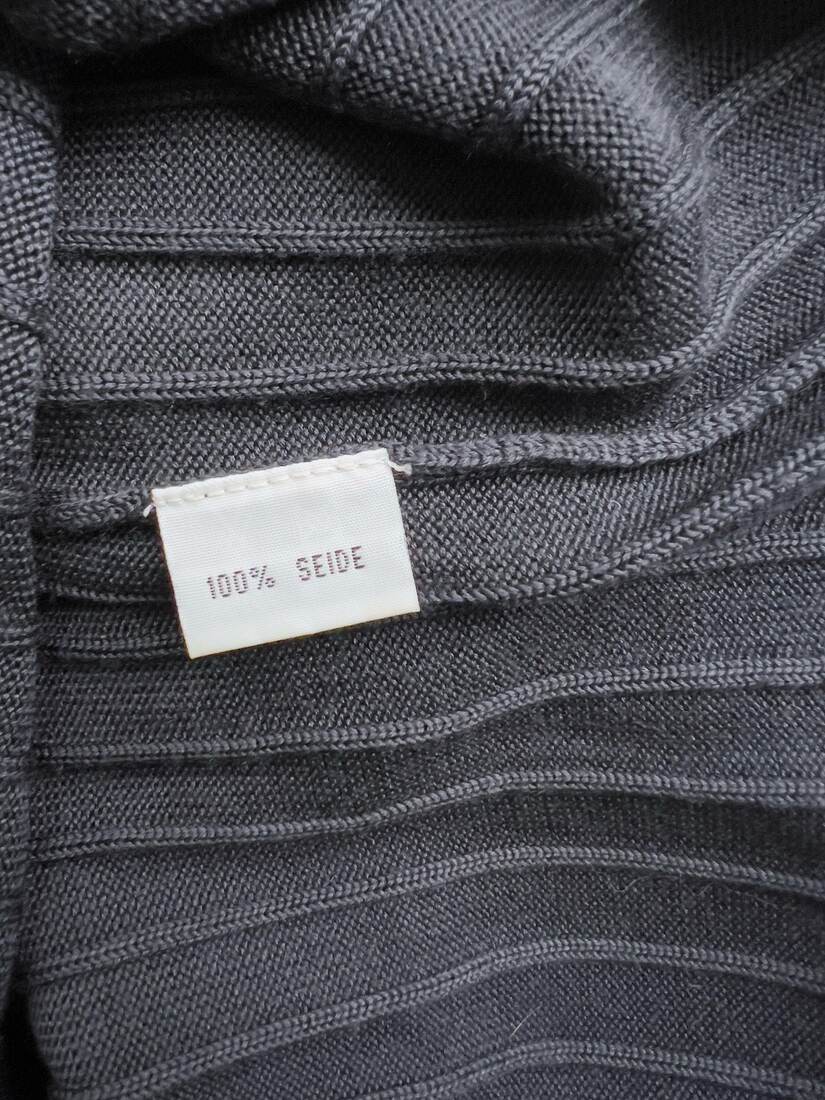 Granatowa bluzka w prążki, w 100% wykonana z jedwabiu. Polecam na M. Bardzo dobry stan. Skład: 100% jedwab