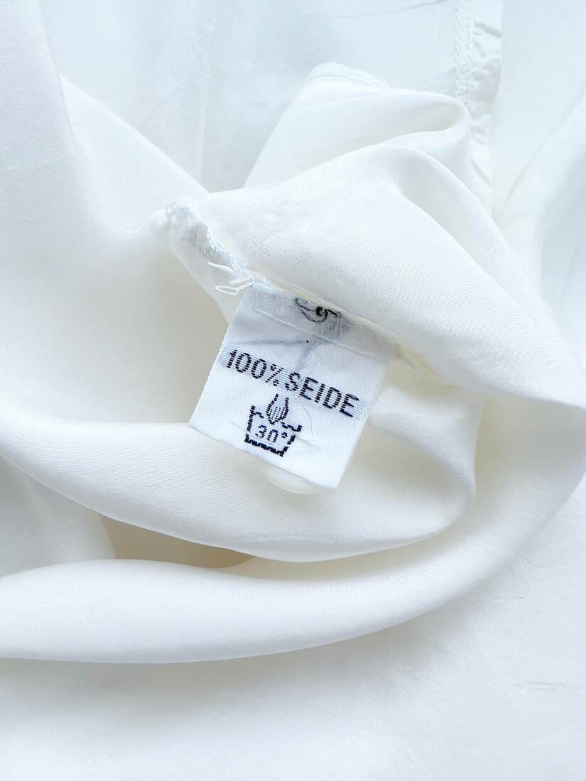 Jedwabna koszula vintage. Brak metki z rozmiarem, polecam na L-XL lub jako oversize. Koszula ma delikatne wady materiału, są pokazane w zbliżeniu na zdjęciu. Nie są widoczne w noszeniu.