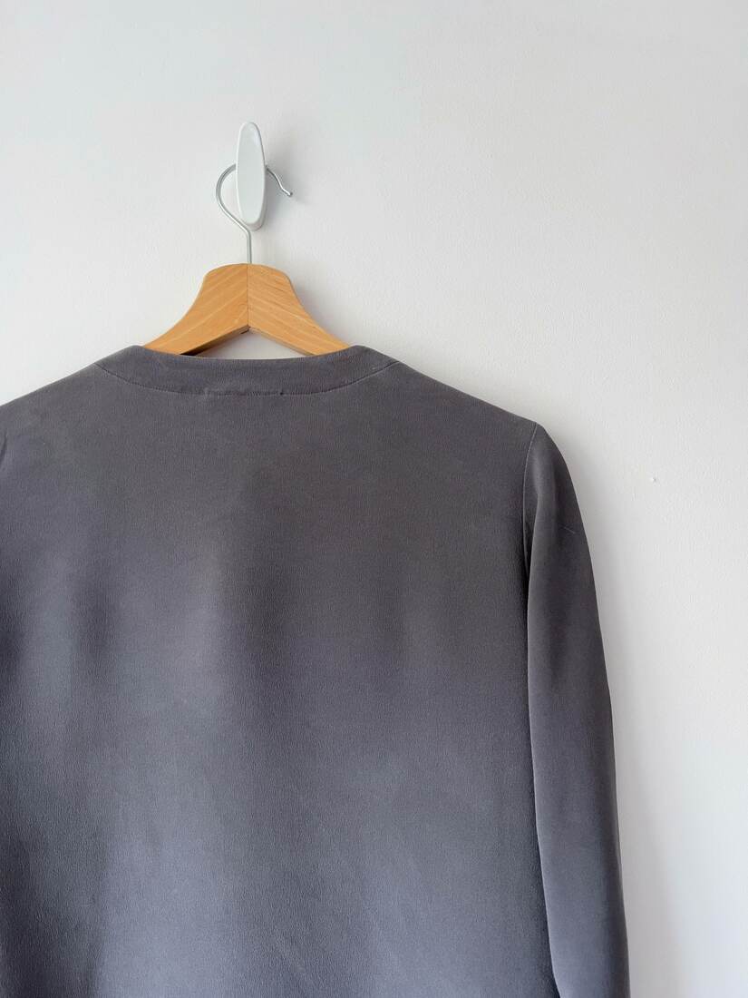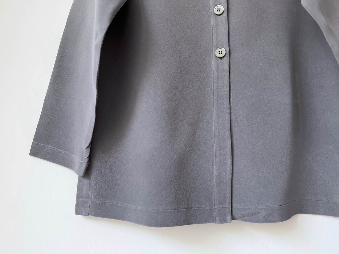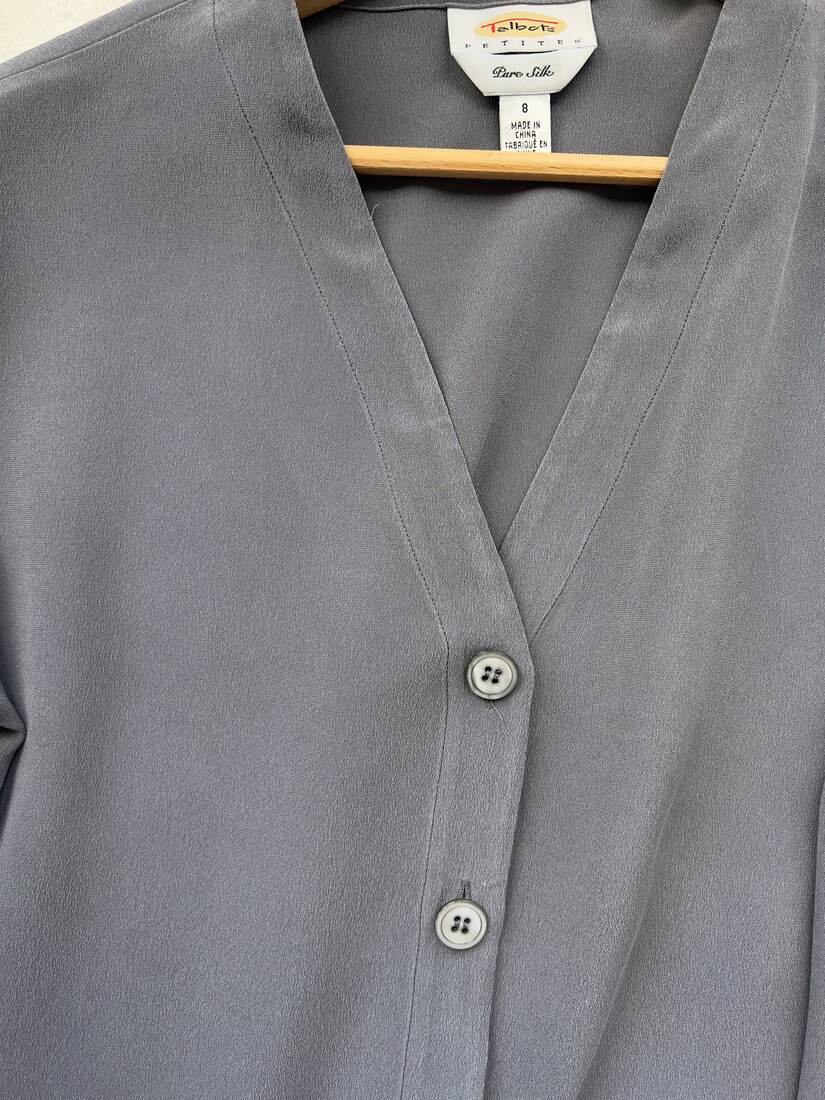 Koszula vintage w 100% wykonana z grubego jedwabiu. Może być noszona również jako lekkie okrycie wierzchnie. Rozmiar z metki 8, polecam na M. Bez wad.