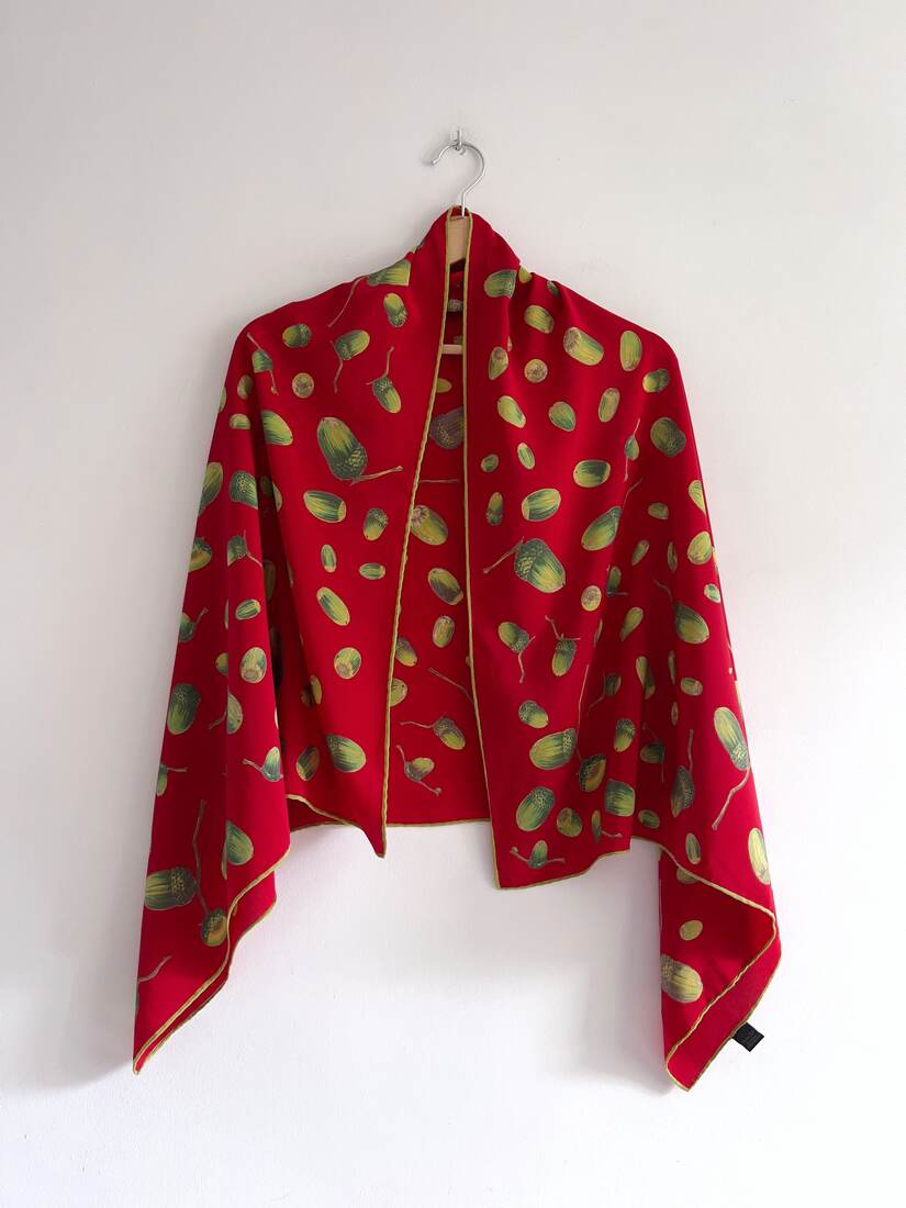 Duży jedwabny szal ekskluzywnej szwajcarskiej marki Fabric Frontline Zurich, cena katalogowa ponad 300 euro. Ręcznie robiony i rolowany w Szwajcarii. Bez wad, po czyścieniu chemicznym.