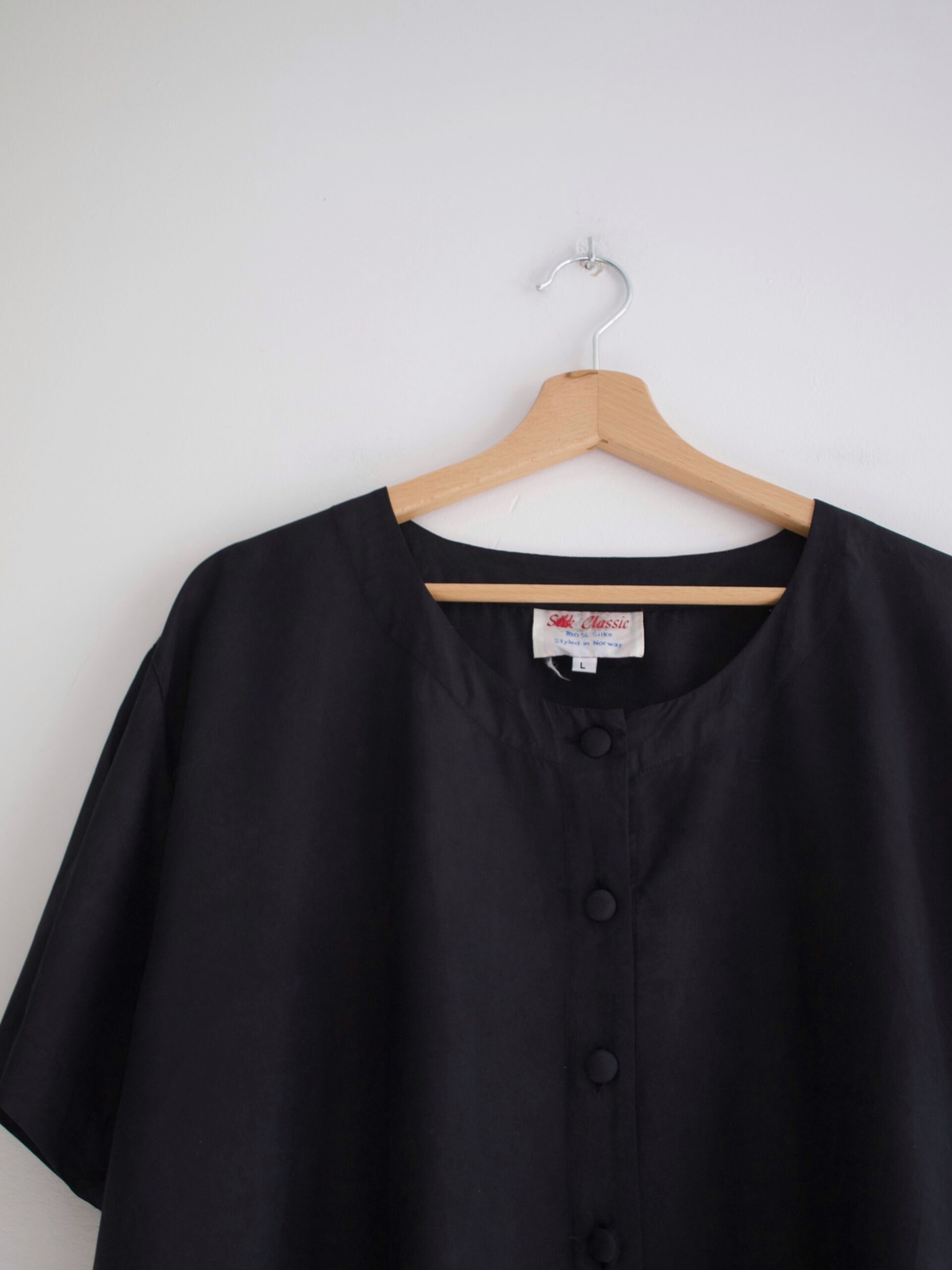 Jedwabna koszula vintage. Wykonana z matowego gęstego jedwabiu, zapinana na guziki powlekane jedwabną tkaniną.