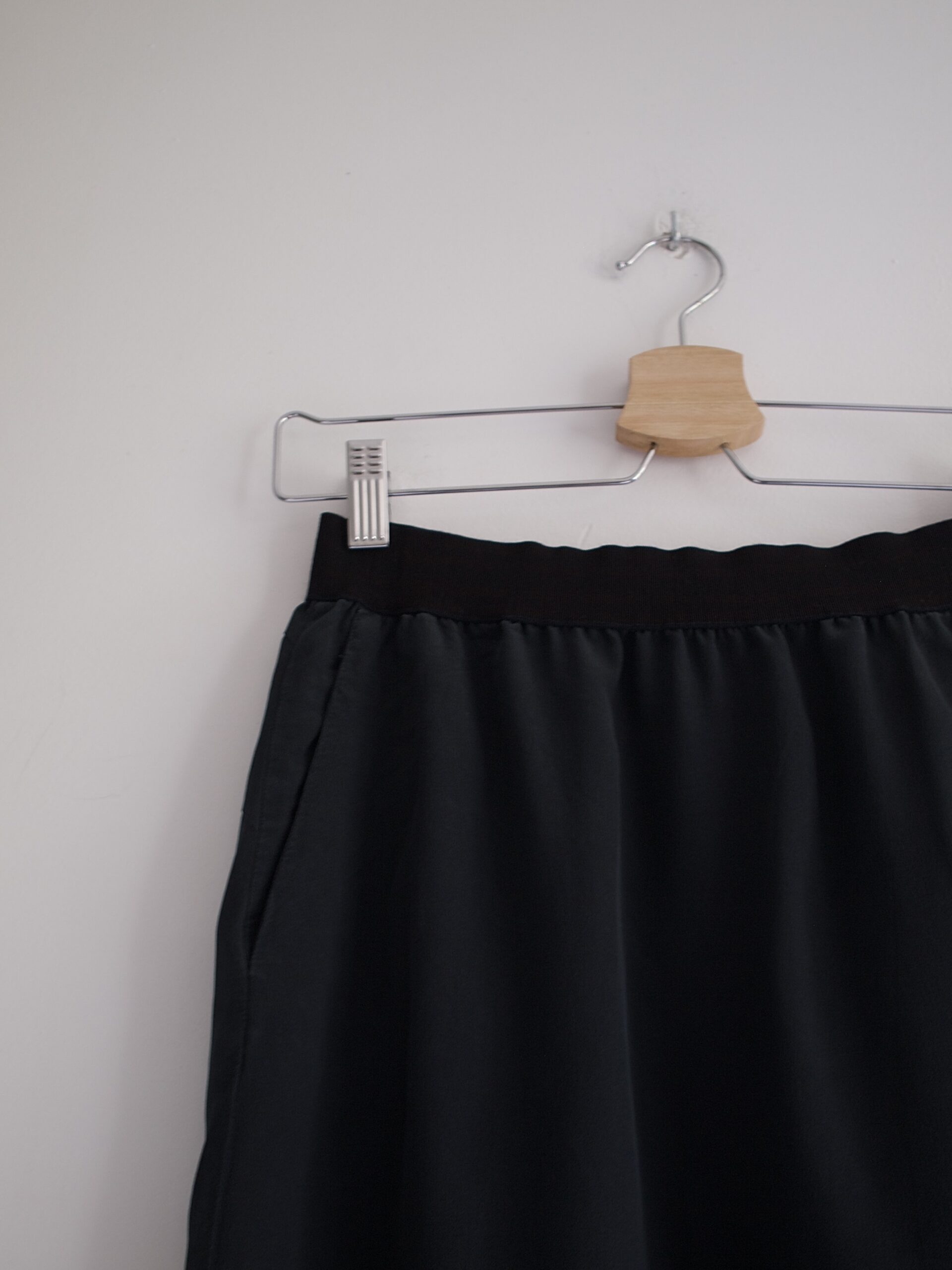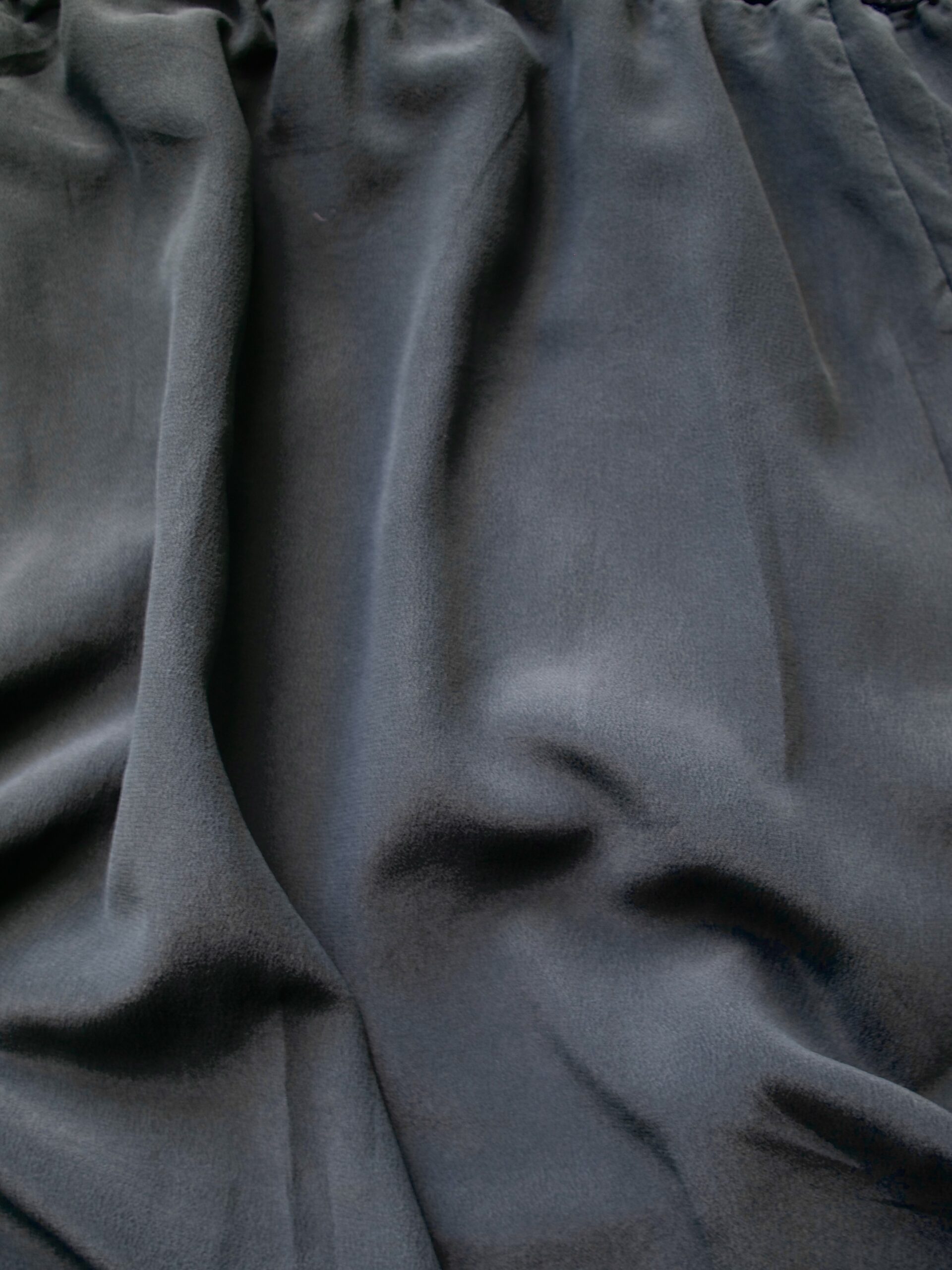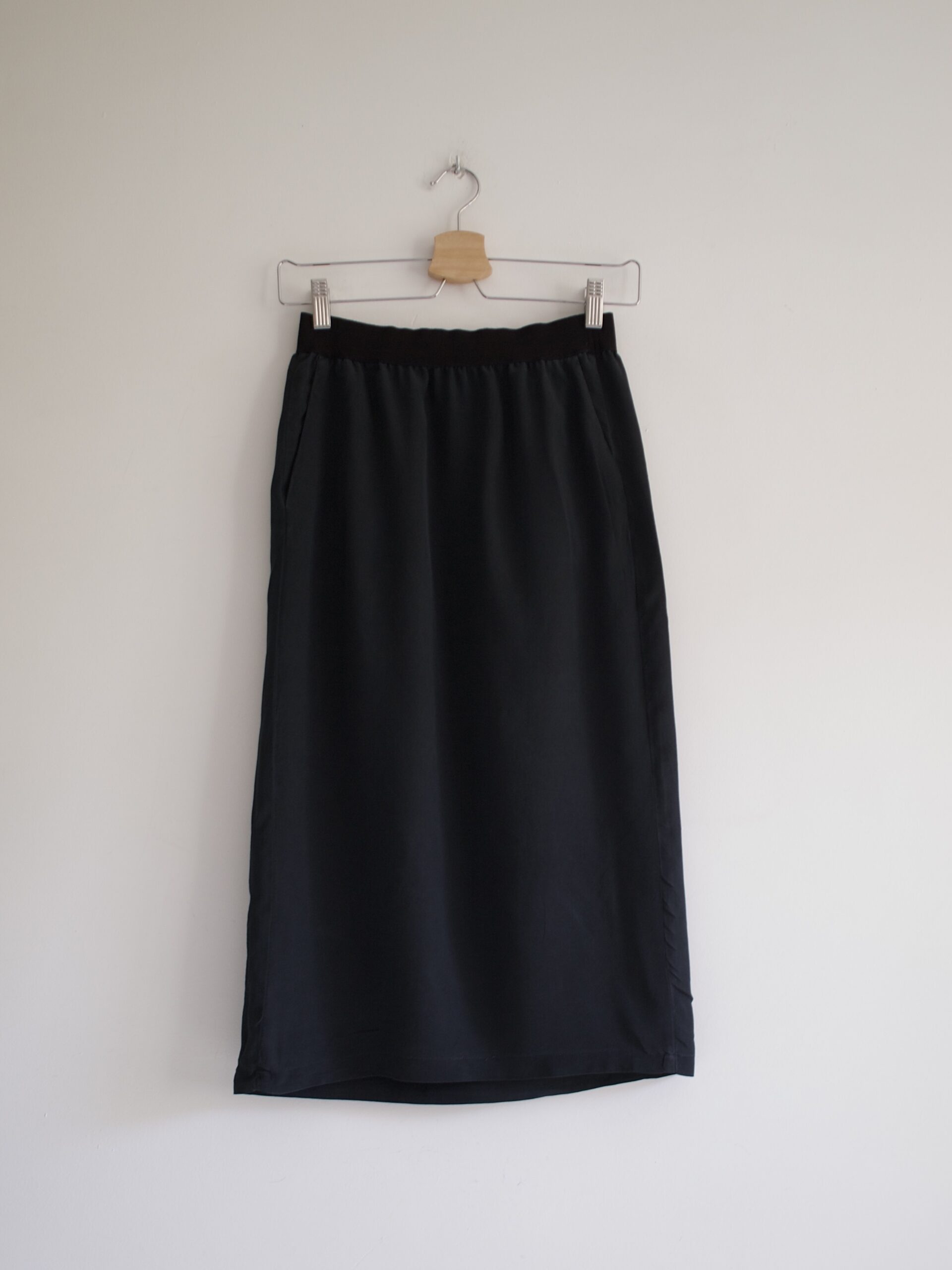 Jedwabna spódnica w kolorze granatowym. Ekskluzywna francuska marka Diega, podobny model wykonany z wiskozy jest dostępny na stronie w cenie 160 euro. W pasie gumka oraz kieszenie.