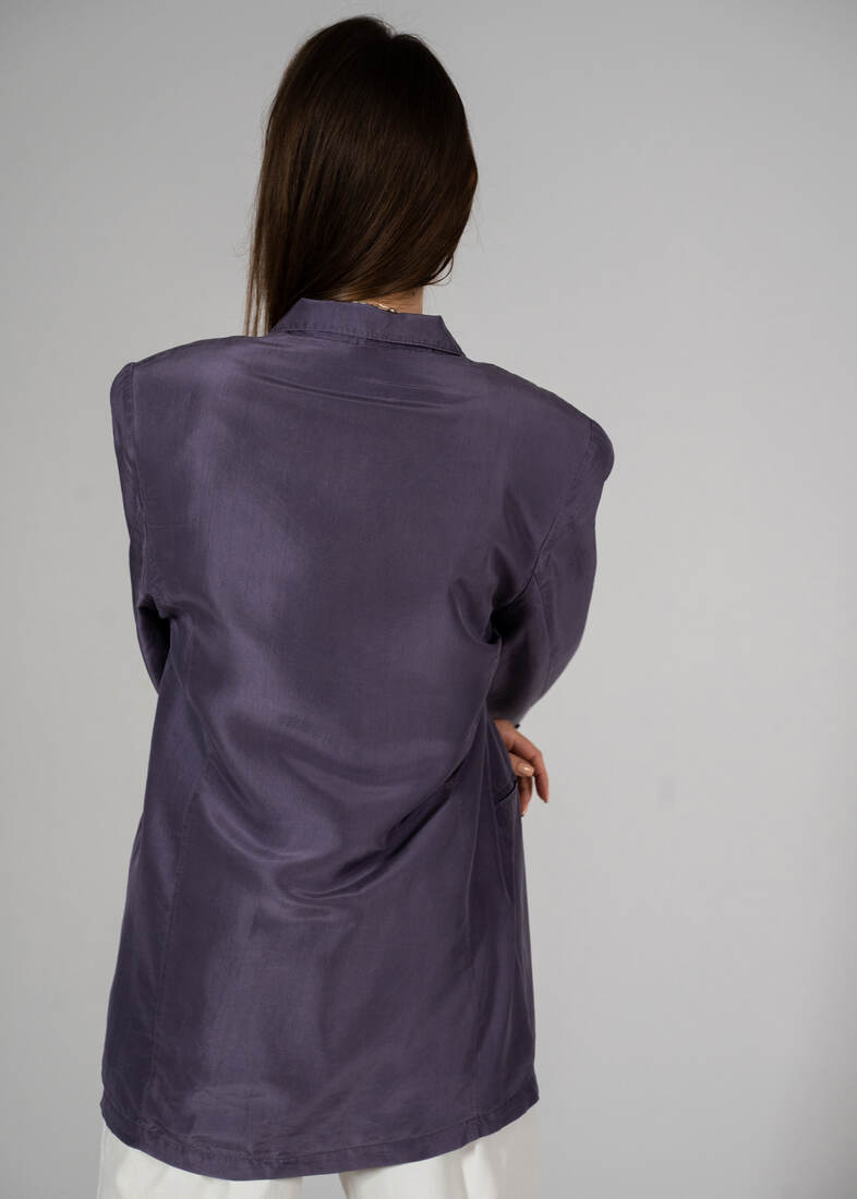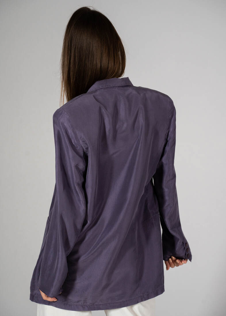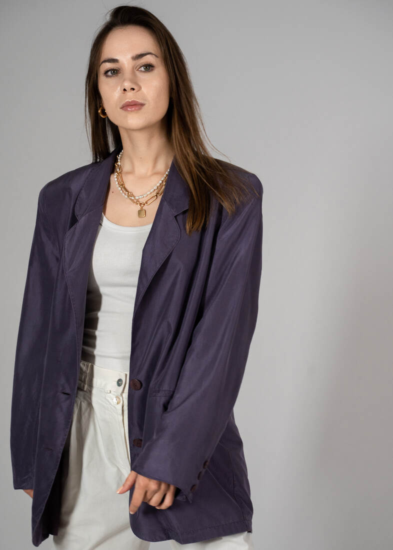 Unikatowa marynarka vintage, w 100% wykonana z jedwabiu. Prosty fason, ramiona usztywnione. Rozmiar z metki 36, jednak jest luźna, będzie pasować również na M-L. Bez wad.