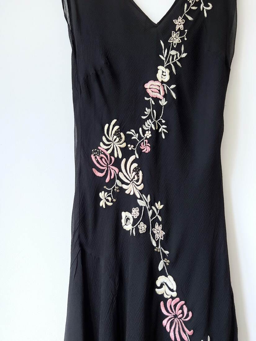 Jedwabna sukienka vintage. Posiada jedwabną podszewkę. Rozmiar z metki 10, polecam na S-M. Bez wad.