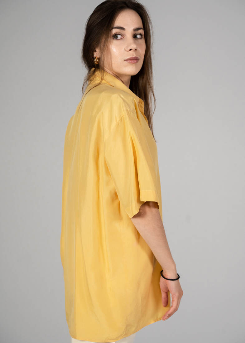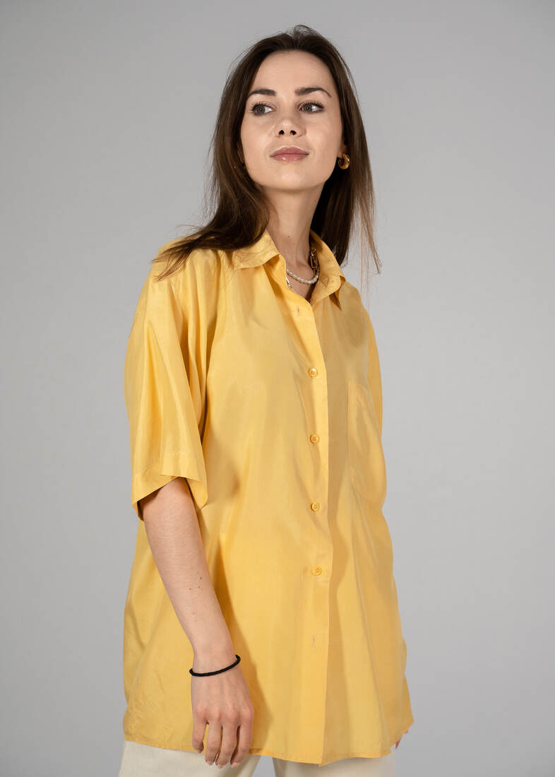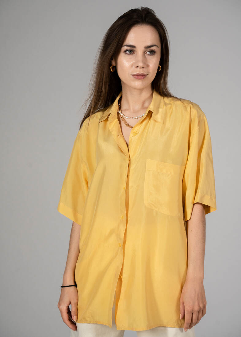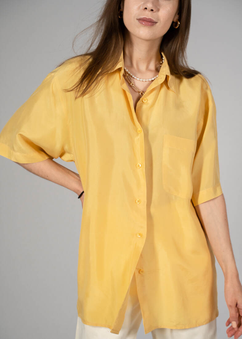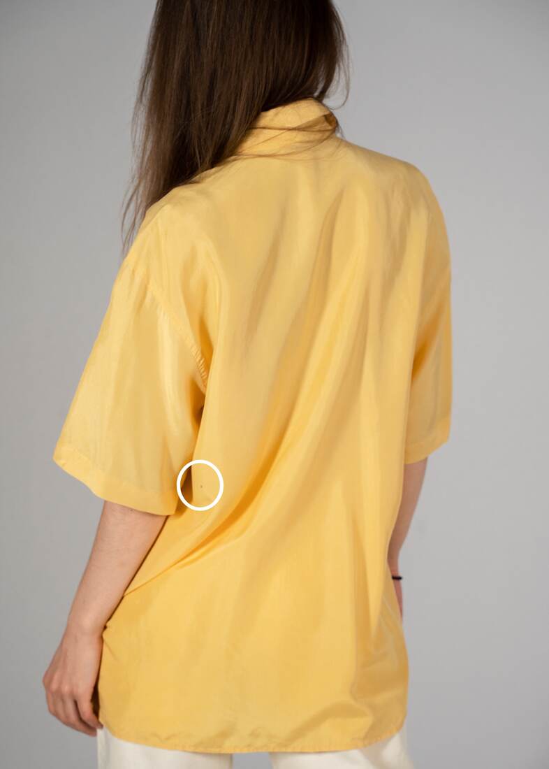 Jedwabna koszula vintage. Polecam na L-XL lub na mniejsze jako oversize. Z tyłu jest mała kropka, pokazana na zdjęciu, nie jest widoczna w noszeniu.