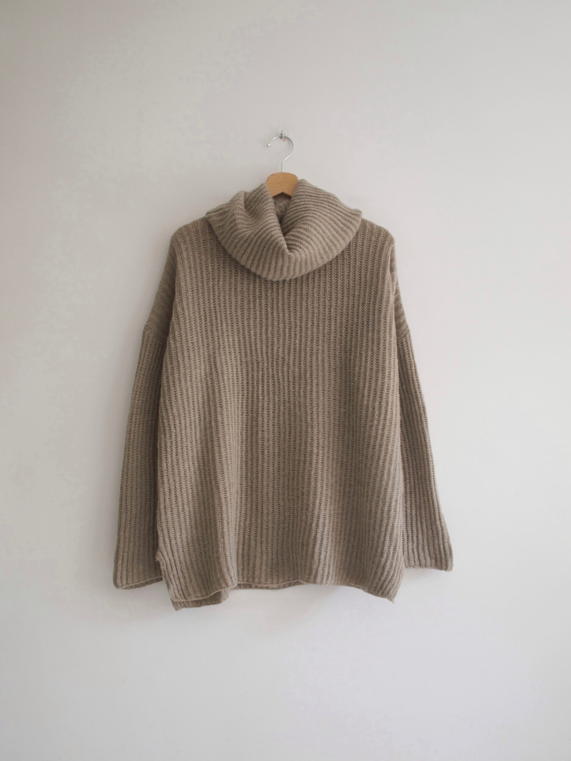 Sweter o pudełkowym fasonie. Luksusowa włoska marka Le Tricot Perugia, specjalizująca się w produkcji ubrań najlepszej jakości. Cena podobnego modelu swetra tej marki to ok 2000 zł.