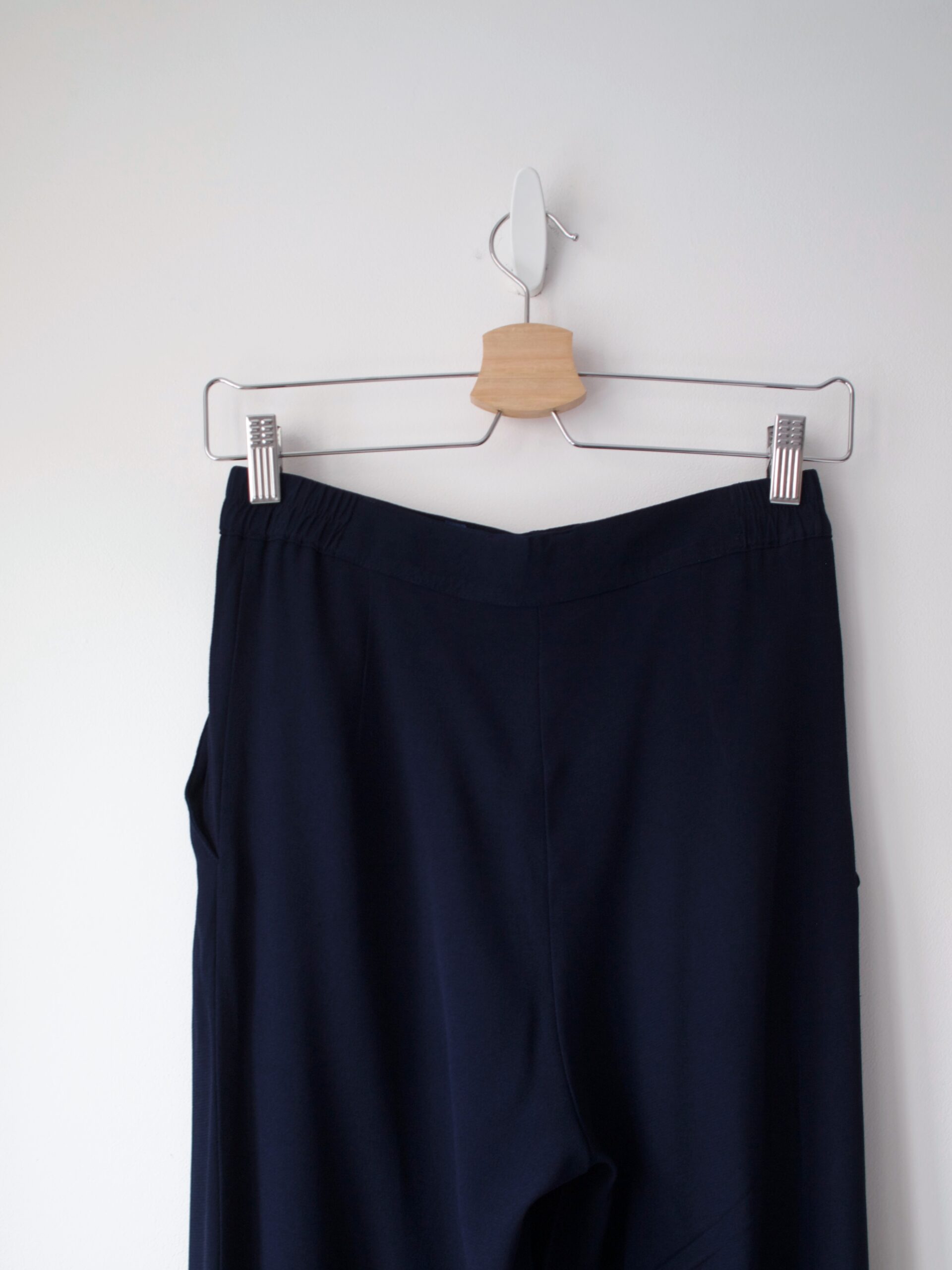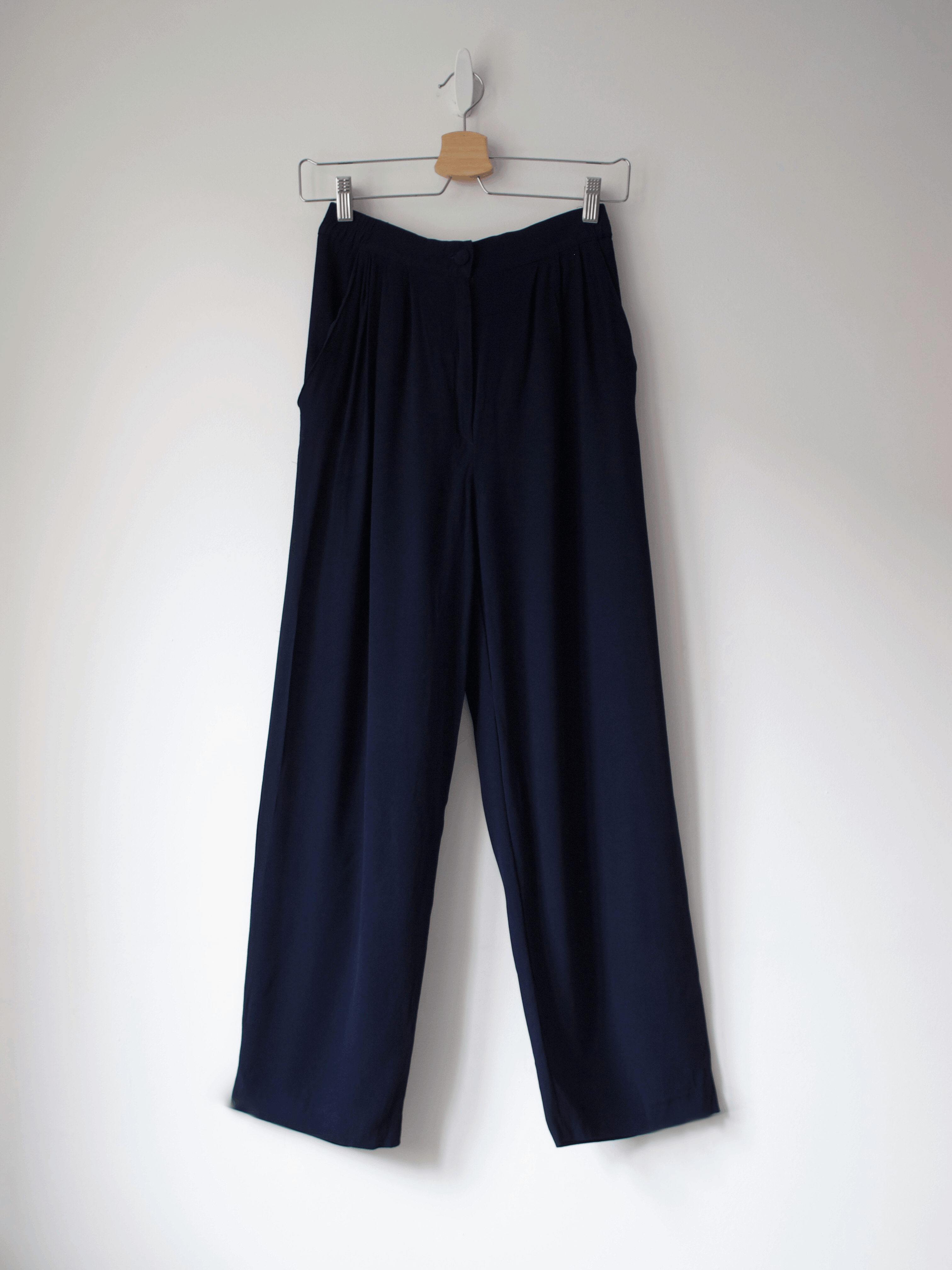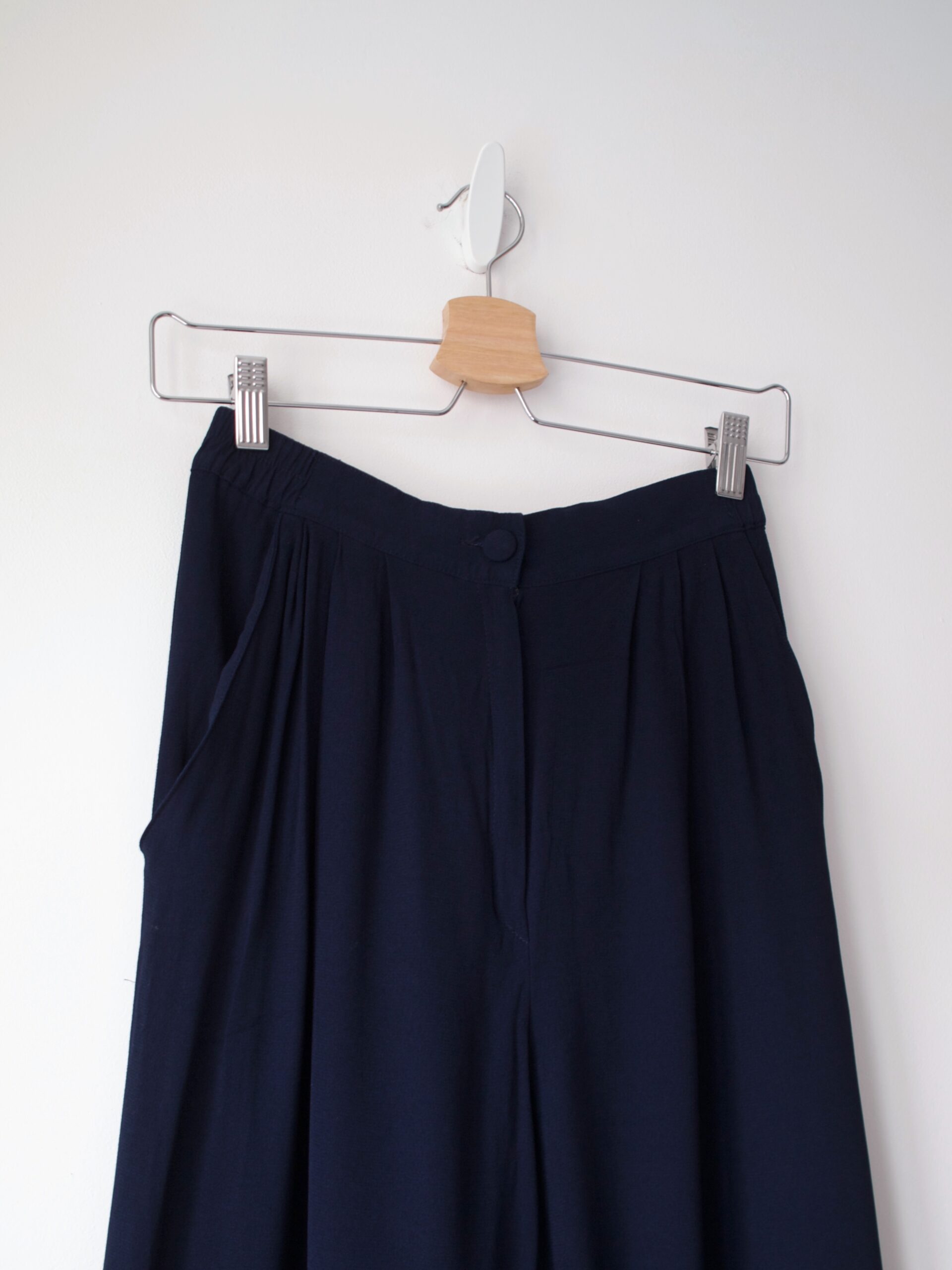 Granatowe spodnie vintage. Szerokie nogawki, wysoki stan, z kieszeniami.