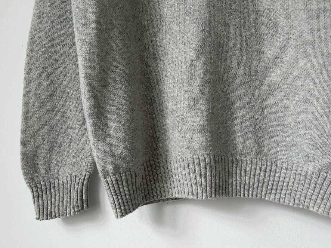 Klasyczny sweter M&S z dekoltem w serek. Skład to 100% kaszmir, bardzo dobry stan, jest minimalnie sfilcowany, nie jest to zauważalne, po prostu jest trochę sztywniejszy.