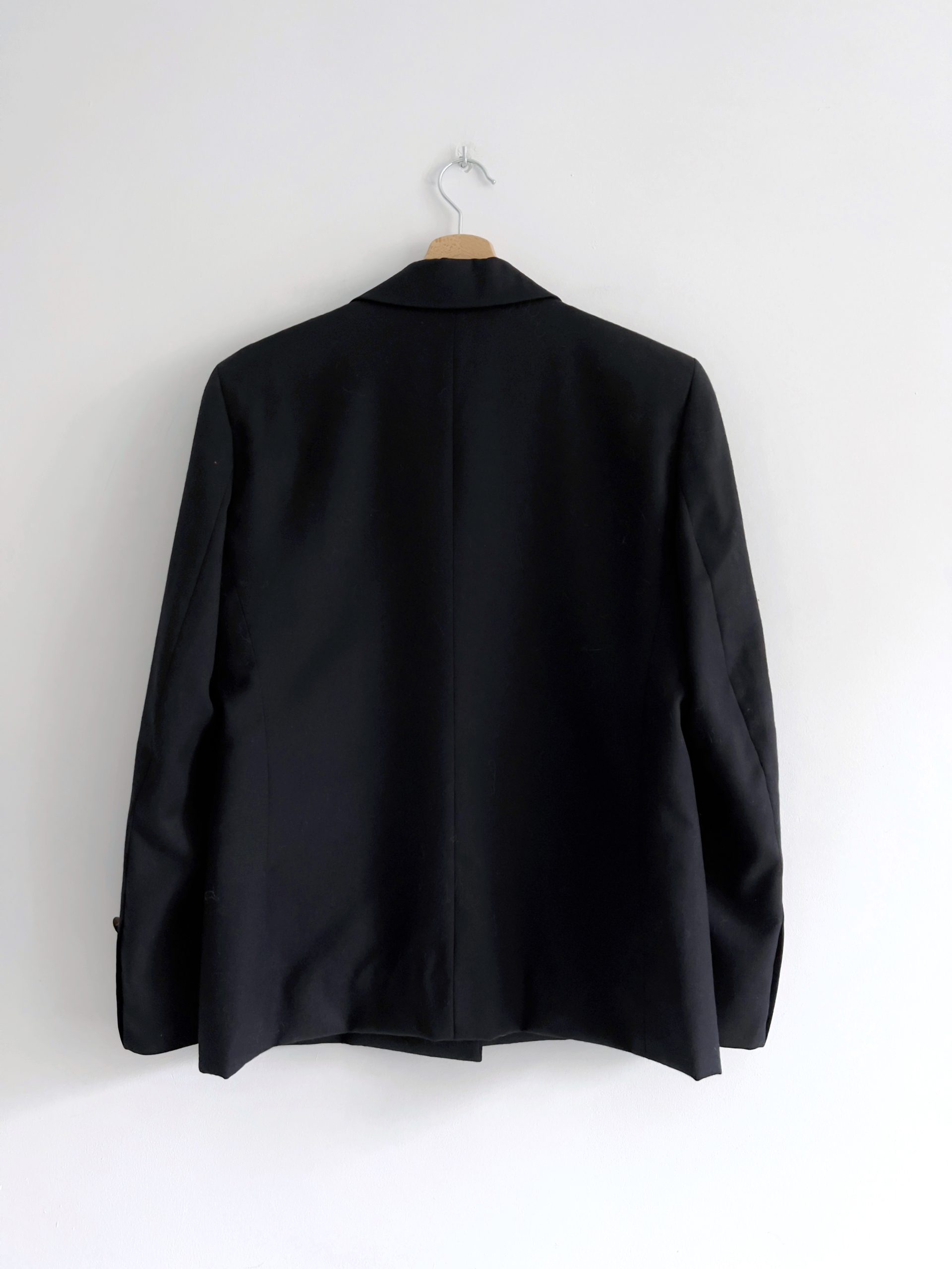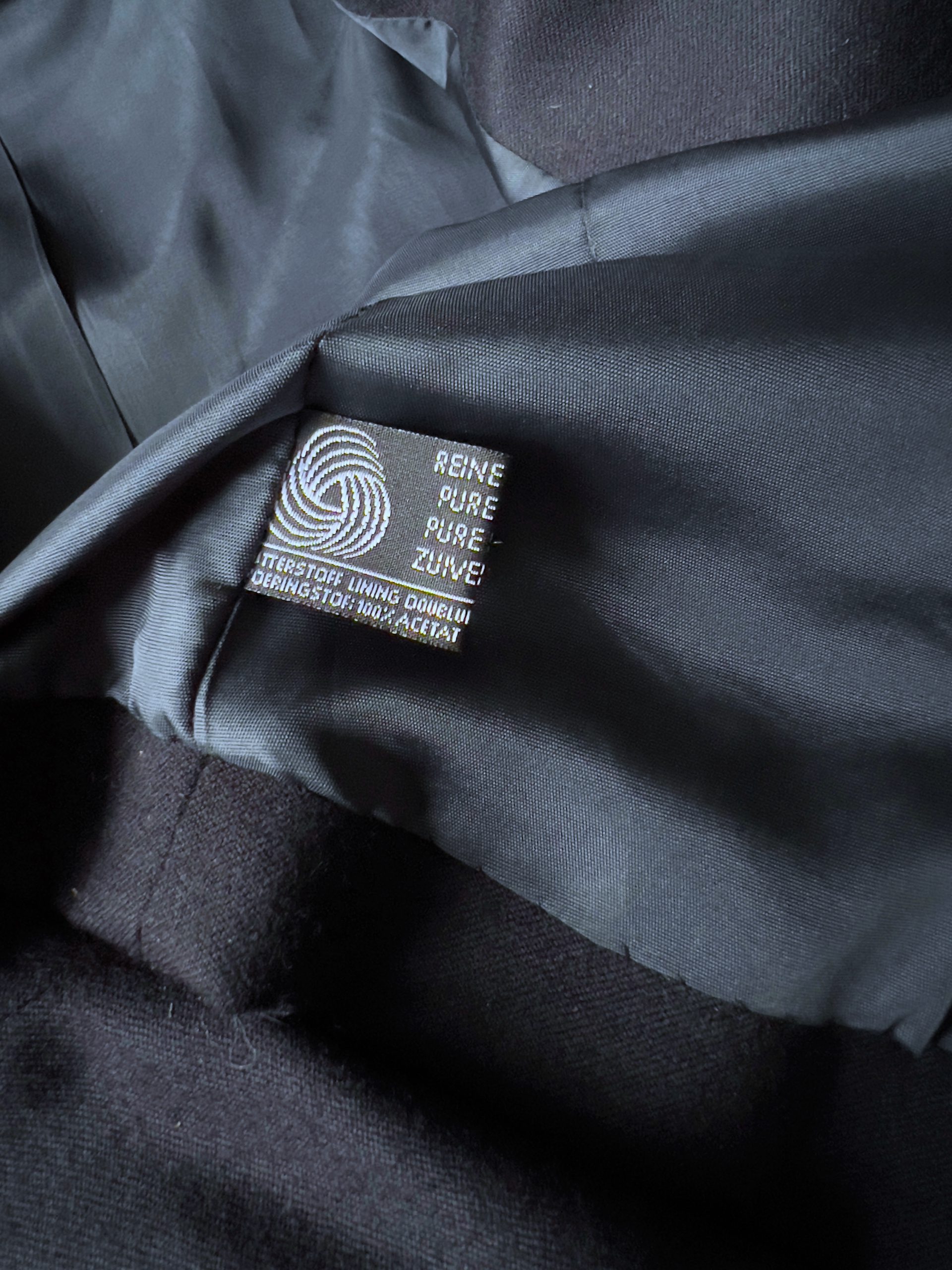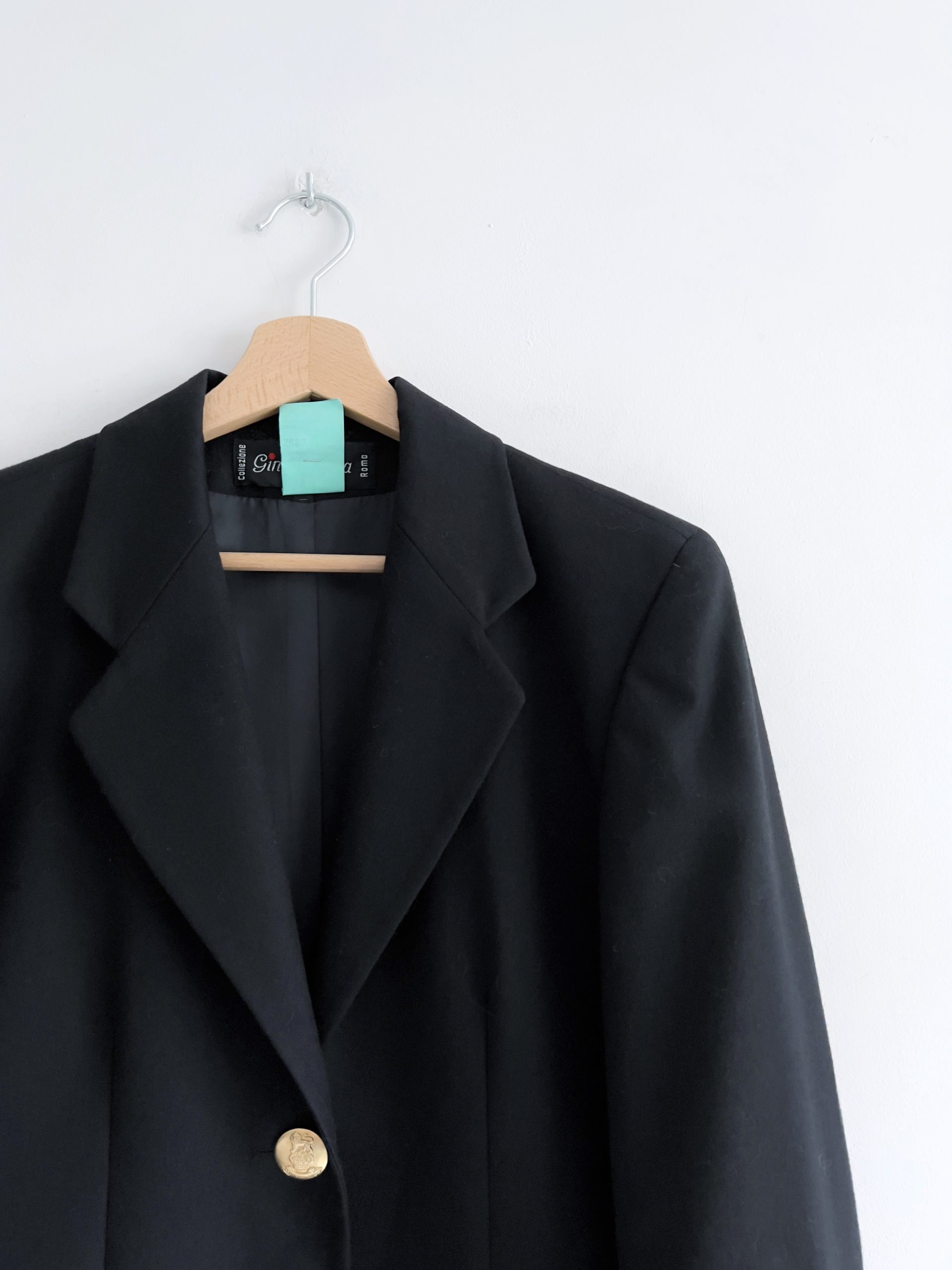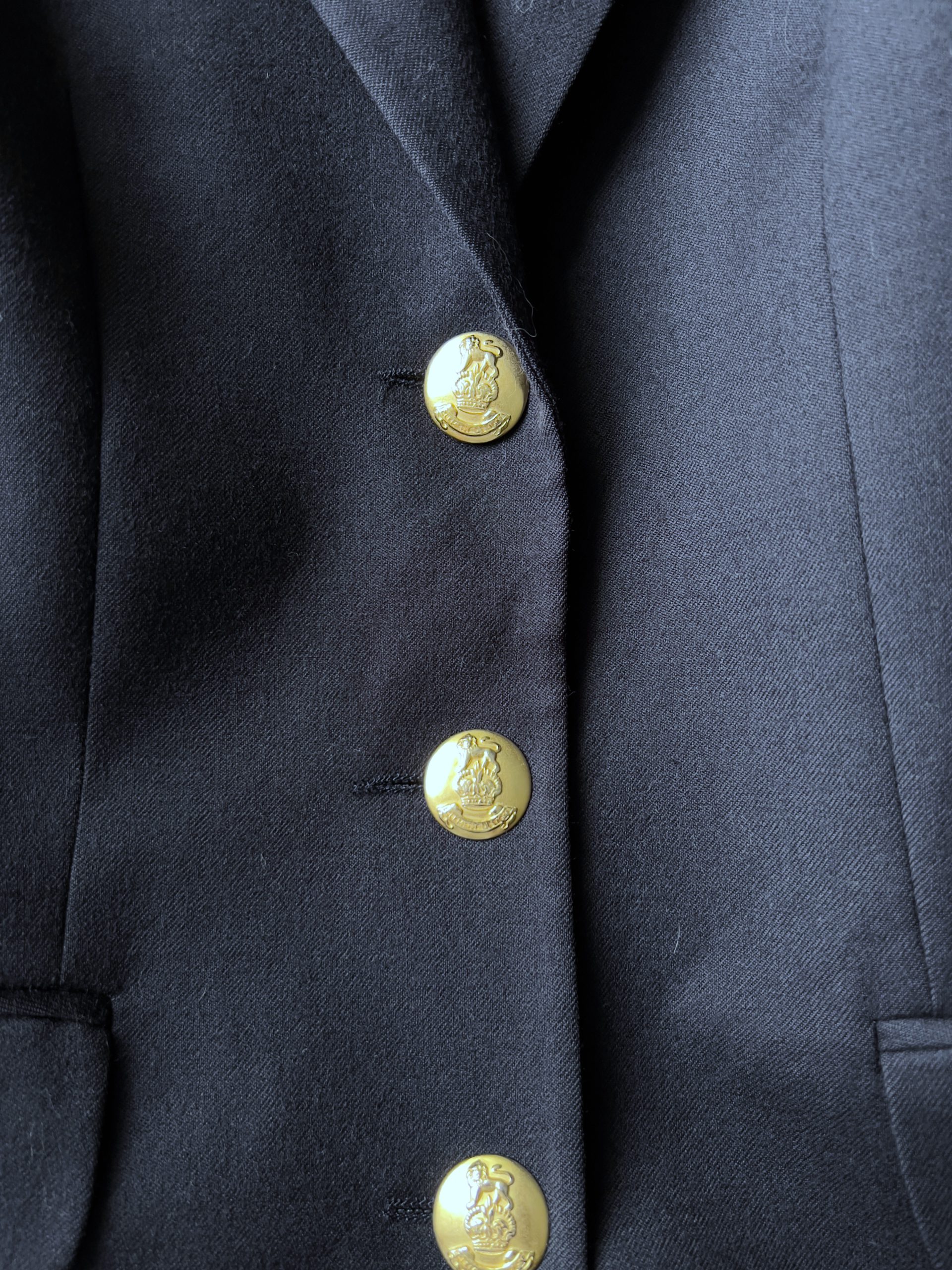 Granatowa marynarka vintage, w 100% wykonana z wełny. Zapinana na piękne metalowe guziki. Rozmiar z metki 36. Idealny stan, po czyszczeniu.