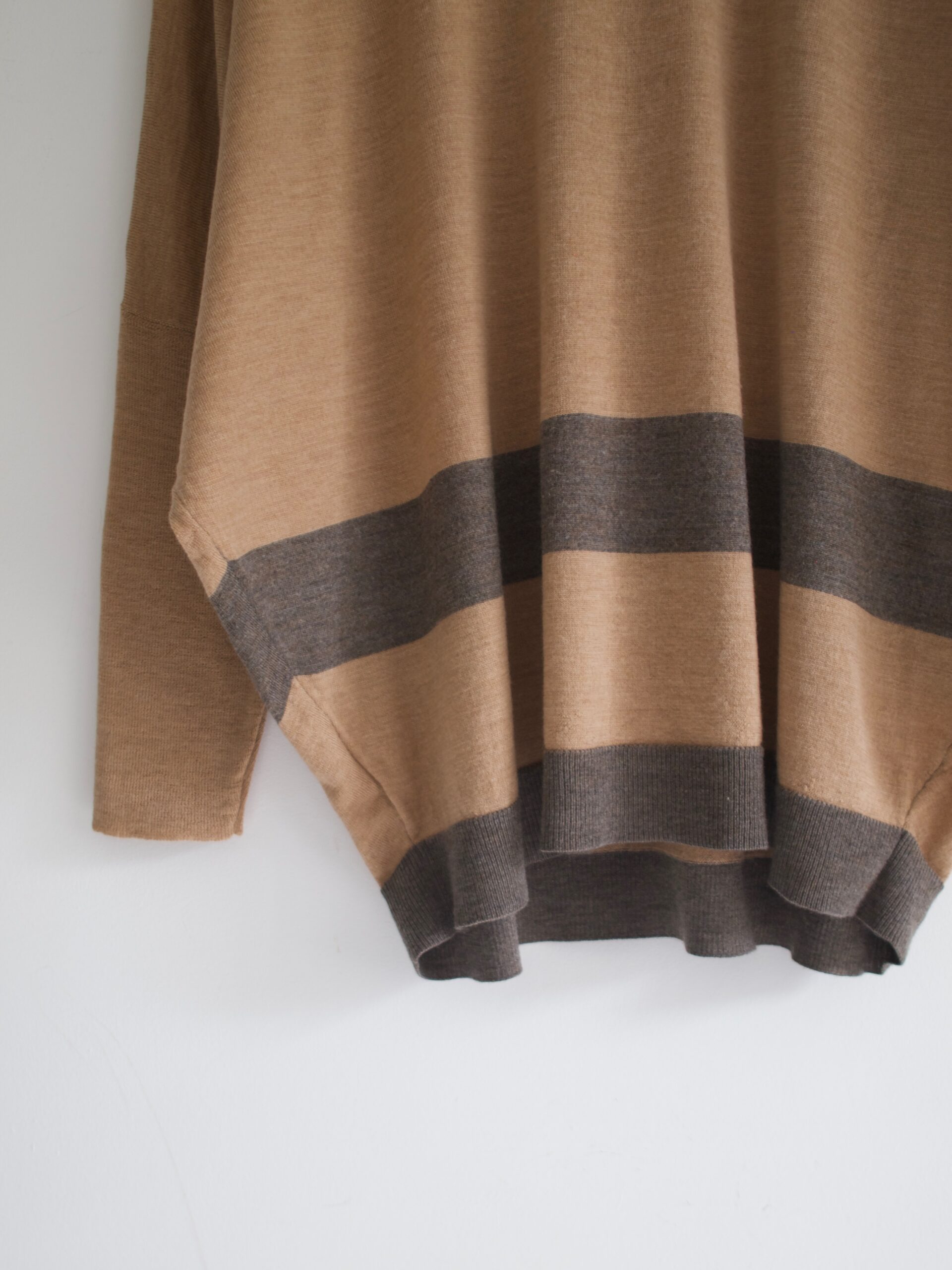 Klasyczny sweter M&S z dekoltem w serek. Skład to 100% kaszmir, bardzo dobry stan, jest minimalnie sfilcowany, nie jest to zauważalne, po prostu jest trochę sztywniejszy.