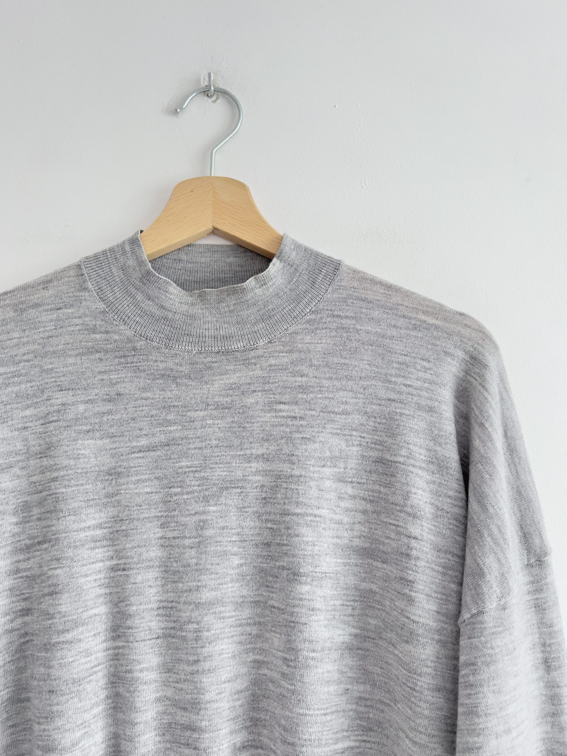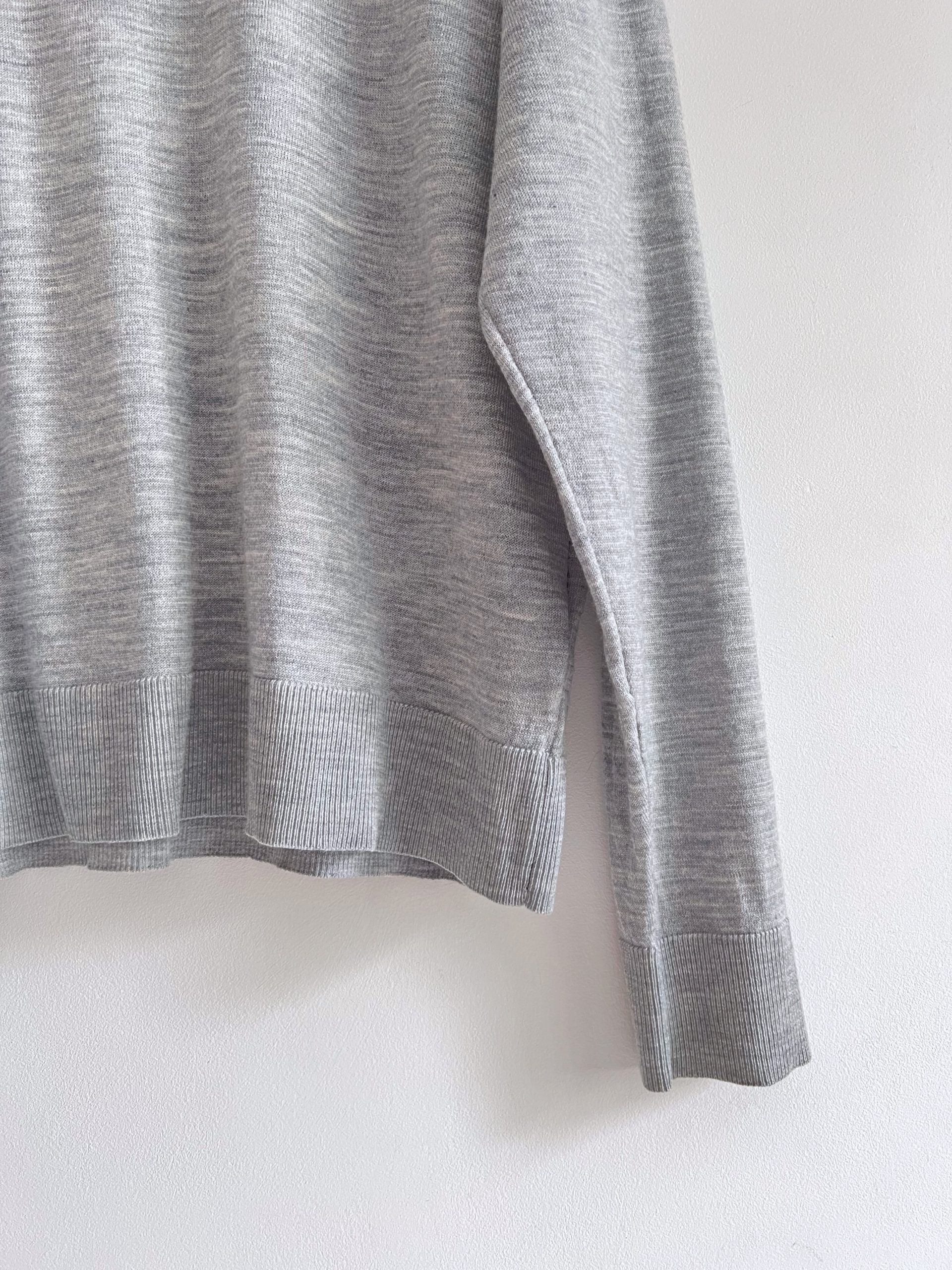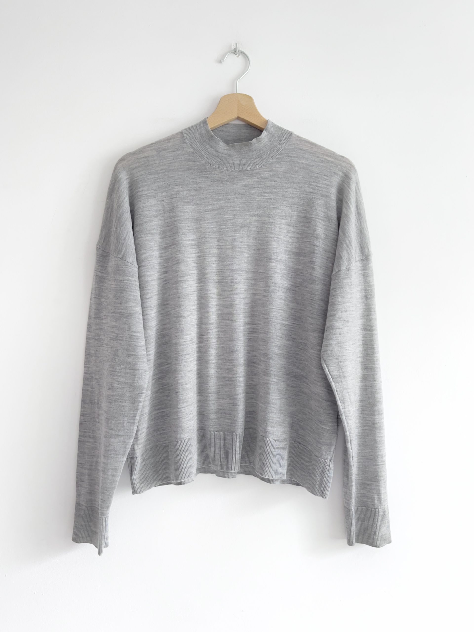 Szary półgolf o pudełkowym kroju. W 100% wykonany z wełny. Rozmiar z metki M, luźny fason, będzie pasować również na L. Bardzo dobry stan.