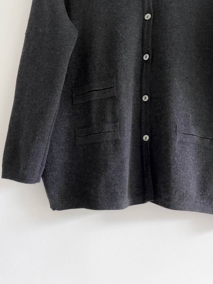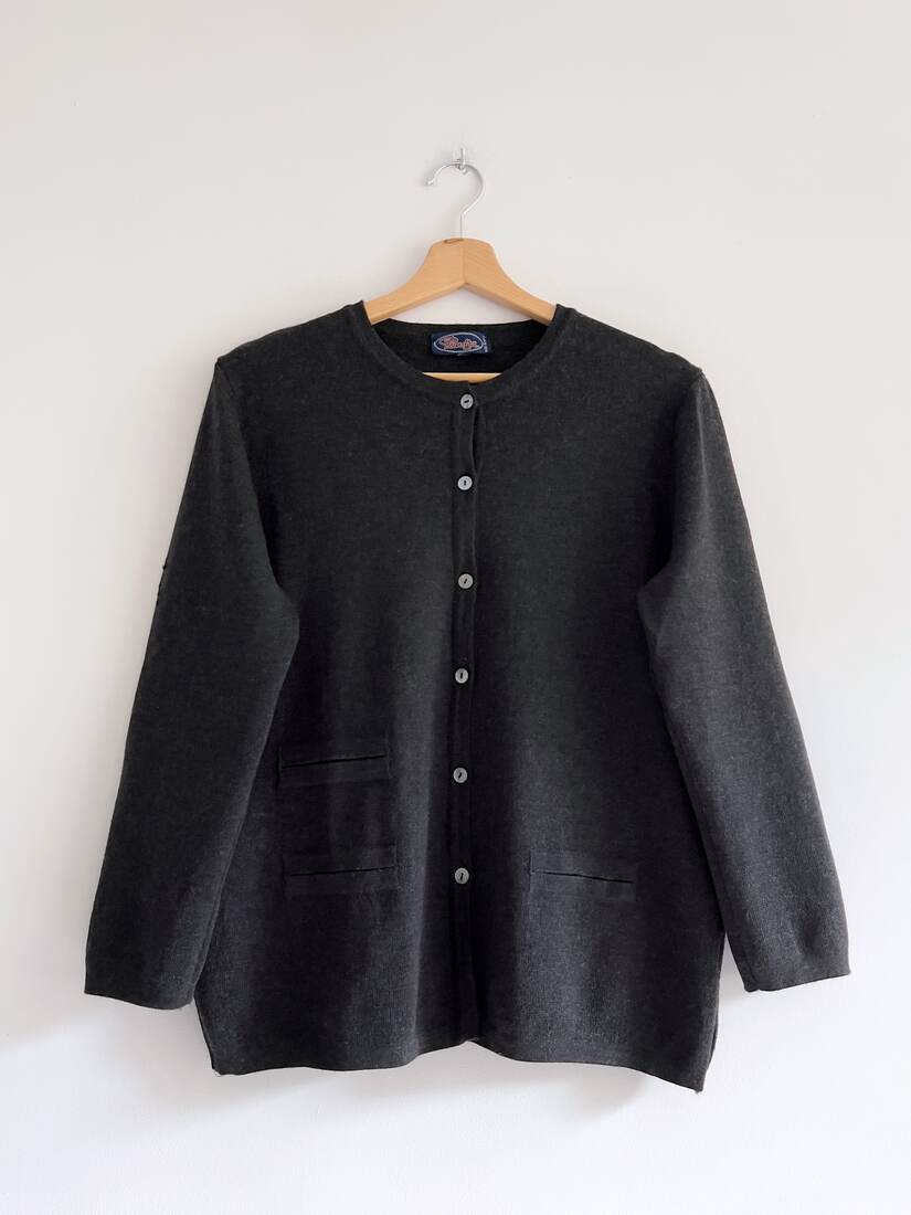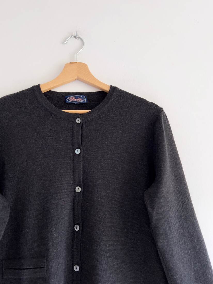 Kardigan o krótszym kroju, idealny do wysokich spodni. Rozmiar z metki M. Sweterek mimo zawartości moheru w składzie nie gryzie, jest mięciutki i miły w dotyku.