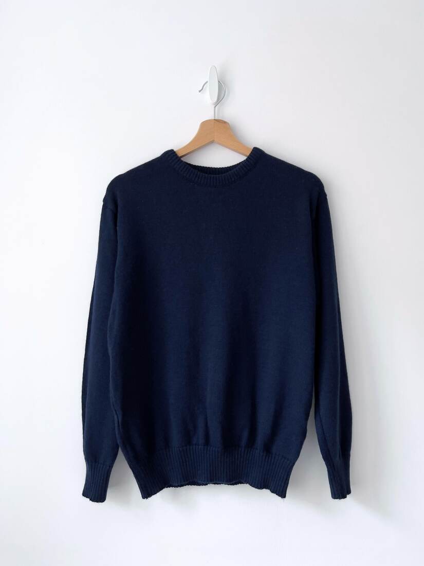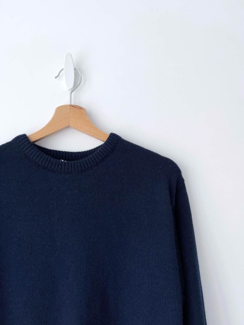 Granatowy sweter w stylu basic. W 100% wykonany z wełny. Rozmiar z metki M, bez wad.