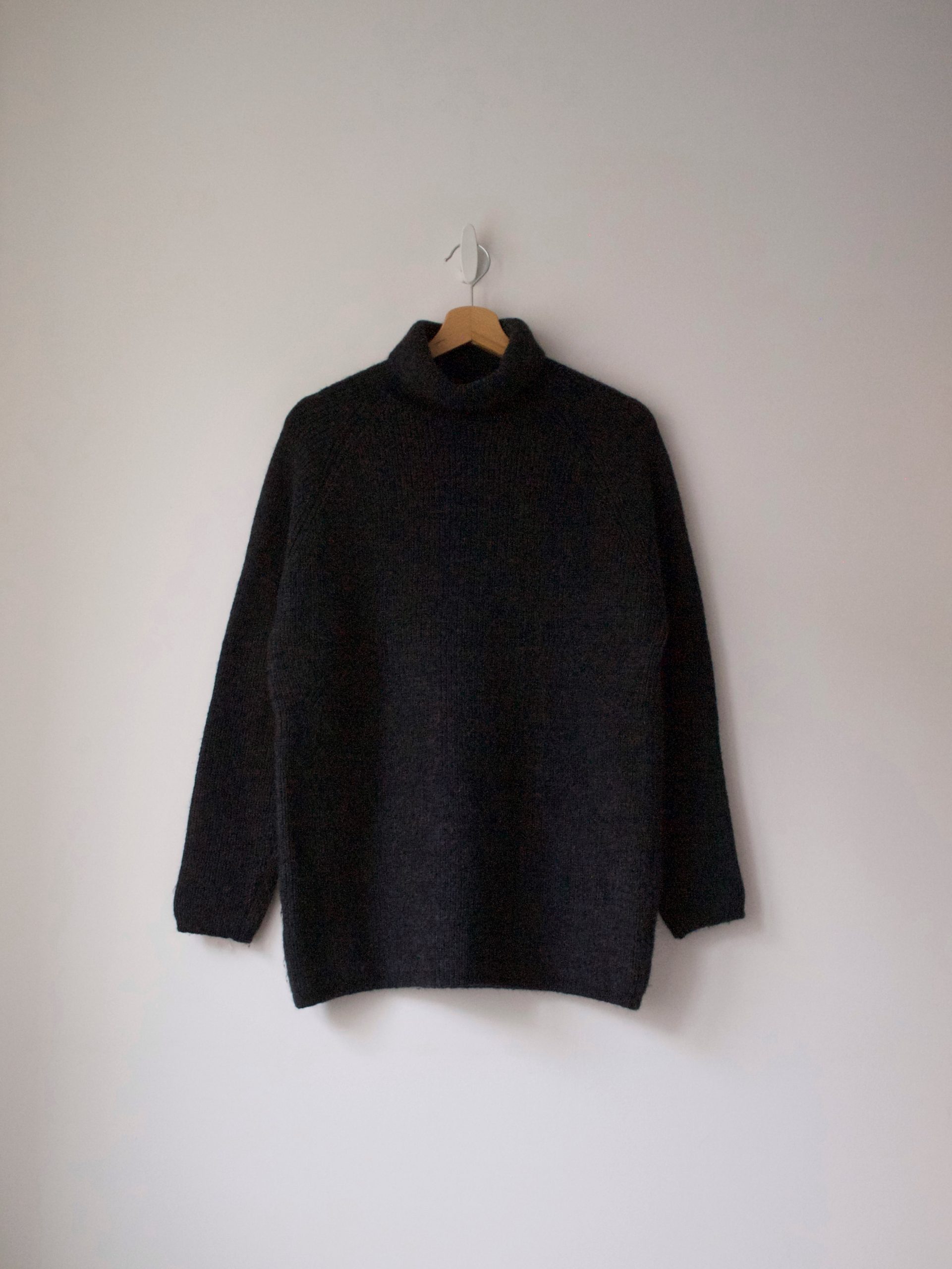 Gruby puszysty golf vintage. Kolor grafitowy. Rozmiar z metki: L Skład: 100% wełna, może gryźć Stan: bez wad Szerokość w klatce 49 cm Długośćcałkowita 69 cm