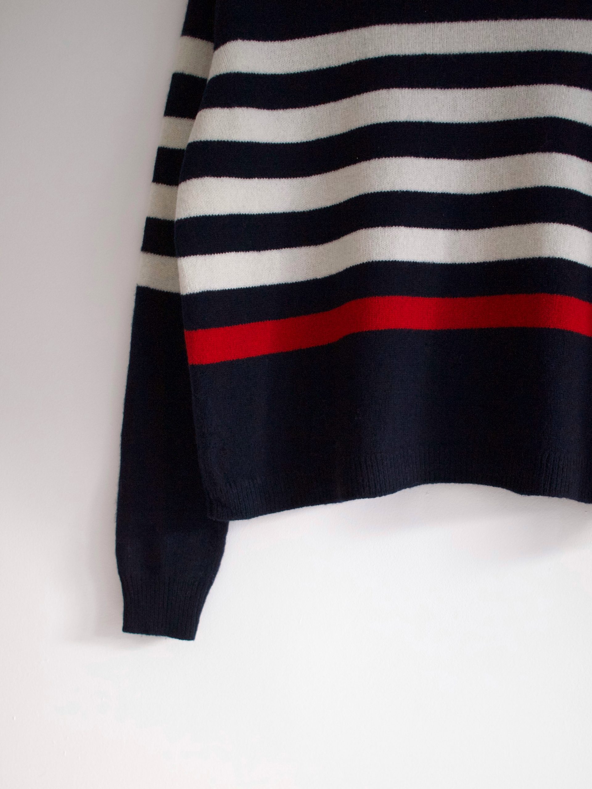 Klasyczny sweter M&S z dekoltem w serek. Skład to 100% kaszmir, bardzo dobry stan, jest minimalnie sfilcowany, nie jest to zauważalne, po prostu jest trochę sztywniejszy.