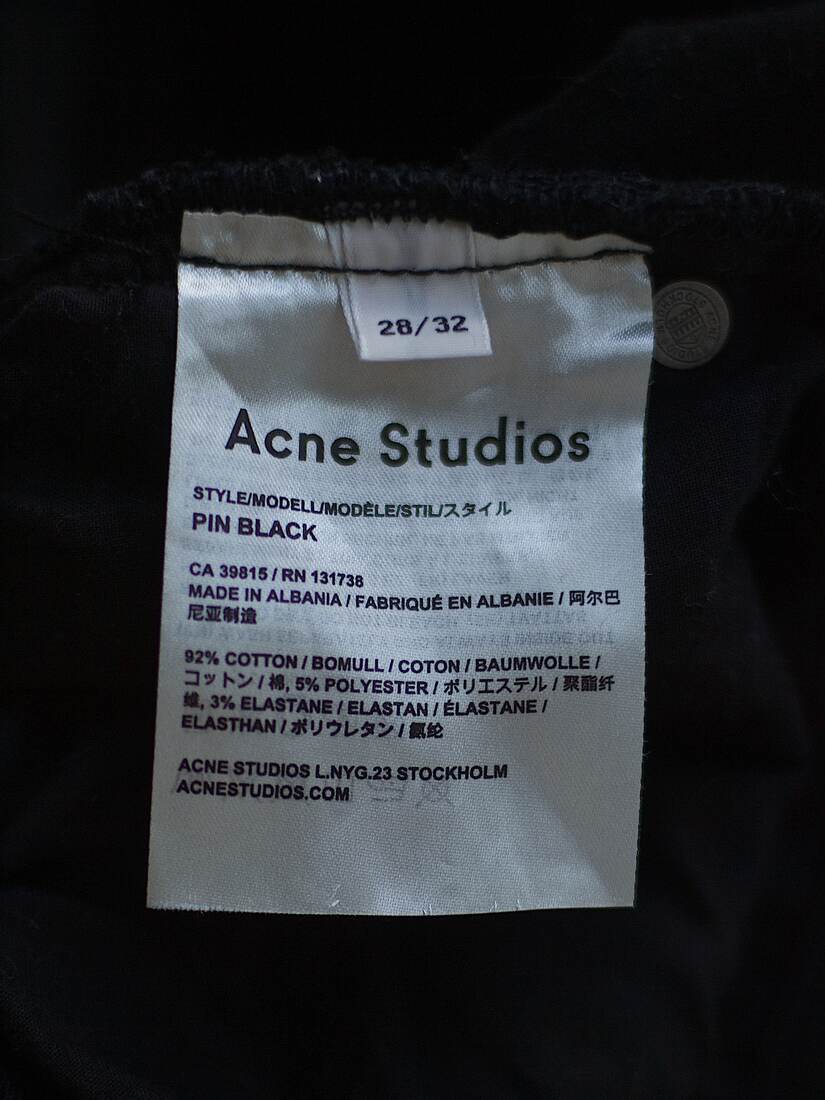 Czarne jeansy rurki renomowanej skandynawskiej marki Acne. Materiał rozciąga się. Rozmiar z metki 28/32, polecam na XS-S, proszę sugerować się wymiarami. Bez wad.