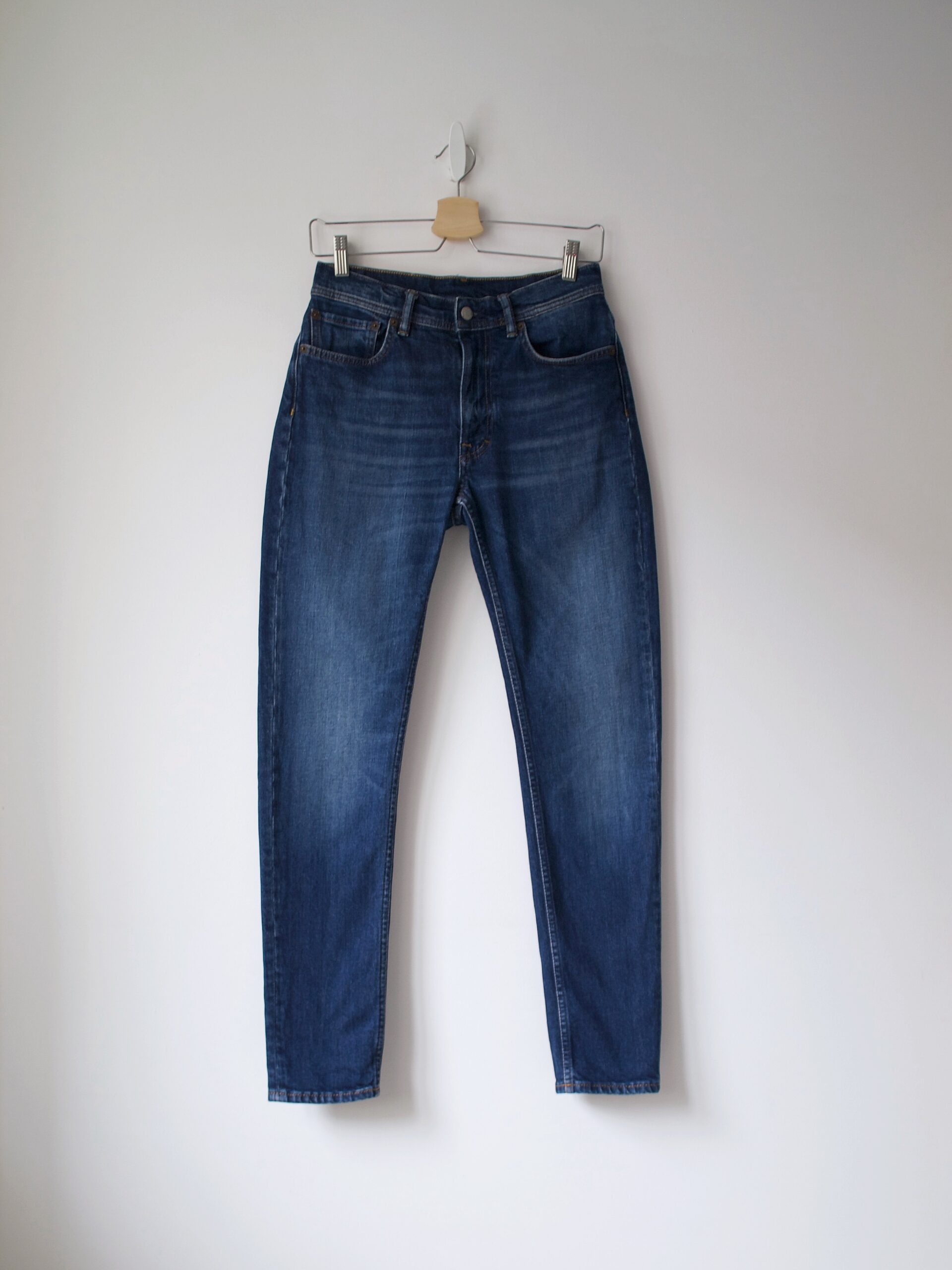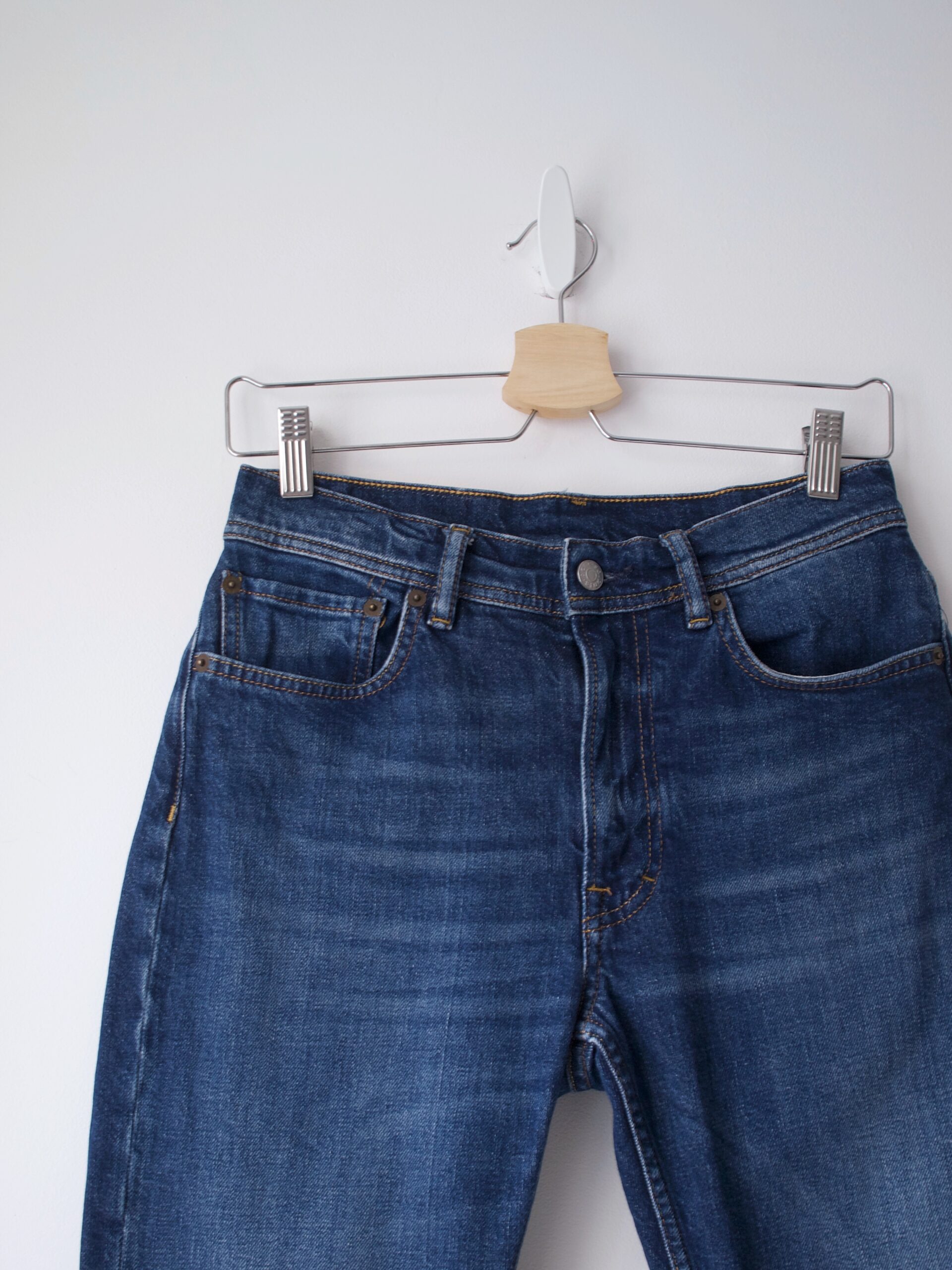 Jeansy vintage o kroju marchewkowym. Wysoki stan, zawężane w talii, wykonane z grubej bawełny. Polecam na XS-S, wymiary poniżej. Bez wad.