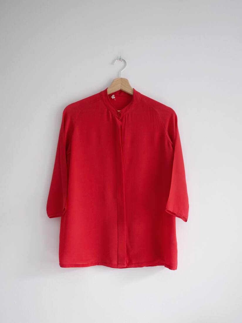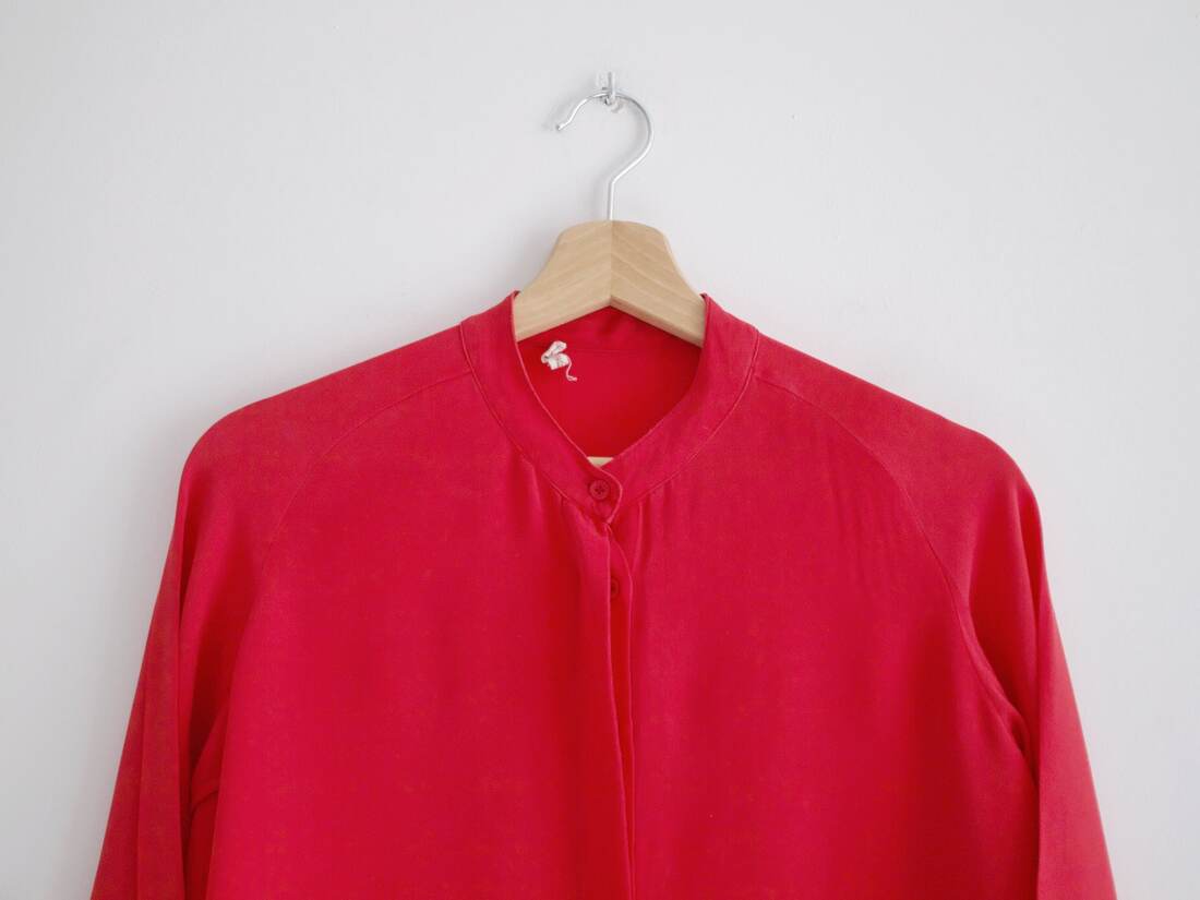 Jedwabna koszula renomowanej marki American Vintage. W niektórych miejscach są delikatne zmechacenia materiału, pokazane na zdjęciu. Poza tym bez wad. Rozmiar z metki S.