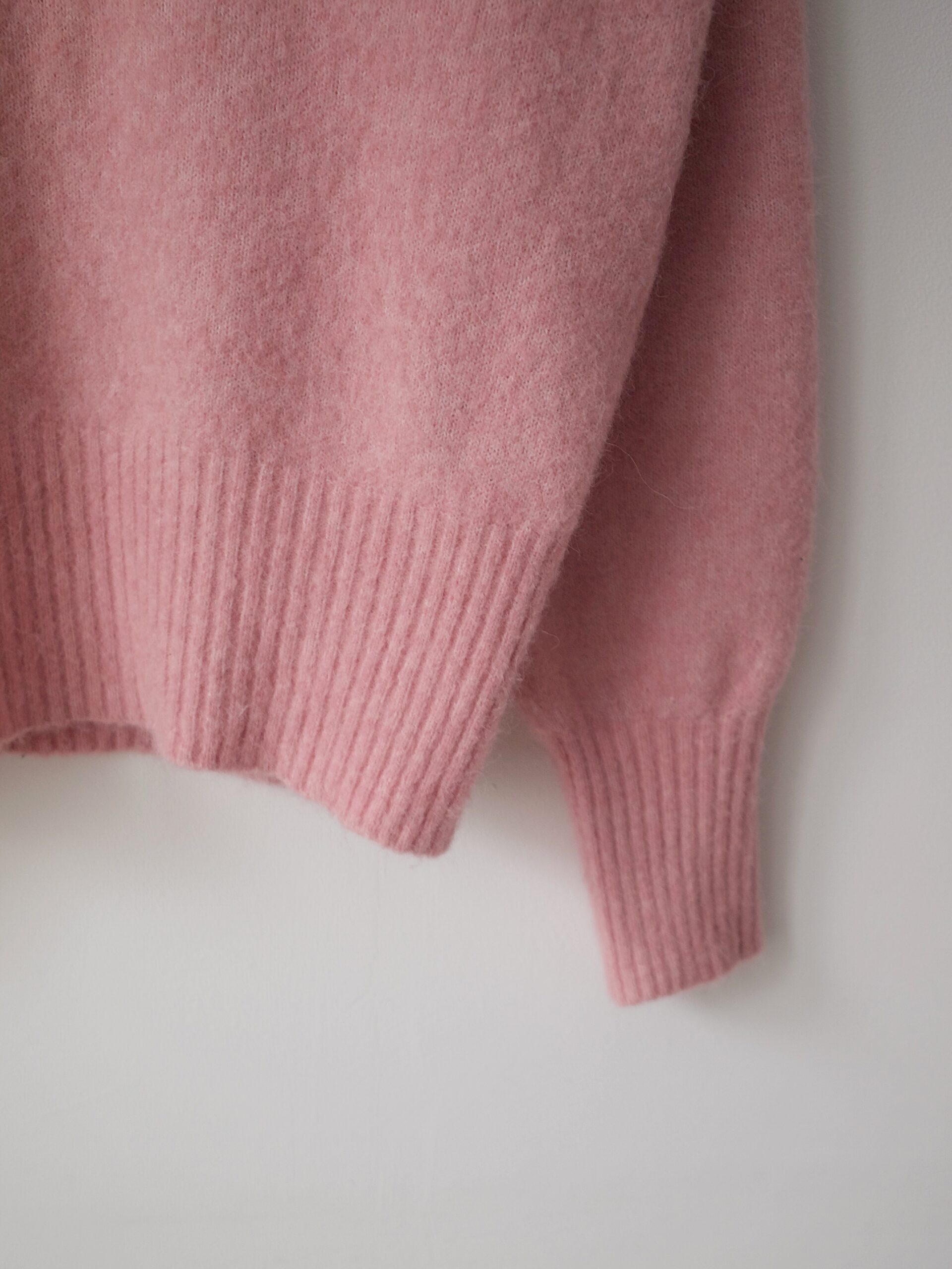 Klasyczny sweter M&S z dekoltem w serek. Skład to 100% kaszmir, bardzo dobry stan, jest minimalnie sfilcowany, nie jest to zauważalne, po prostu jest trochę sztywniejszy.