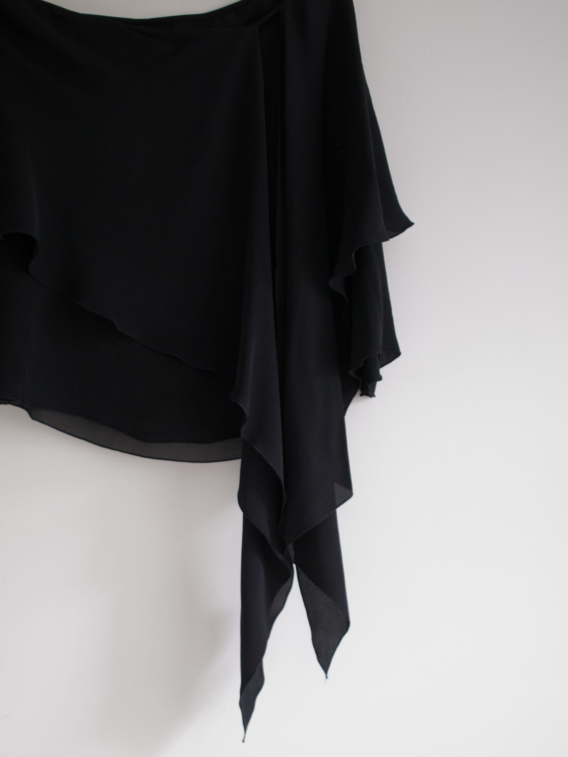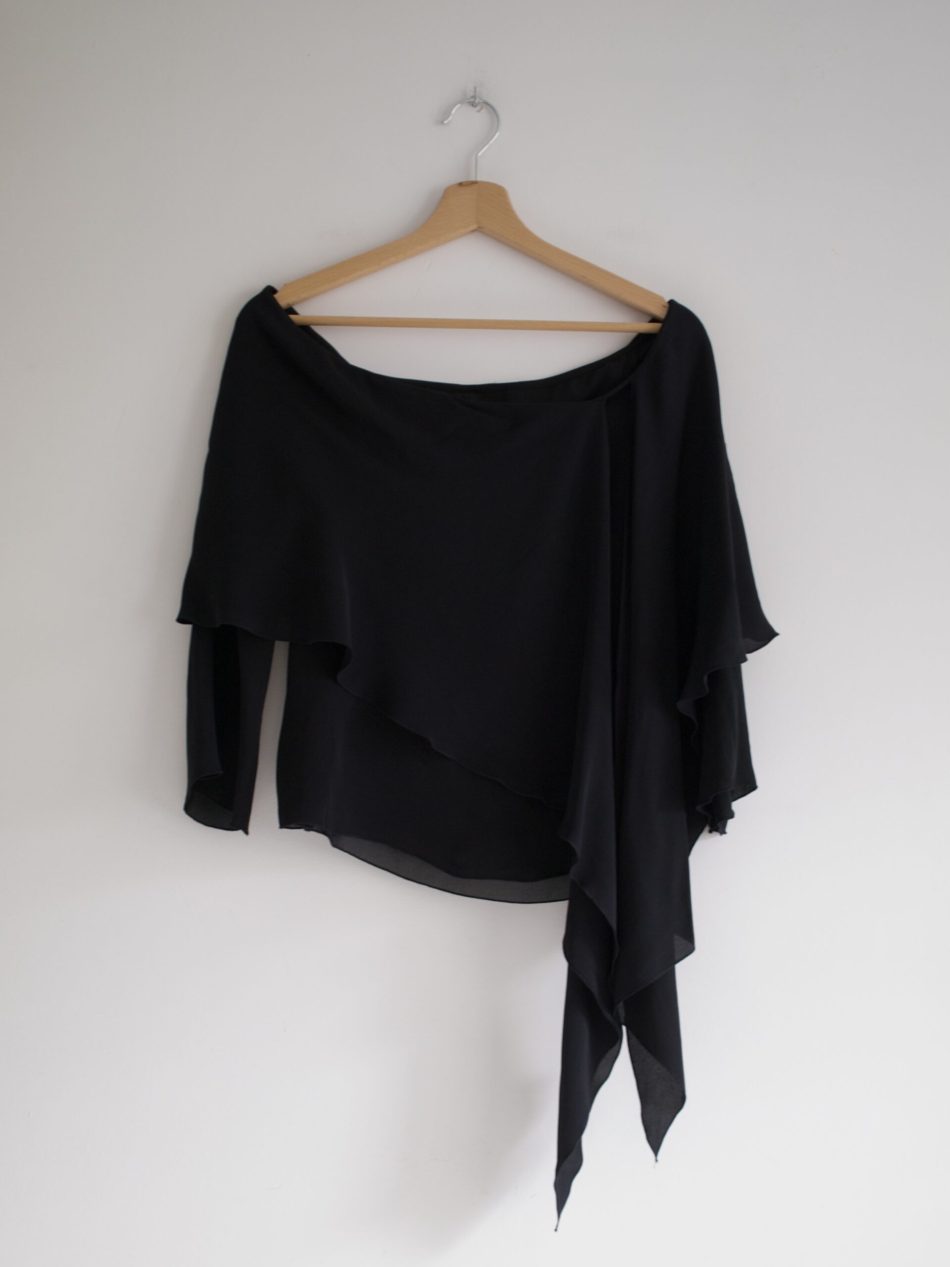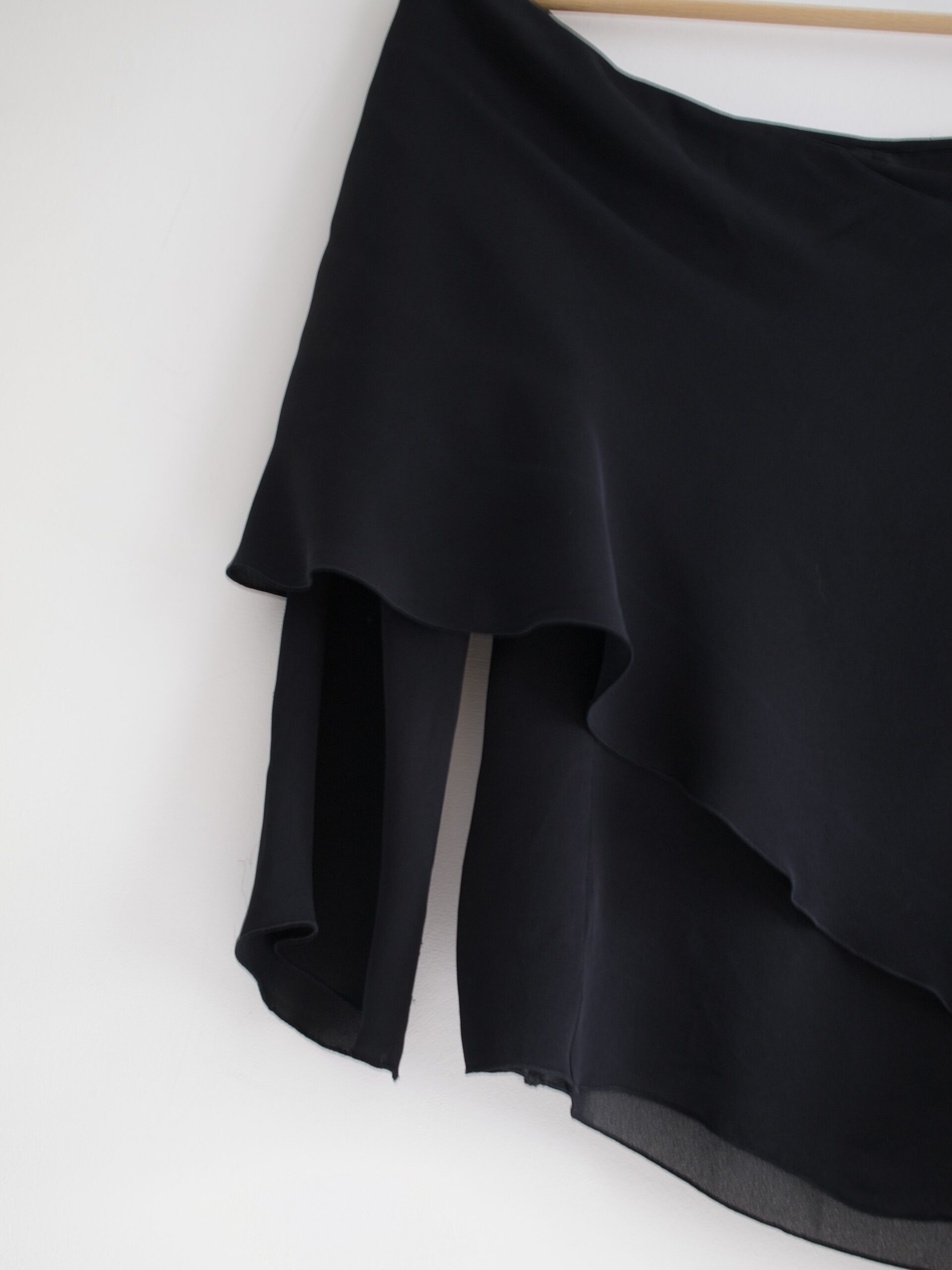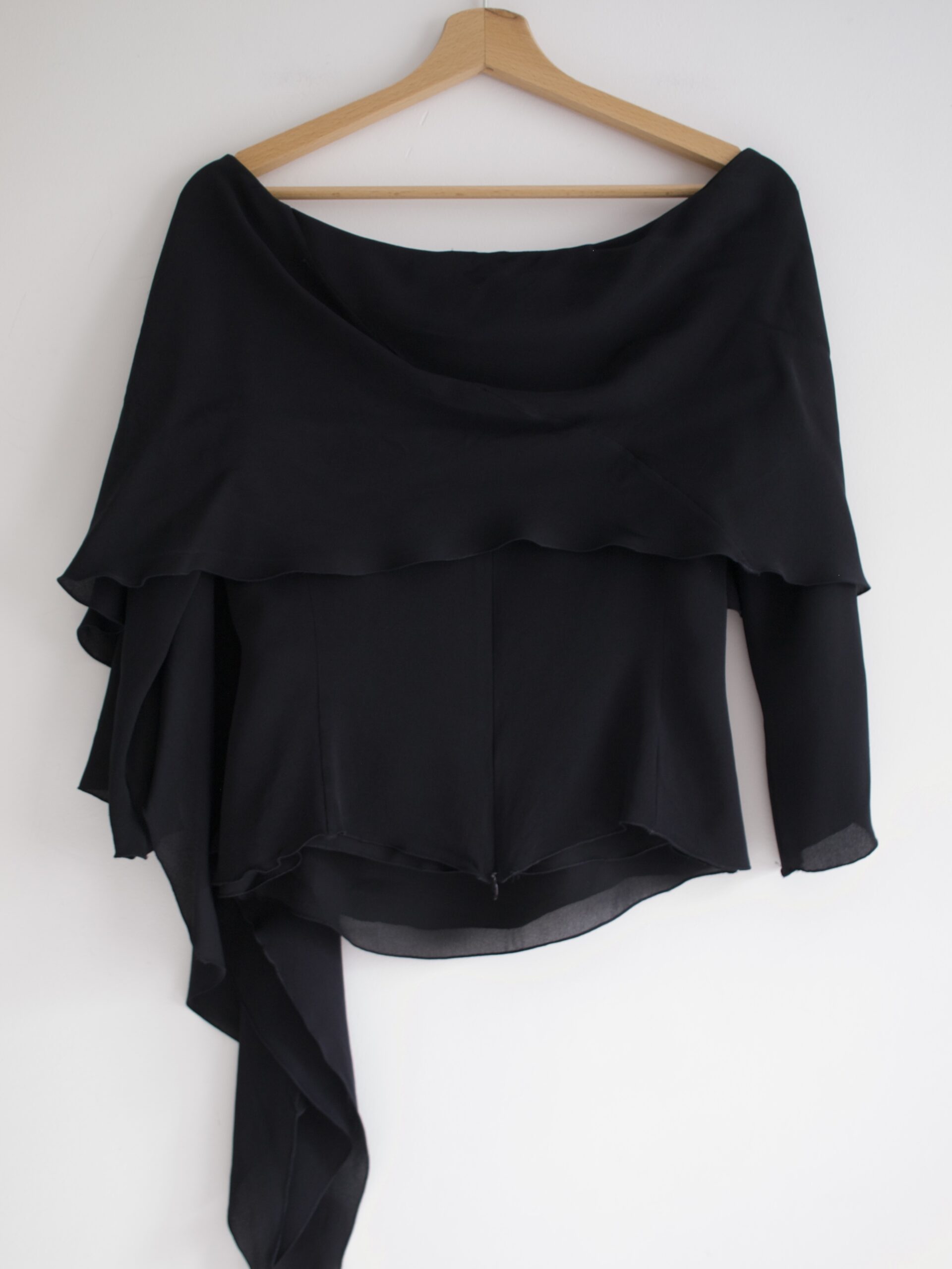 Bluzka vintage domu mody Armani o ciekawym fasonie. Odkryte ramiona, z tyłu zapinana na zamek.
