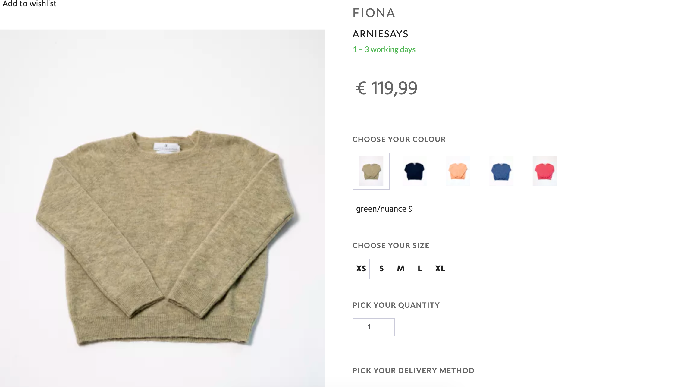 Puszysty sweter luksusowej norweskiej marki Arnie Says. Model Fiona, dostępny na stronie marki w cenie 119 euro, czyli ponad 500 zł