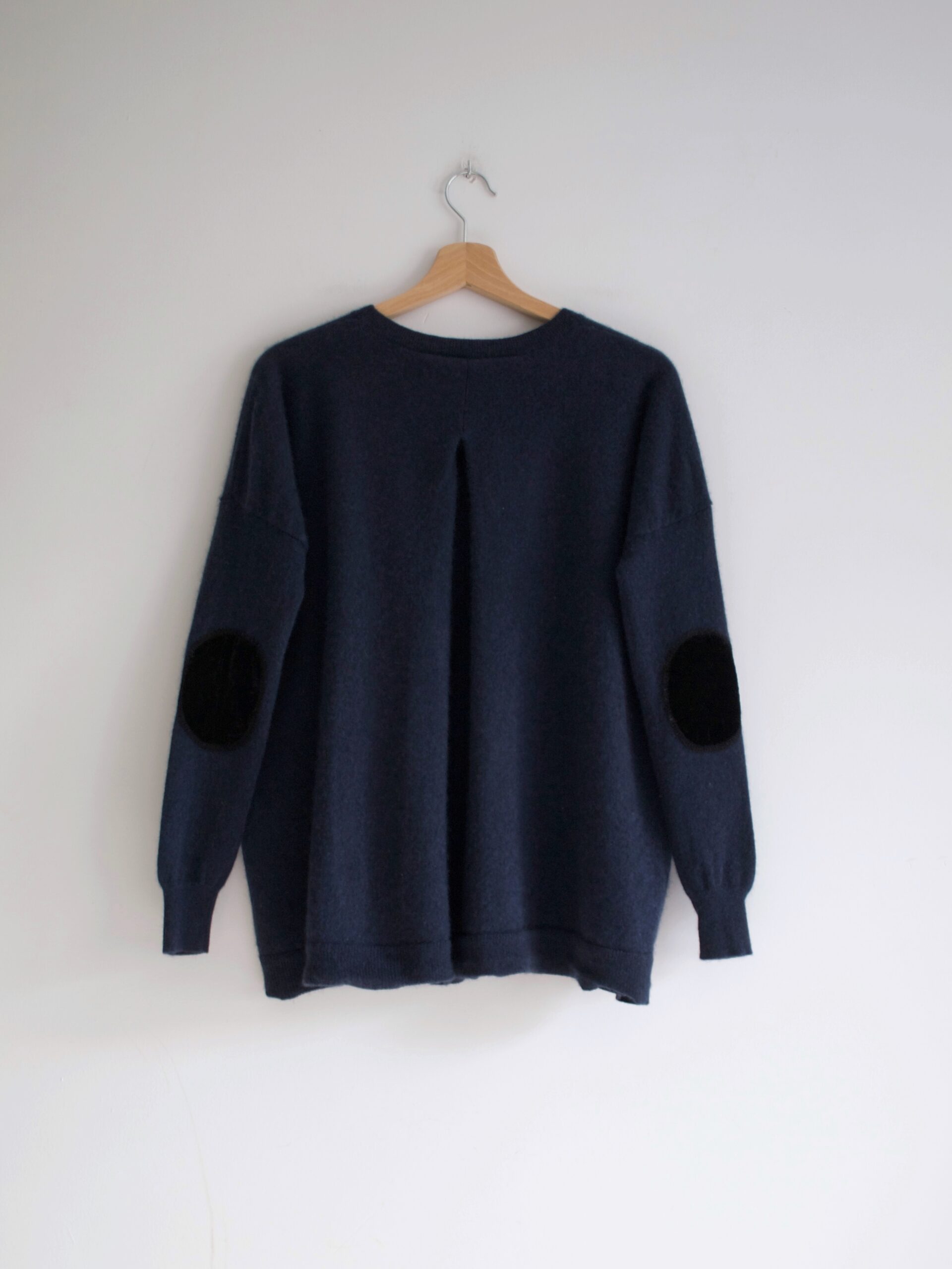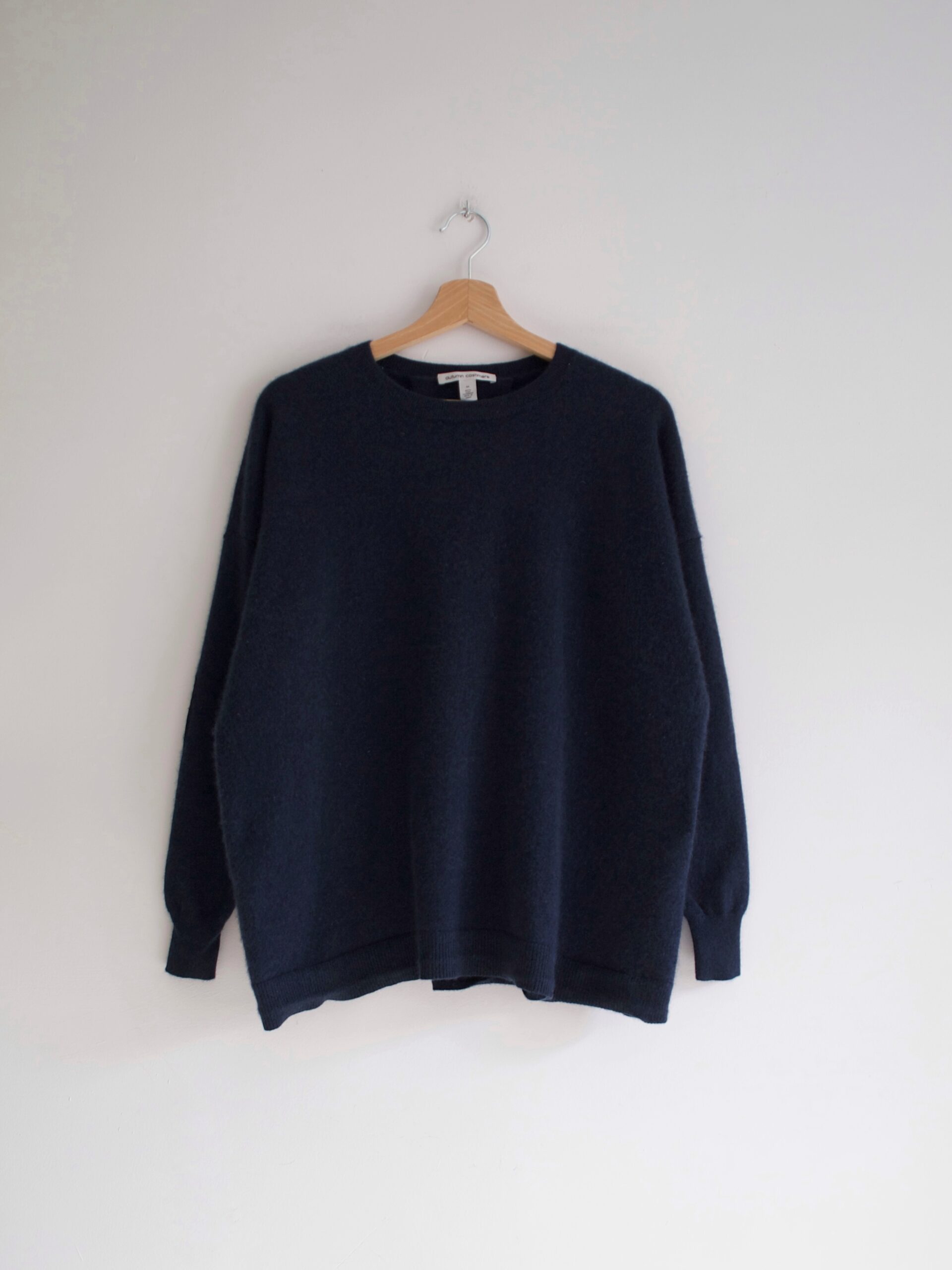 Bardzo puszysty kaszmirowy sweter, ekskluzywna marka Autumn Cashmere. Na łokciach ma aksamitne łatki (fabryczne).