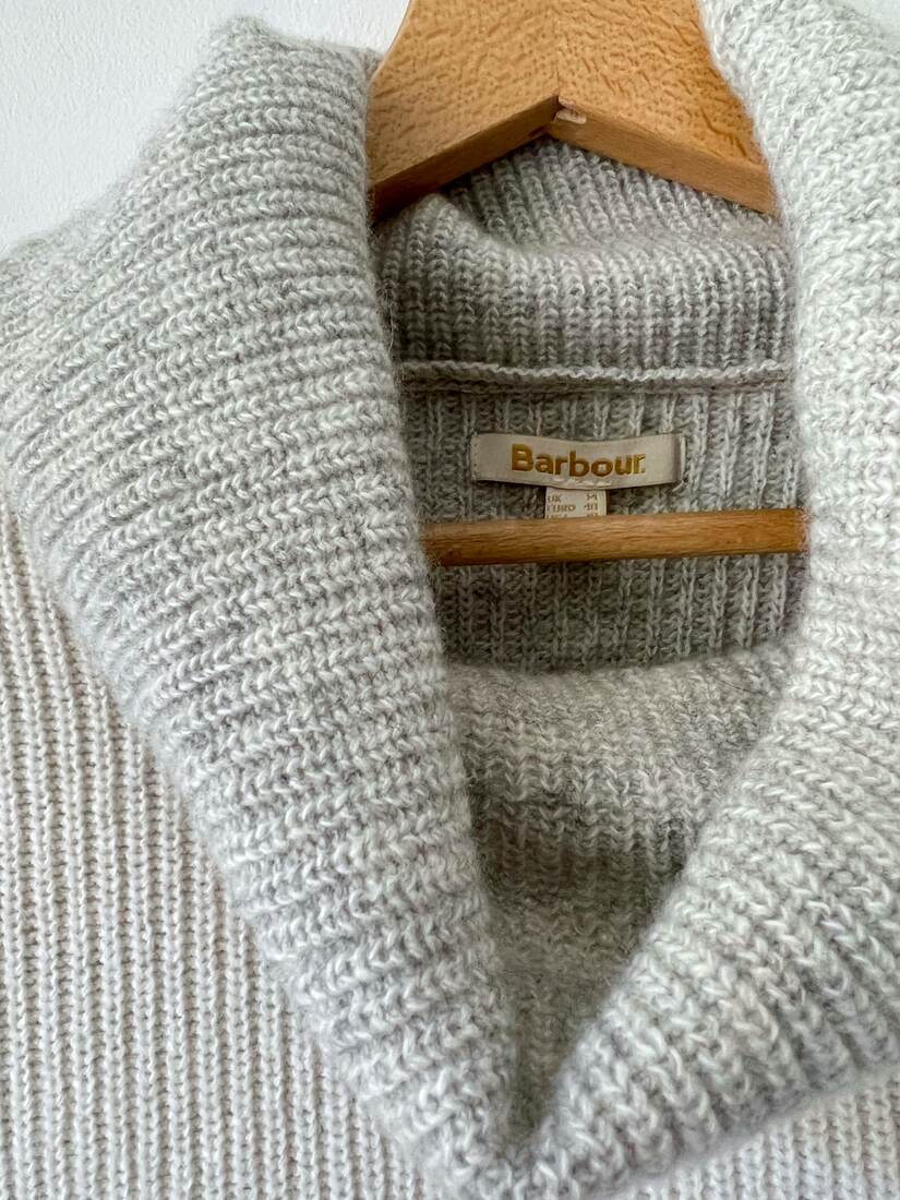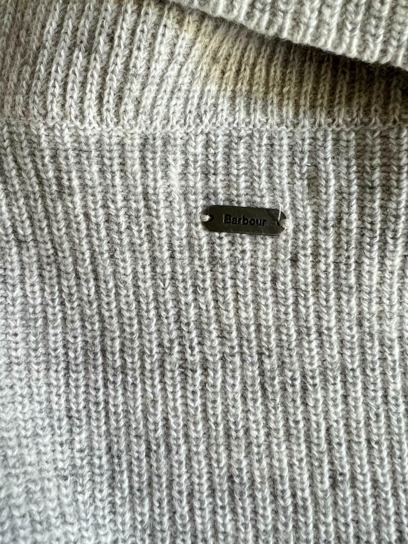 Sweter luksusowej brytyjskiej marki Barbour. Wykonany z mieszanki wełny oraz bawełny. Rozmiar z metki 40, bez wad. Skład: 55% wełna, 45% bawełna.
