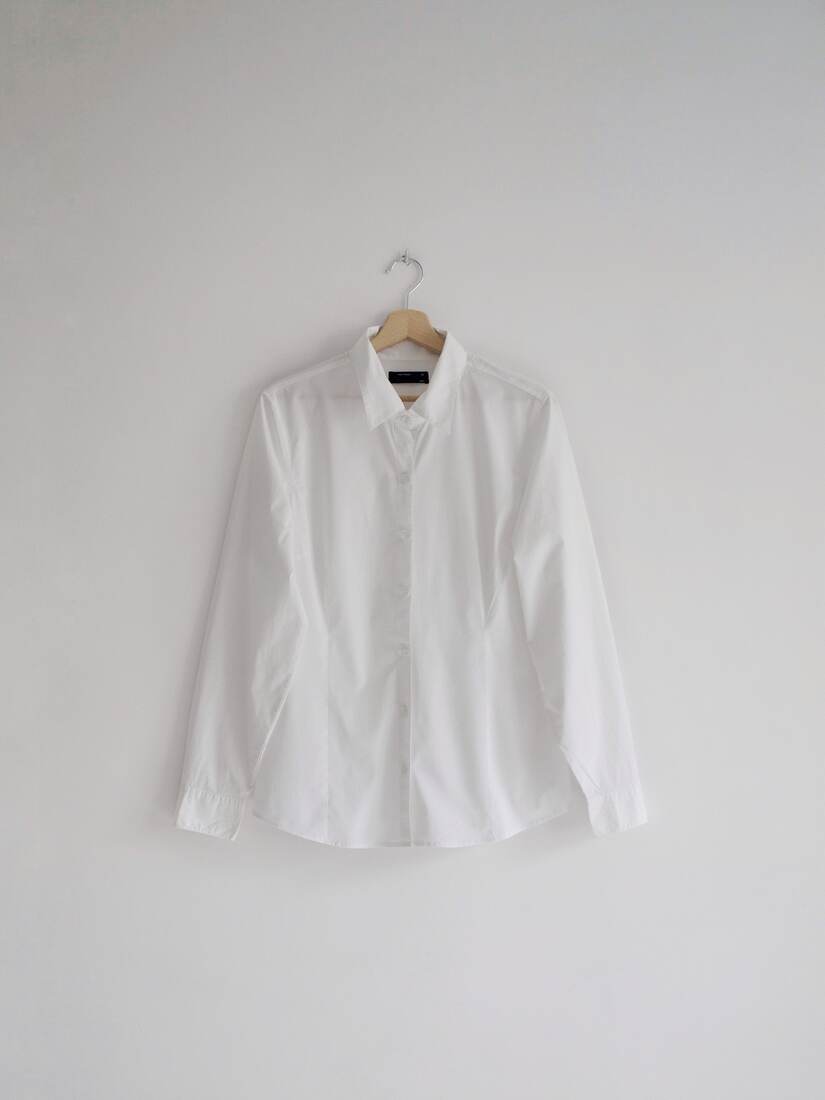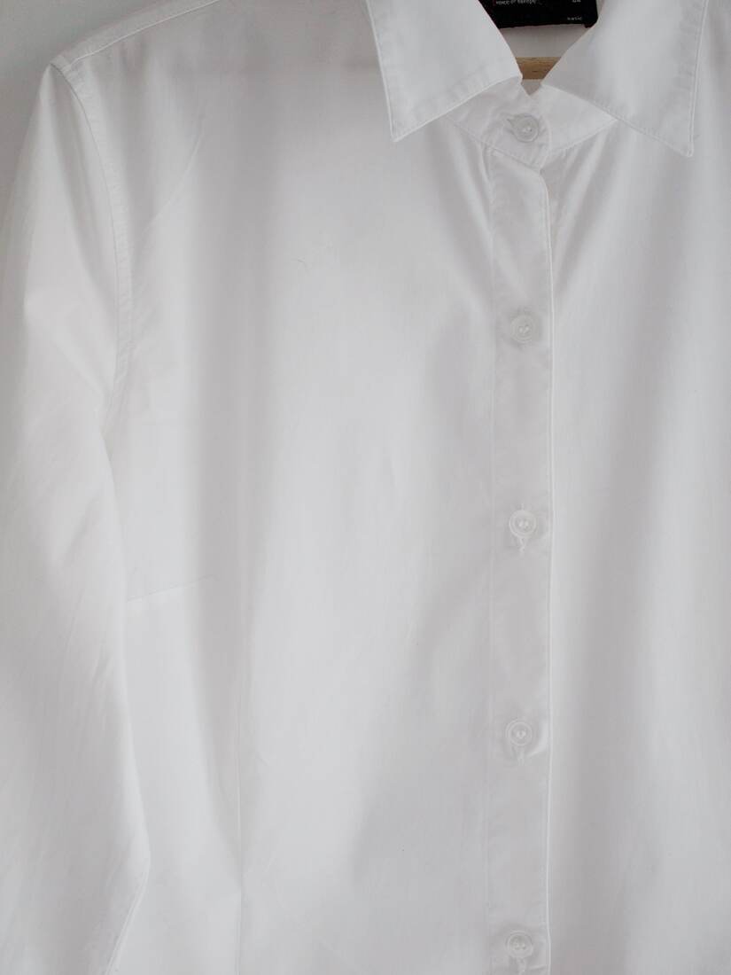 Koszula w stylu basic, wykonana z szeleszczącej bawełnianej tkaniny. Rozmiar z metki 44, poleca, na M-L. Bez wad.