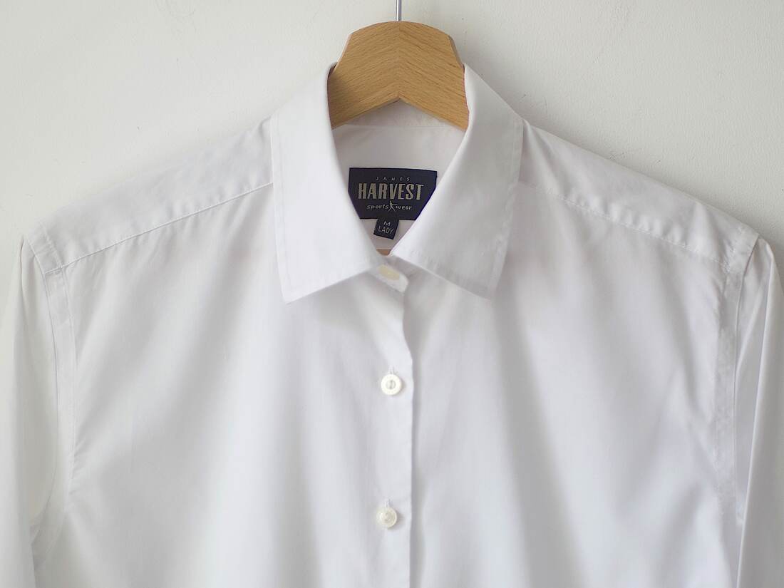 Minimalistyczna bawełniana koszula amerykańskiej marki James Harvest. Prosty, nietaliowany krój, basic w każdej szafie. Rozmiar z metki M, idealny stan.