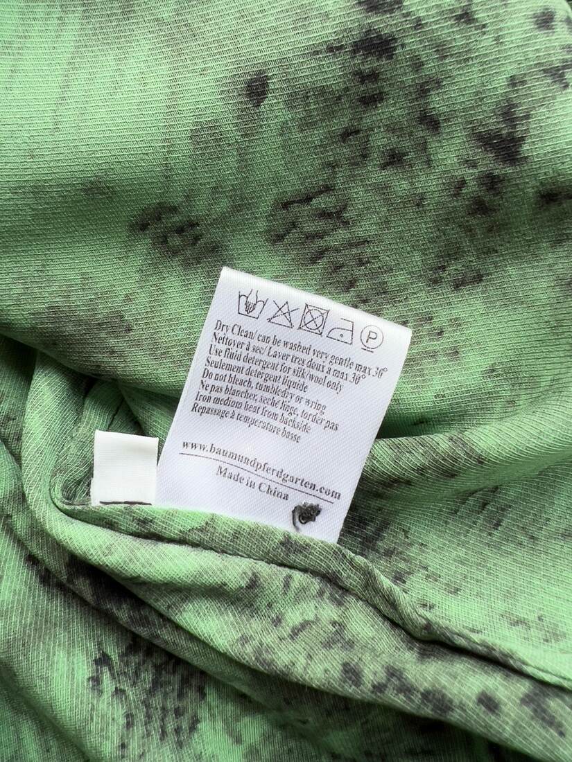 Sukienka ekskluzywnej duńskiej marki Baum und Pferdgarten. Wykonana z jedwabiu z dodatkiem elastanu, bez podszewki. Rozmiar z metki 40, bez wad.