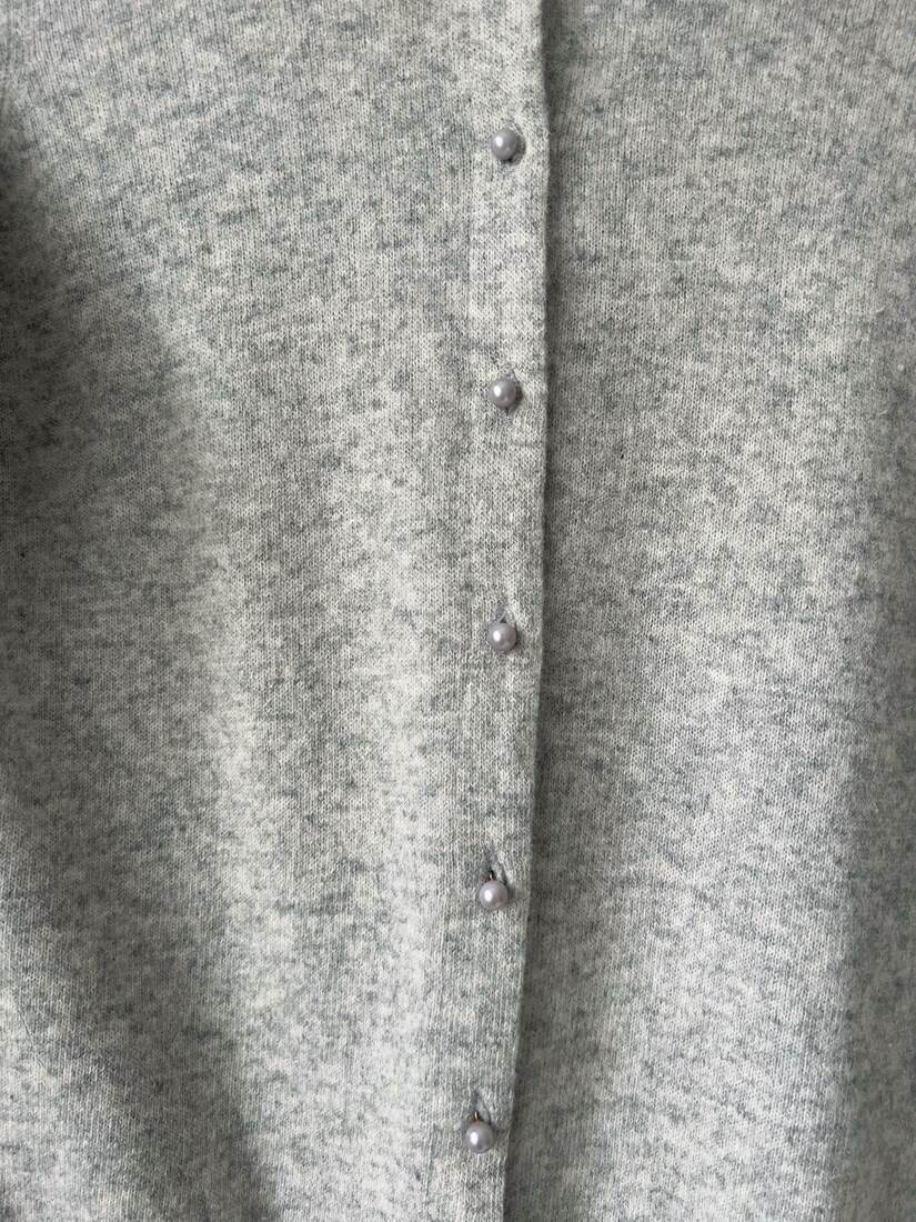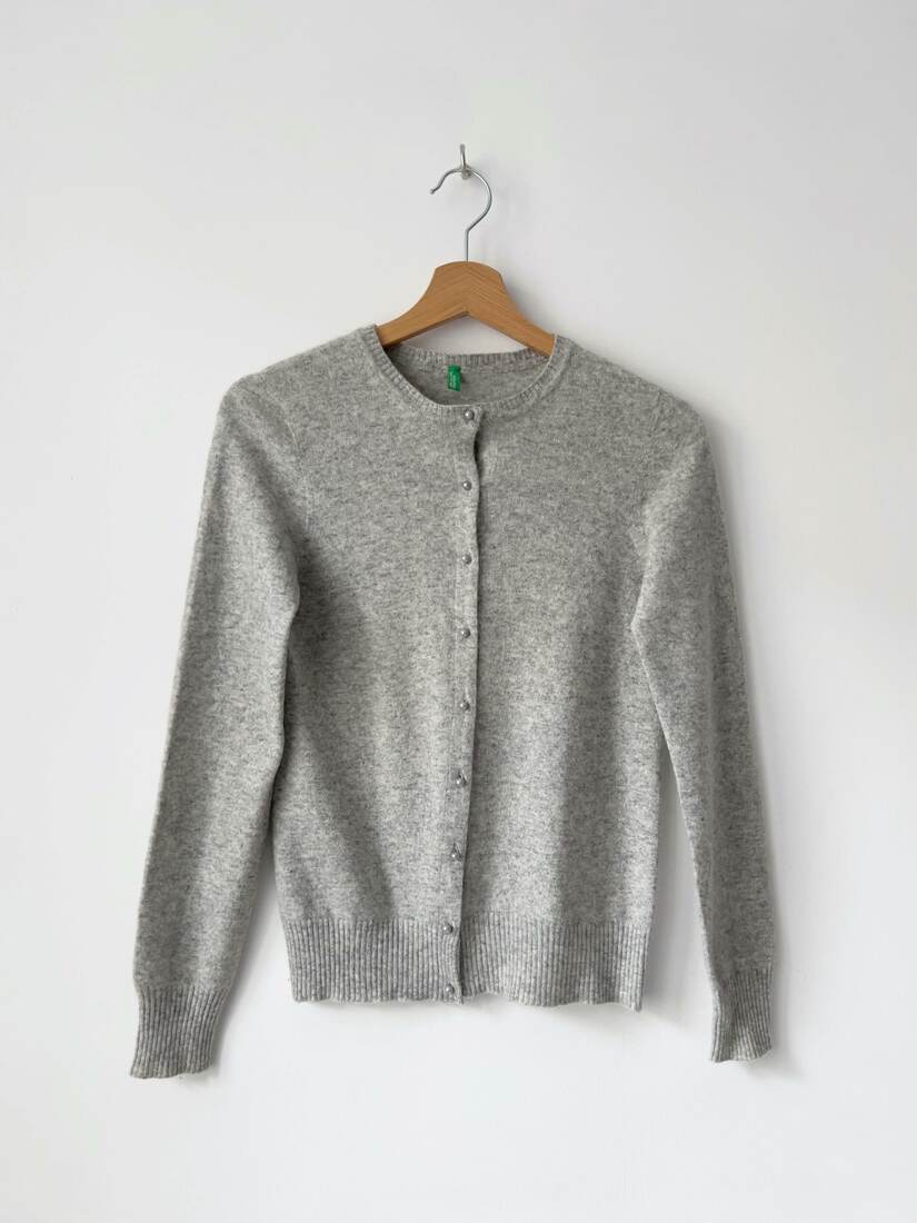 Sweter marki Benetton. Zapinany na guziki w formie perełek. Brak metki ze składem, prawdopodobnie wełna/angora/poliamid. Polecam na XS. Bardzo dobry stan.