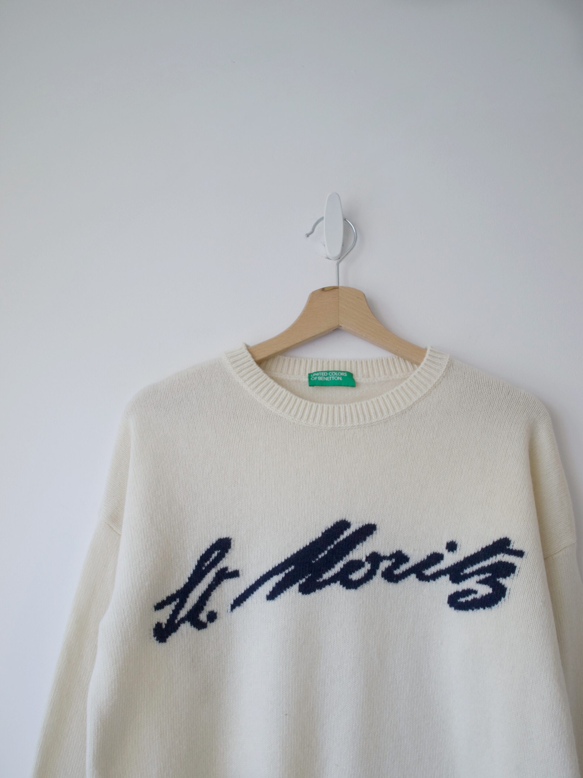 Sweter marki Benetton, z logiem szwajcarskiego ośrodku narciarskiego Sankt Moritz.