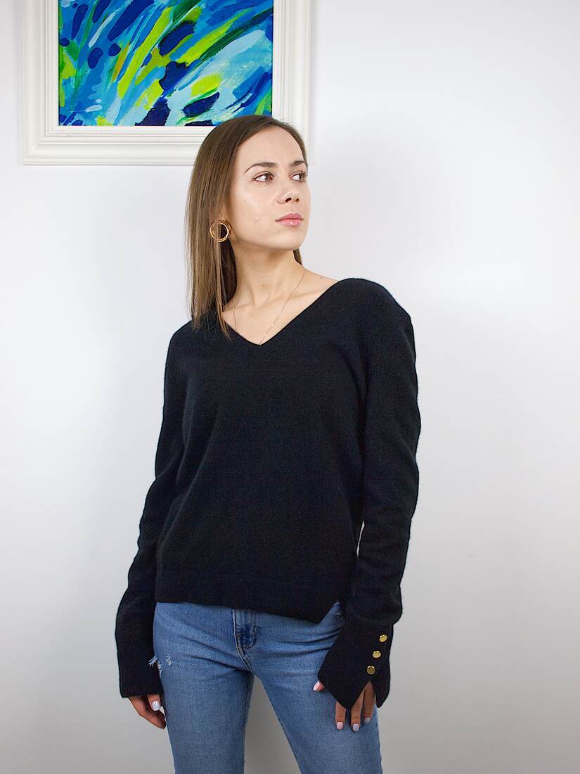 Mięciutki sweter marki Benetton wykonany z wełny merino z dodatkim kaszmiru. Rozmiar z metki M, będzie pasować także na XS-S. Bardzo puszysty i miły w dotyku. Bez wad.