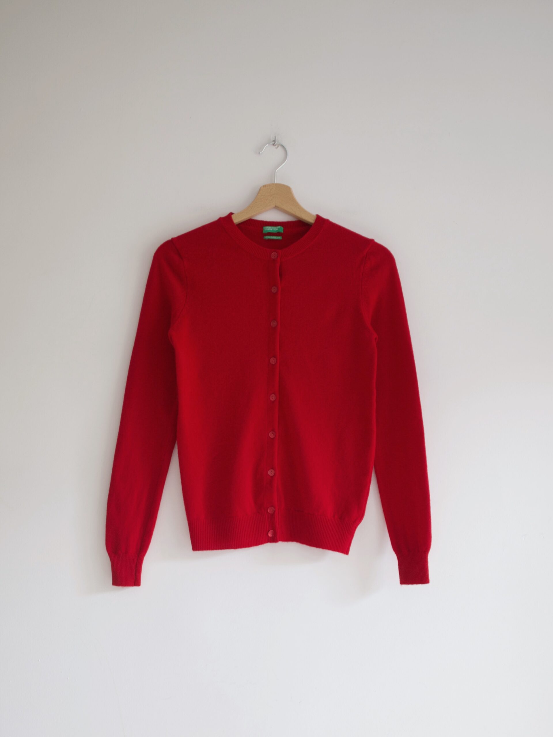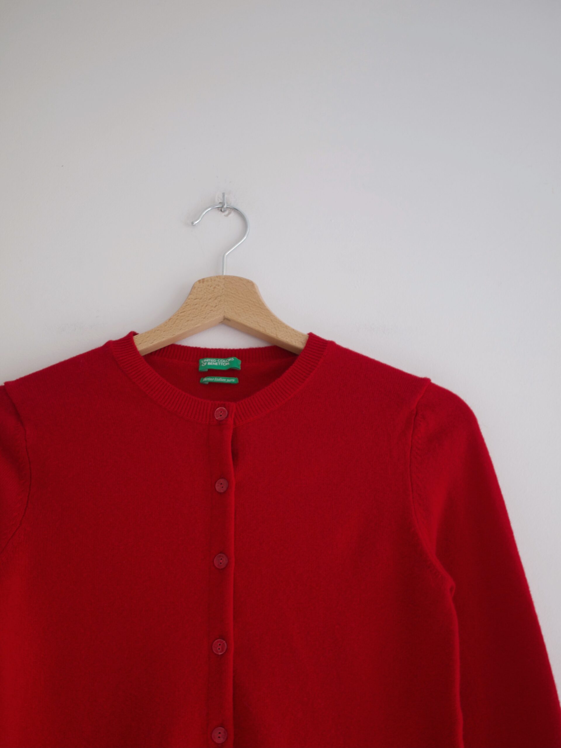 Kardigan marki Benetton, w 100% wykonany z wełny merino