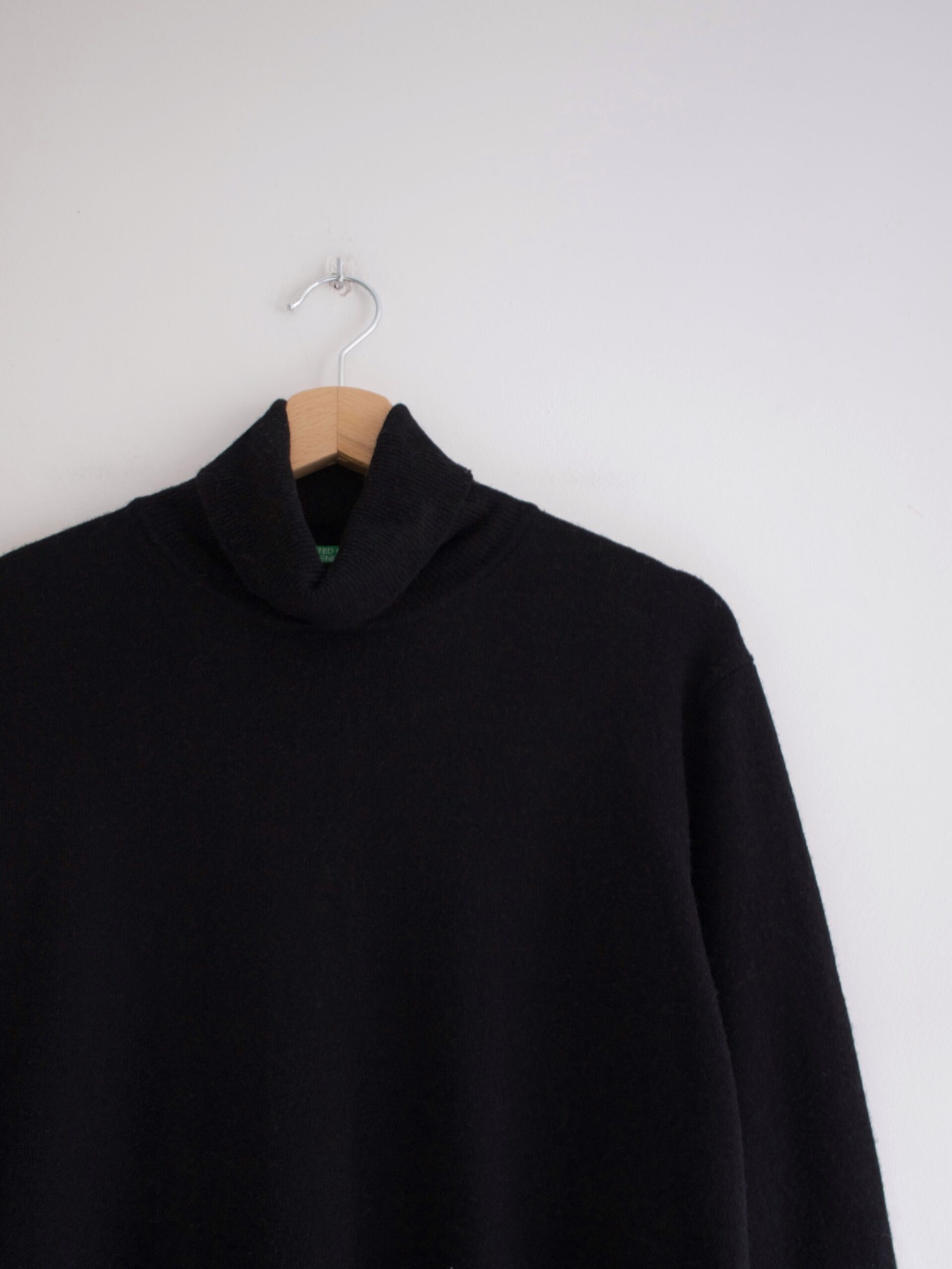 Minimalistyczny wełniany sweter z golfem. Idealny stan, materiał nie gryzie. Brak metki z rozmiarem, na oko jest to L, na mniejsze rozmiary idealny jako oversize (proszę sprawdzać wymiary).