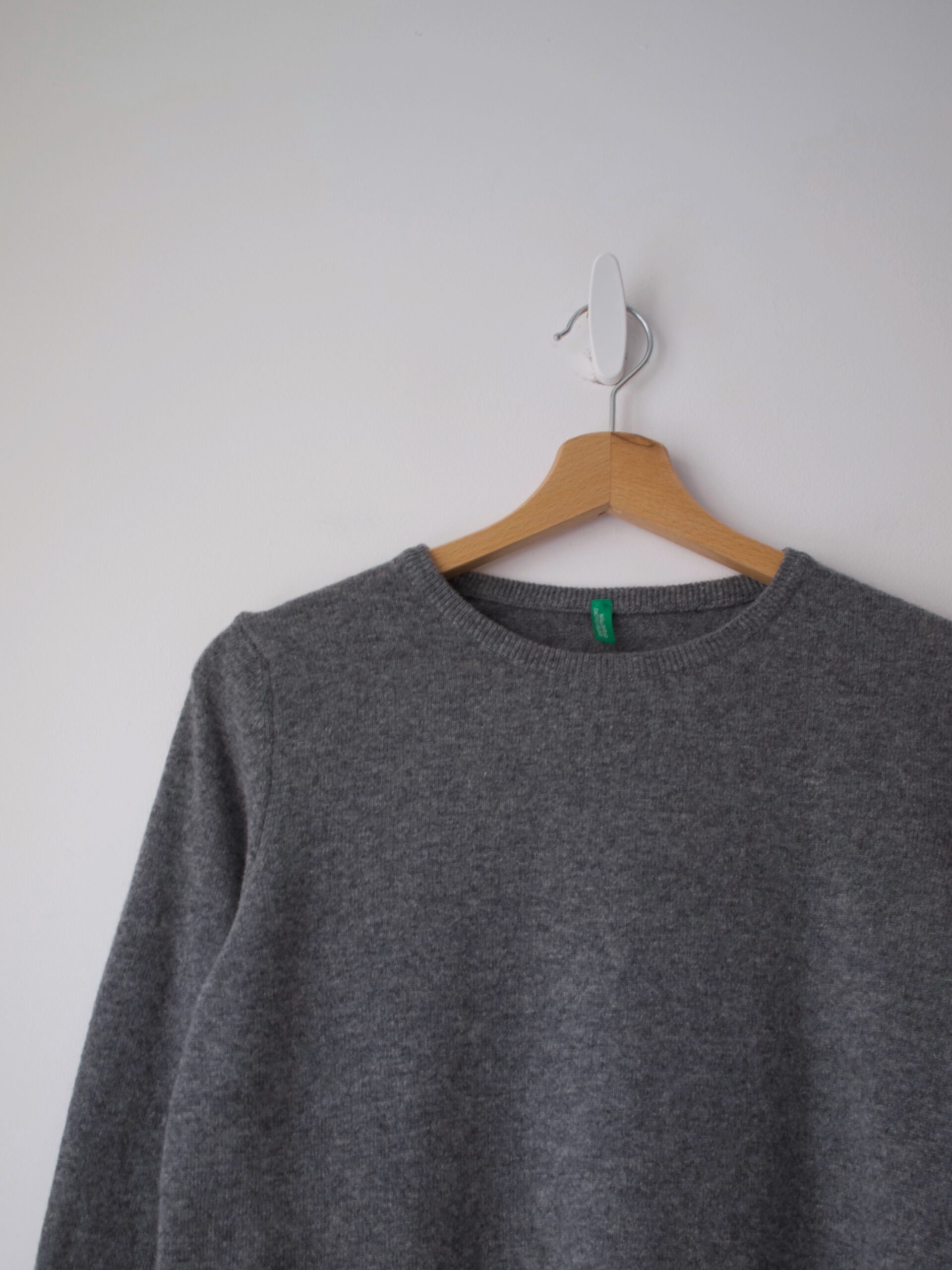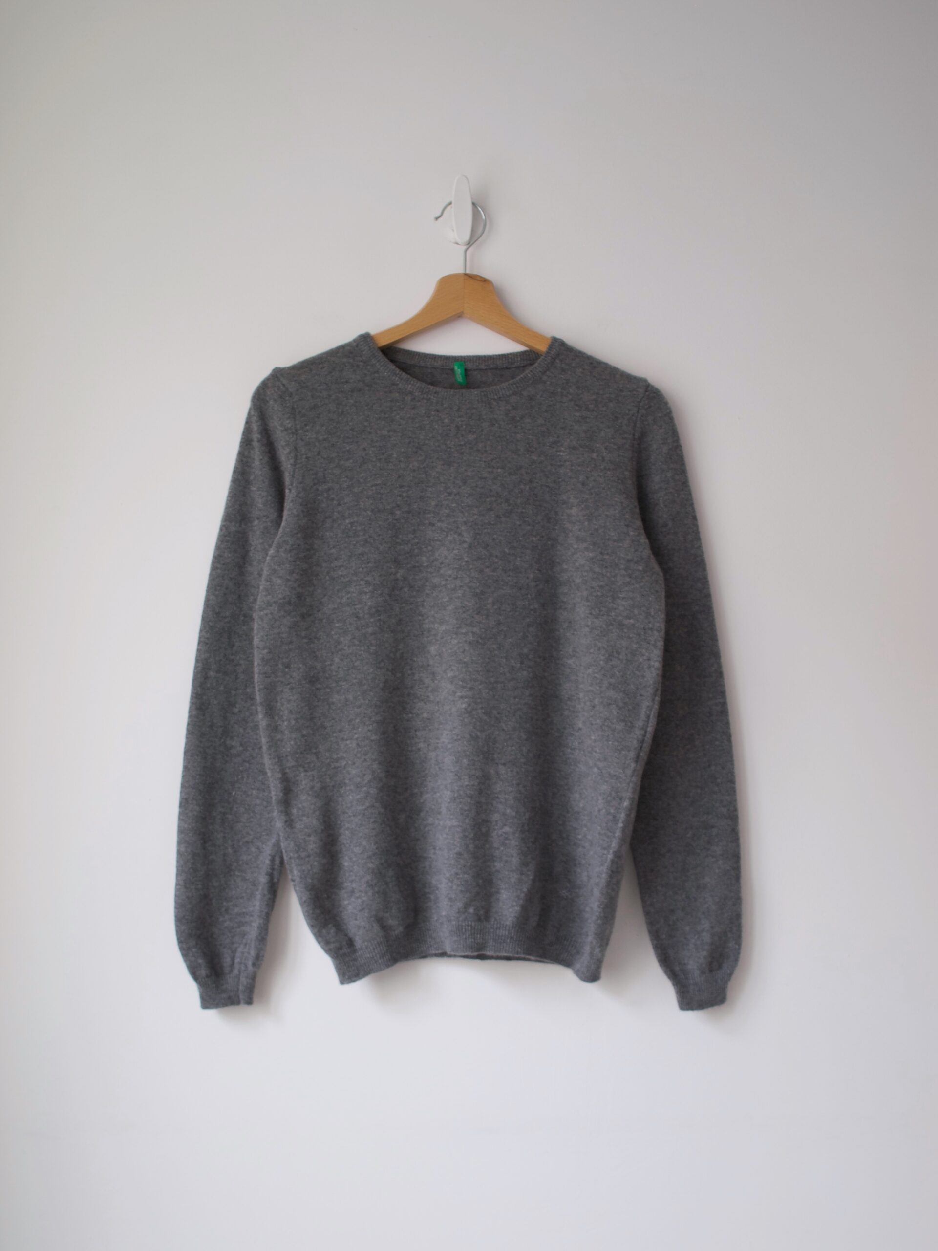 Minimalistyczny sweter marki Benetton, w 100% wykonany z dziewiczej wełny. Rozmiar z metki: M Skład: 100% wełna Stan: idealny Szerokość w klatce 46 cm Długość całkowita 63 cm