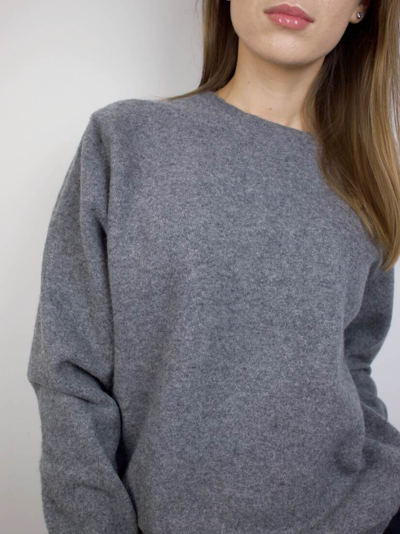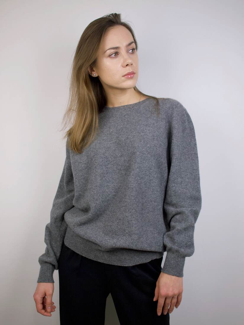 Klasyczny sweter M&S z dekoltem w serek. Skład to 100% kaszmir, bardzo dobry stan, jest minimalnie sfilcowany, nie jest to zauważalne, po prostu jest trochę sztywniejszy.